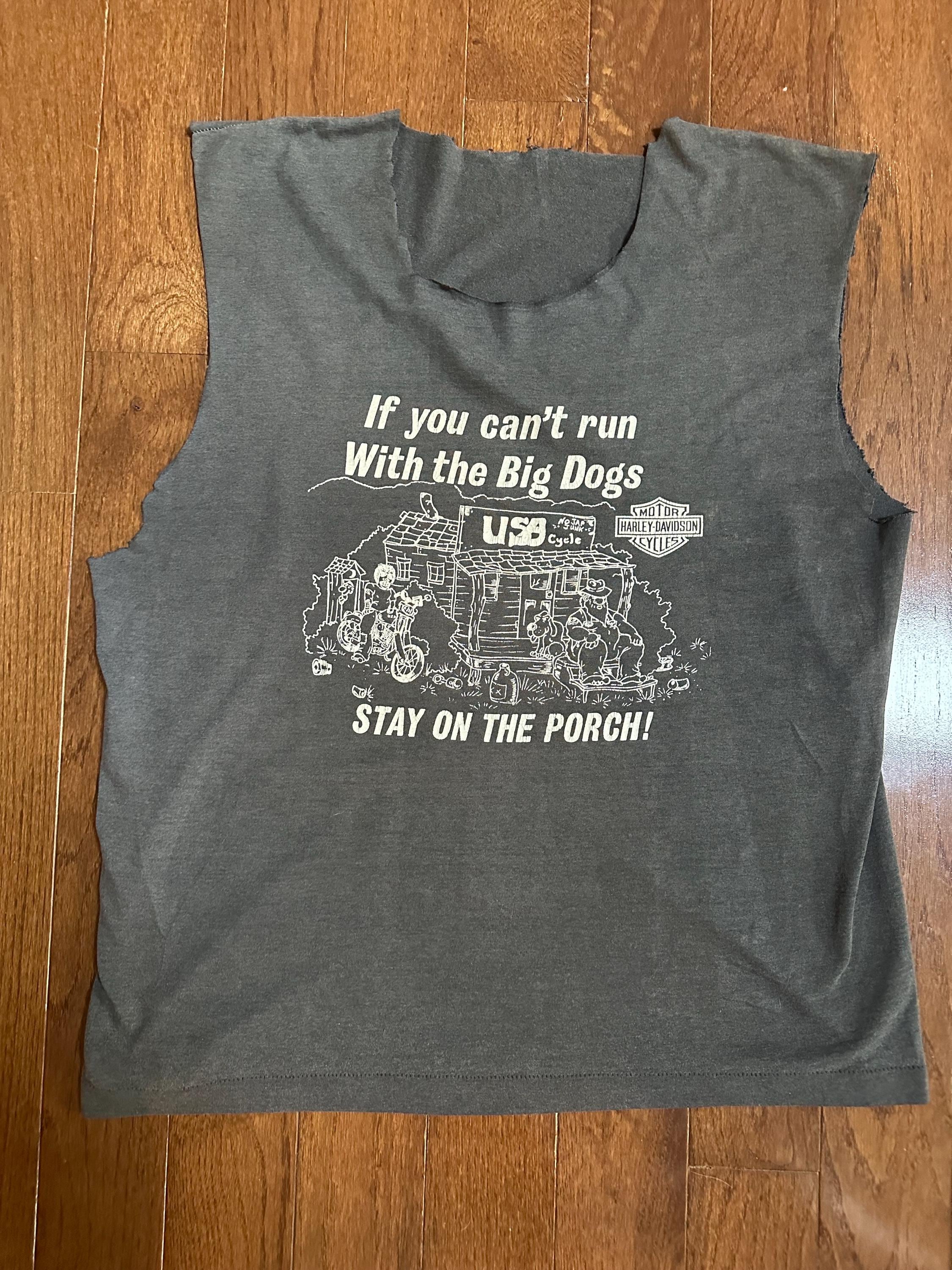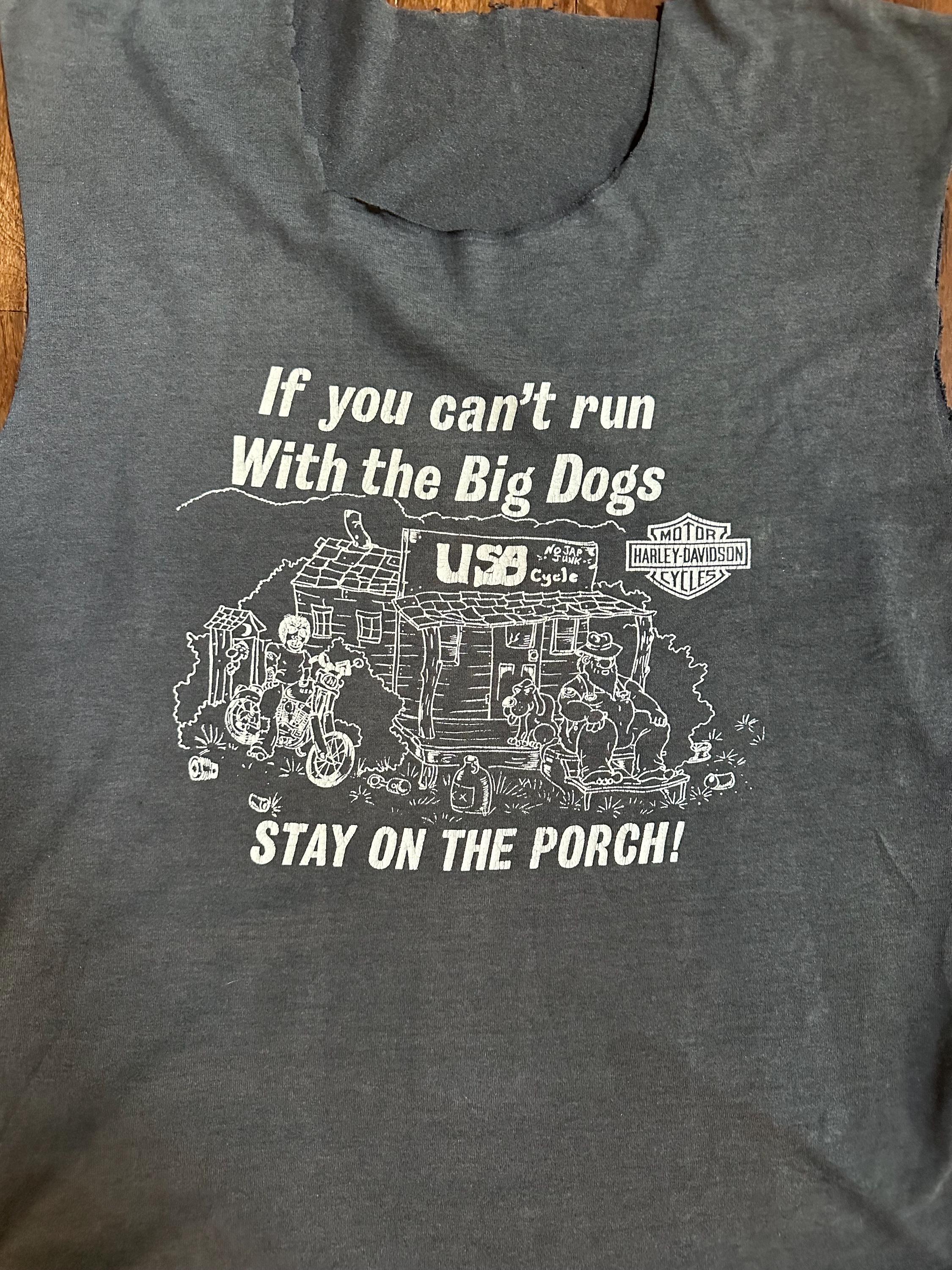 Vintage “If You Can’t Run With the Big Dogs, Stay on the Porch” Tee – Thrashed – Single Stitch – XL