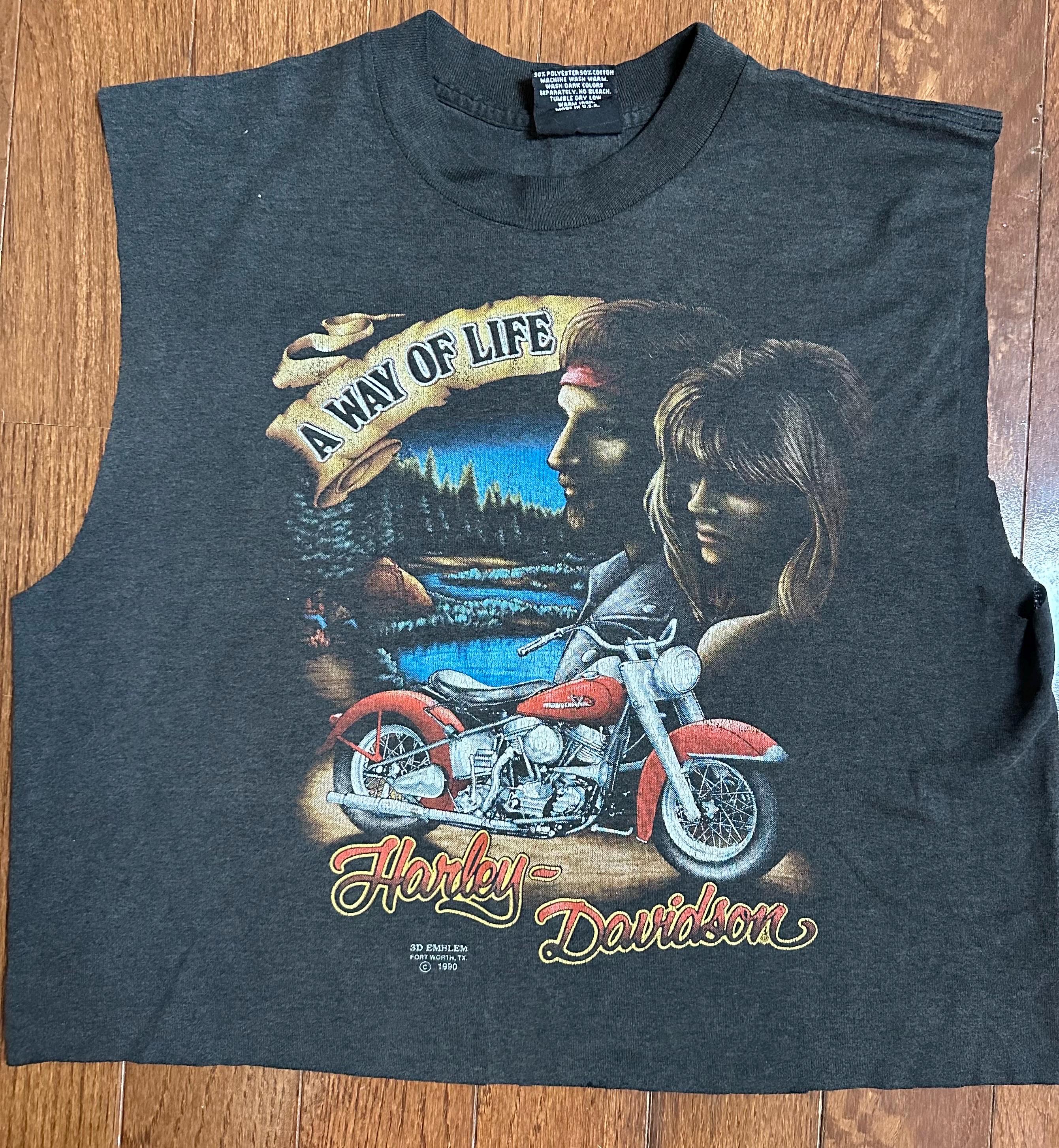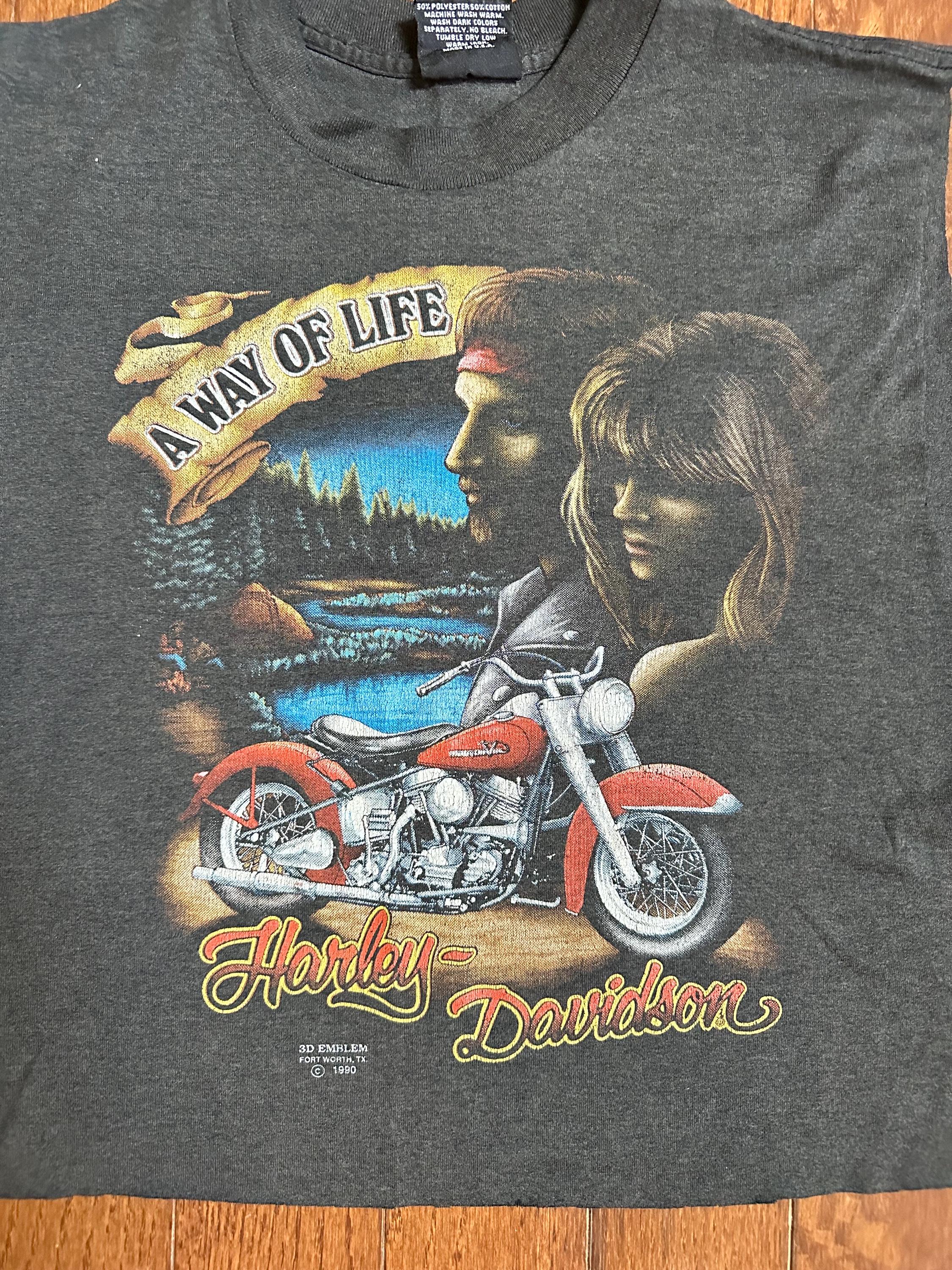 1990 Harley-Davidson “A Way of Life” Tee – 3D Emblem, Cut Sleeves, Tag Size Large
