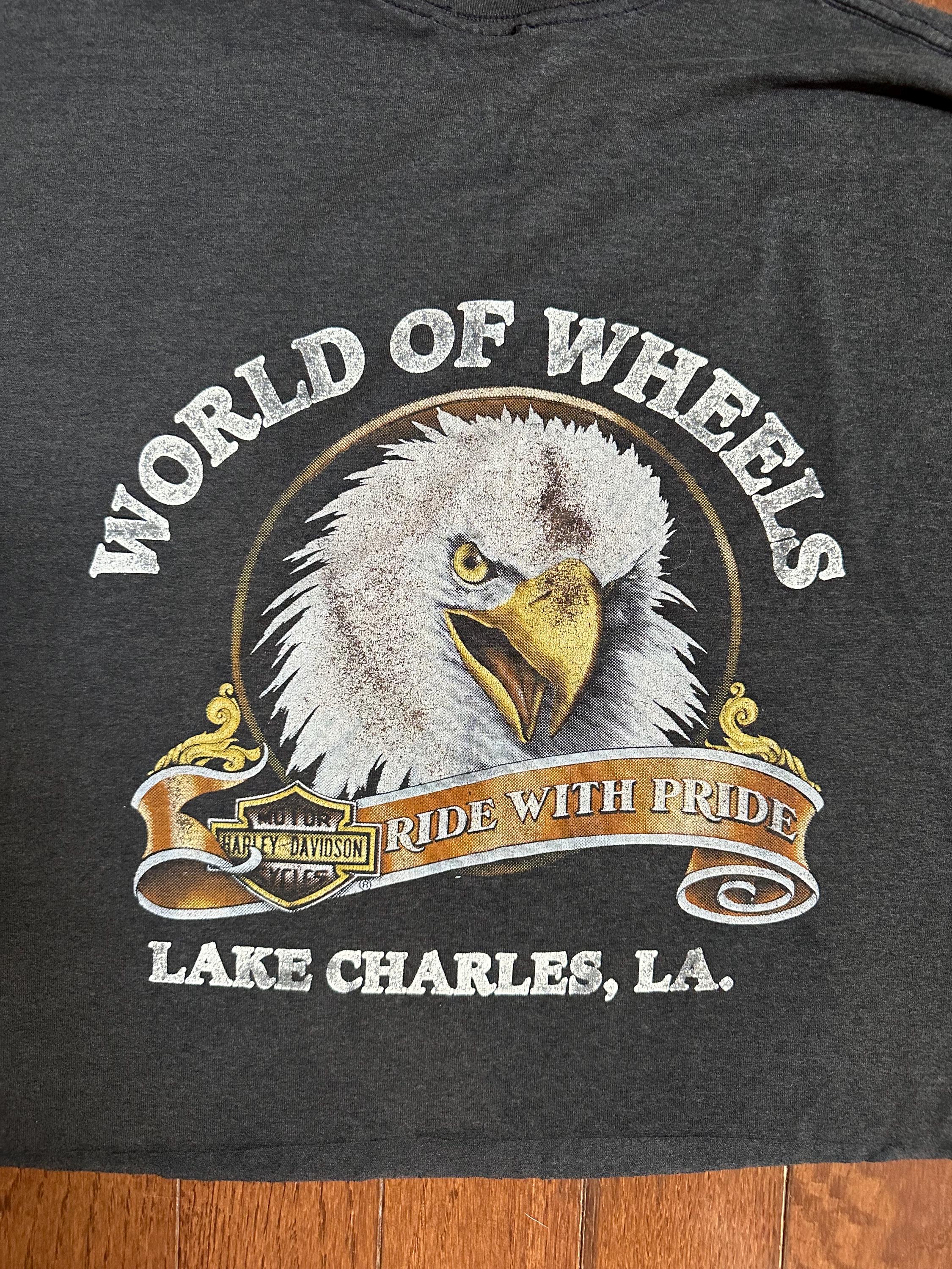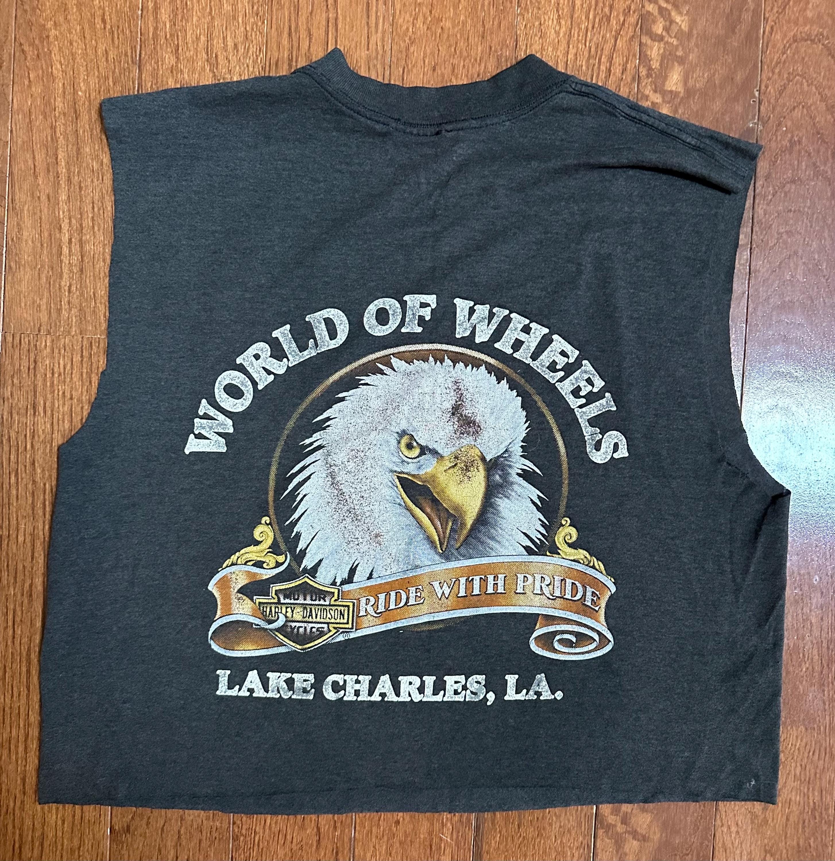 This 1990 Harley tee features the iconic 3D Emblem “A Way of Life” graphic—an absolute staple for serious collectors. It's hand-cut (before I got it), with the sleeves raw and ready for the road. The fit is boxy, the fabric is soft, and the attitude is all Harley.