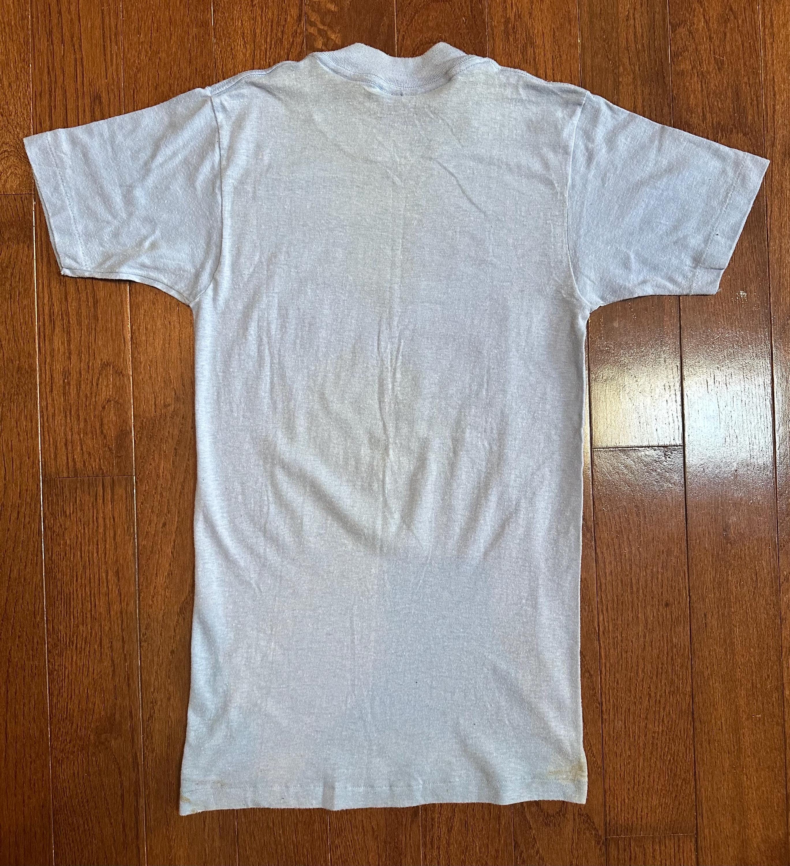 Soft and perfectly worn, with that high crew neckline and buttery single-stitch cotton you only get from early 80s tees.
