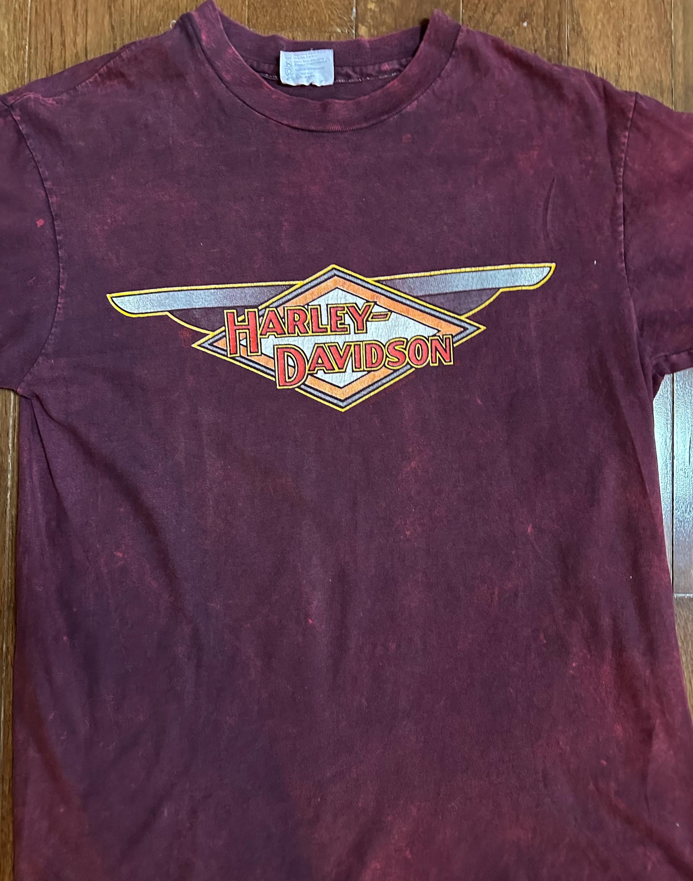 Condition: Good vintage wear with some fading and graphic cracking (see photos for details). Adds to the classic, lived-in Harley look.