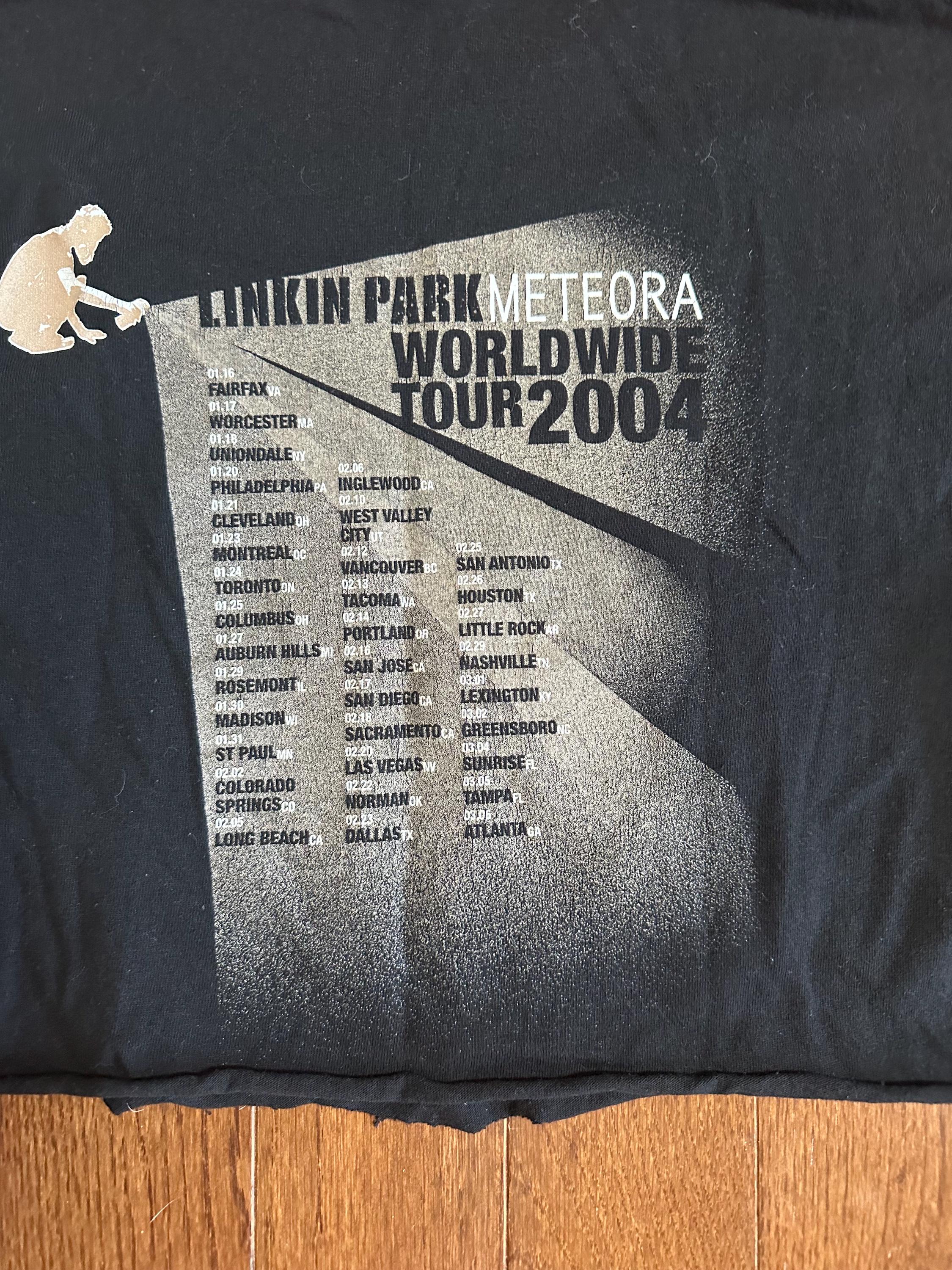 Original 2004 Linkin Park Meteora tour t-shirt from the iconic era of the band. A true early-2000s concert tee that captures the energy of the Meteora tour and that moment in music history.