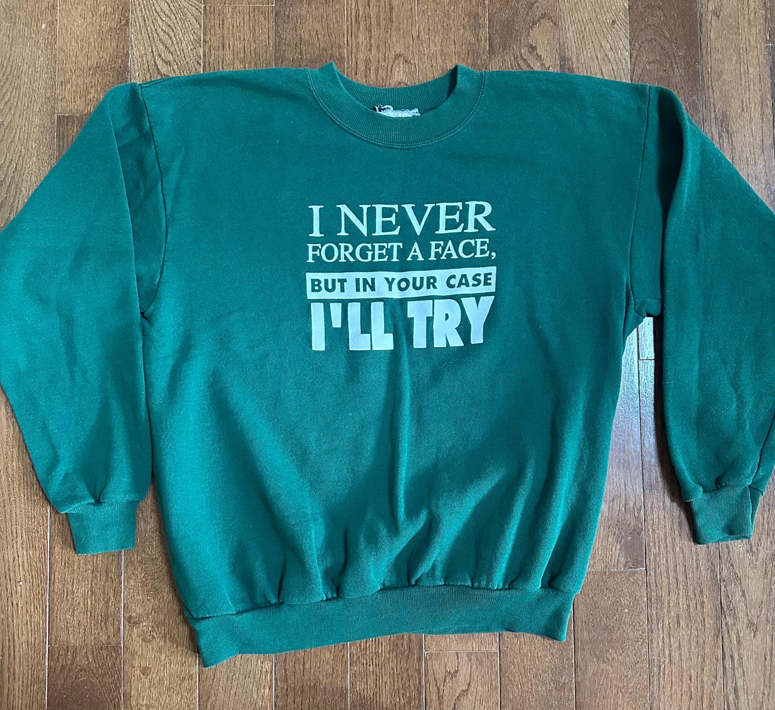 Vintage 1990s classic crewneck sweatshirt in a great Kelly green with a fun, tongue-in-cheek phrase:
