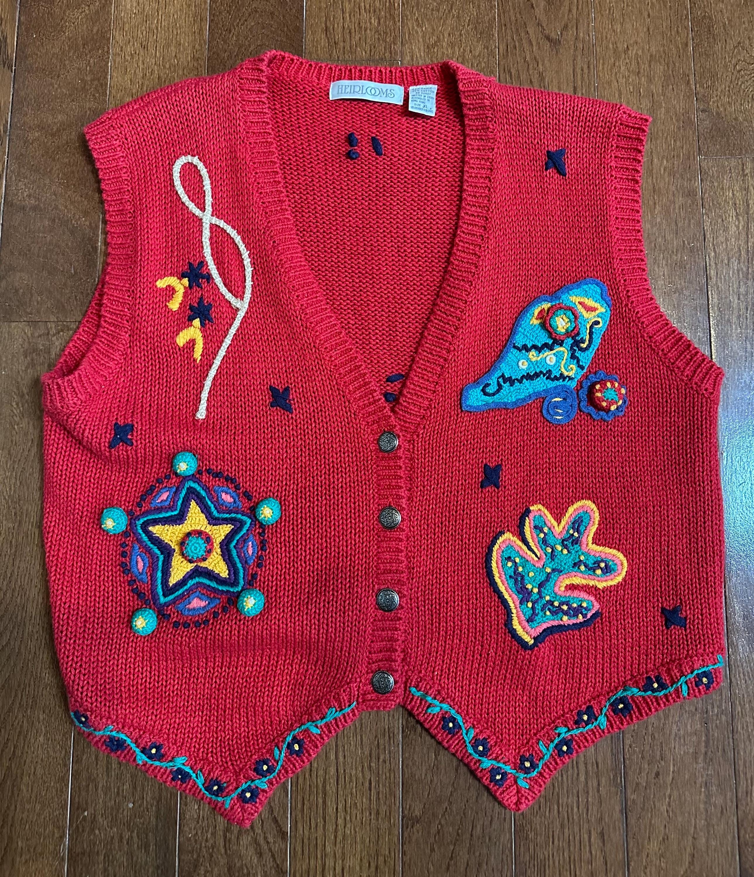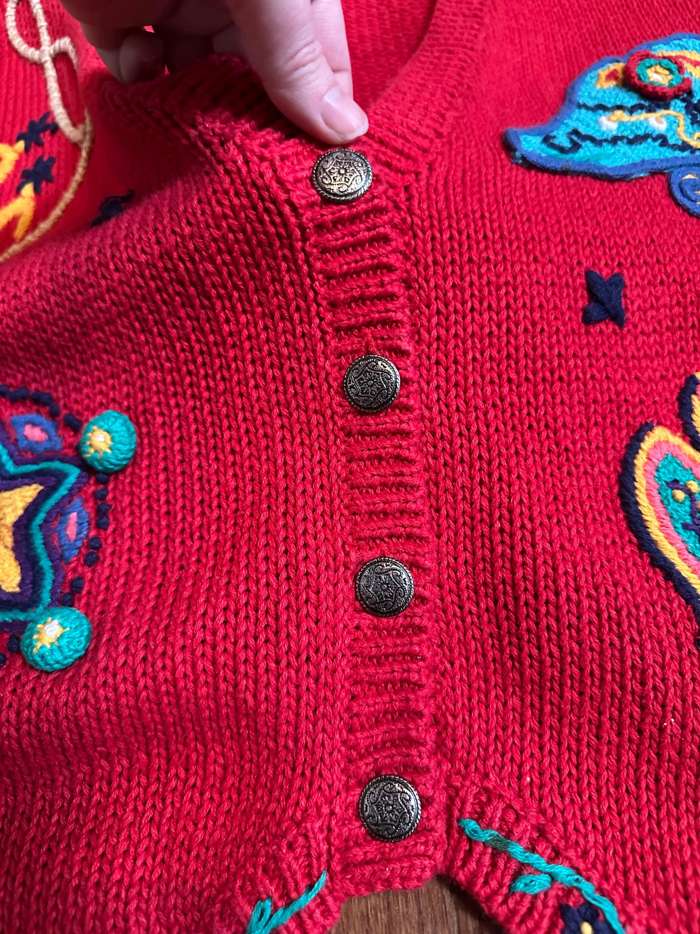 This vest is pure personality. Bold, expressive, and unapologetically fun, it’s one of those vintage pieces that instantly becomes the focal point of an outfit. A true 1990s western knit vest, finished with metal buttons and intricate floral embroidery throughout, it carries that handcrafted, heirloom feel that makes vintage western pieces so special.