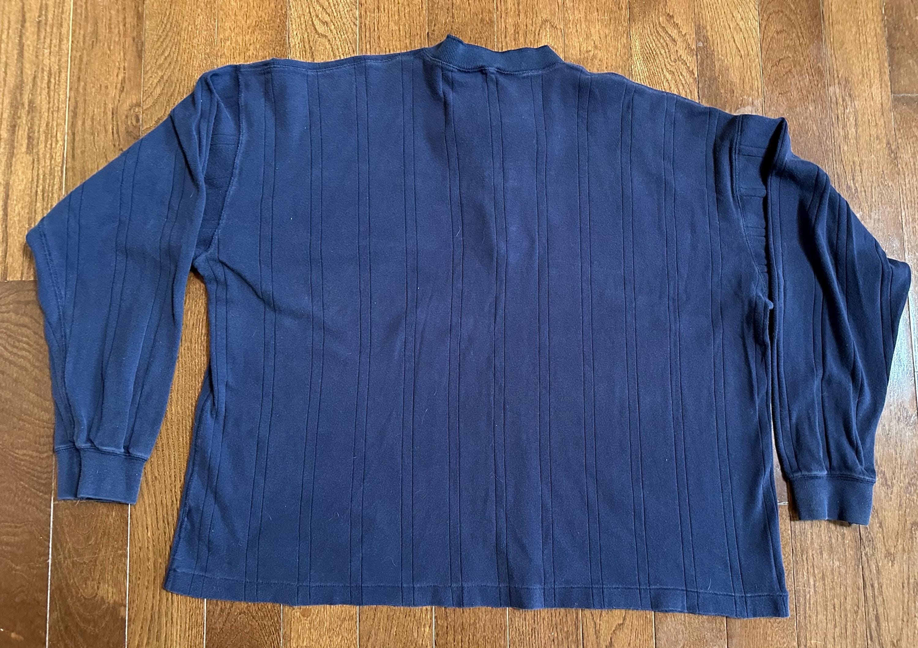 This is a solid, no-frills vintage layer made to be worn often. A 1990s Eddie Bauer heavyweight henley featuring cuffed sleeves, a boxy silhouette, and durable construction that reflects the brand’s outdoor roots during this era.