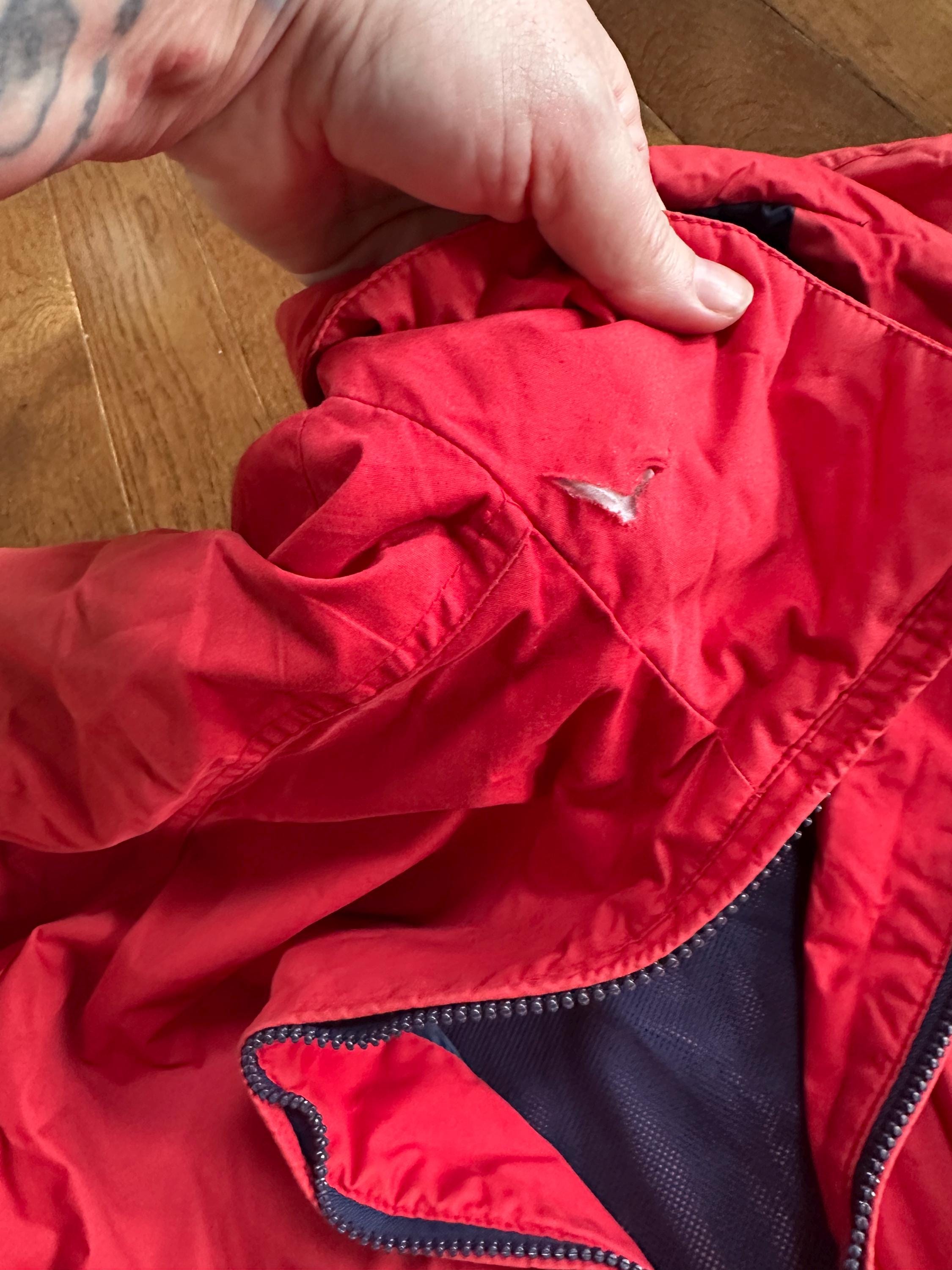 Heavily worn true vintage with visible fading throughout and a rip on the collar. Not brand new. Wear is consistent with age and adds to the authentic, distressed outdoor character. Please review photos closely for full condition details.
