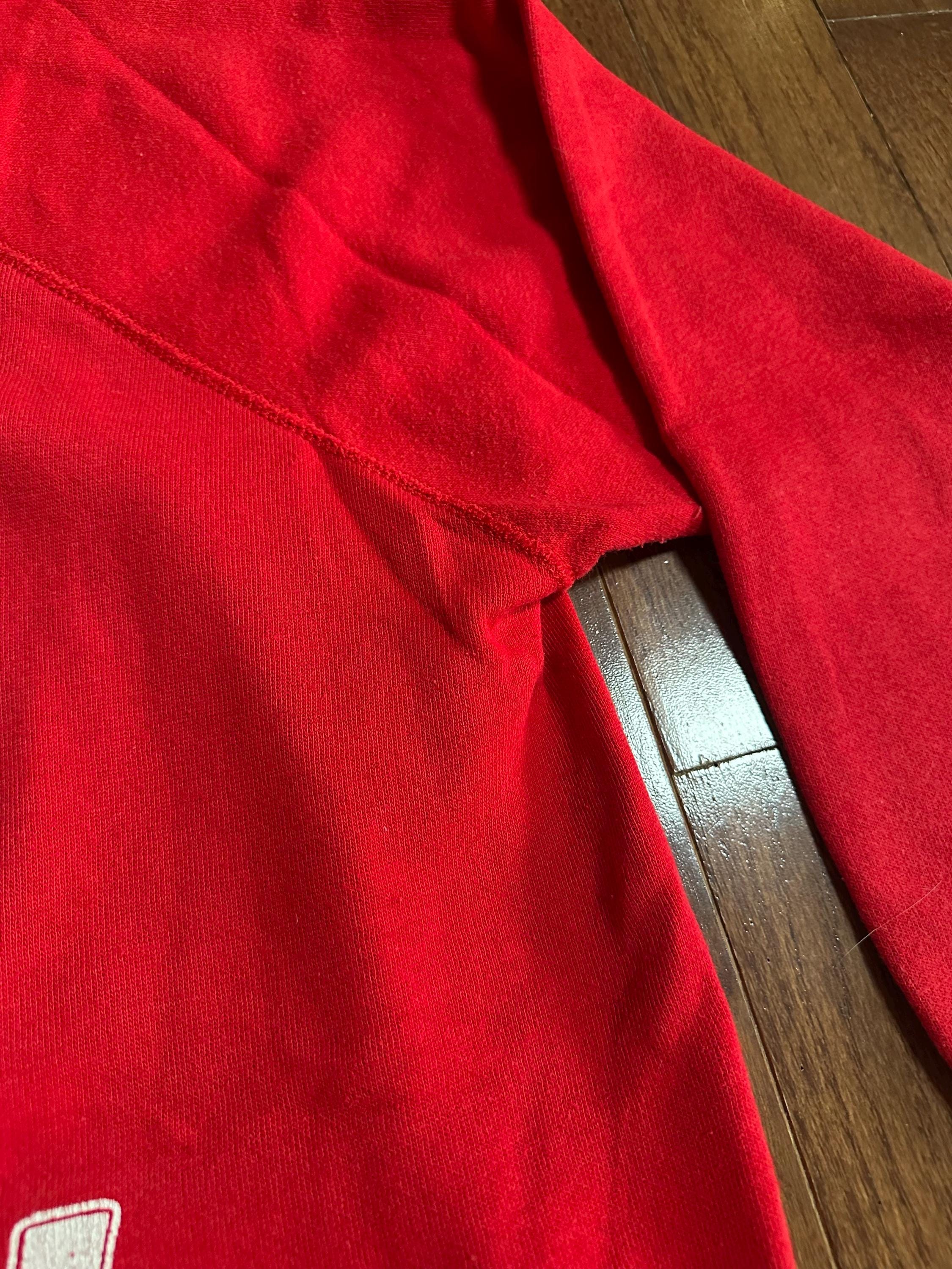 This 1980s Mickey Mouse sweater has that perfectly worn, butter soft feel that only decades of love can create. The bright red body paired with classic raglan sleeves gives it that easy, relaxed vintage athletic look, while Mickey front and center brings the nostalgia in the best way.