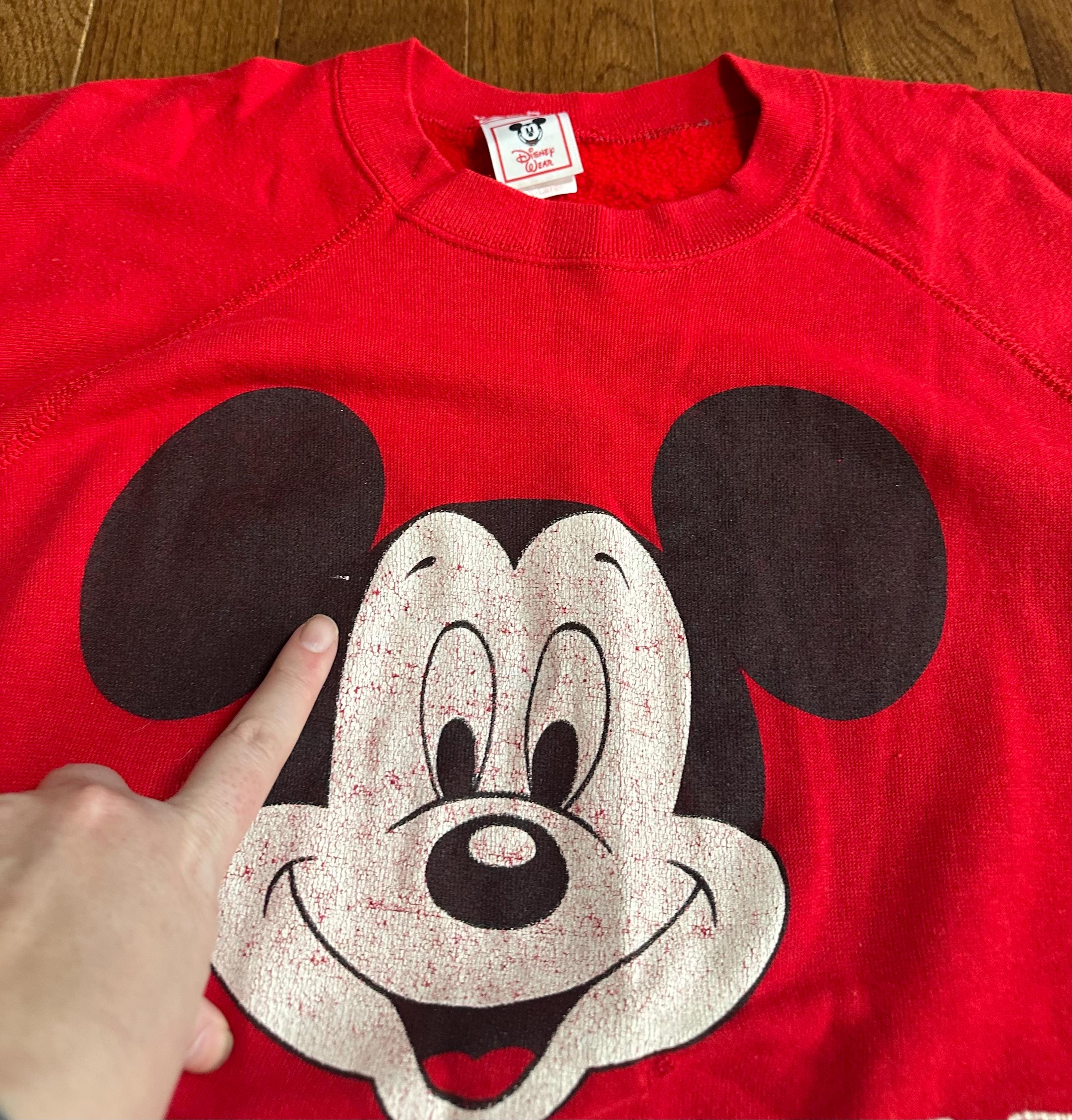 Vintage 1980s Mickey Mouse Sweater – Red Raglan Crewneck – Butter Soft Disney Wear – XL