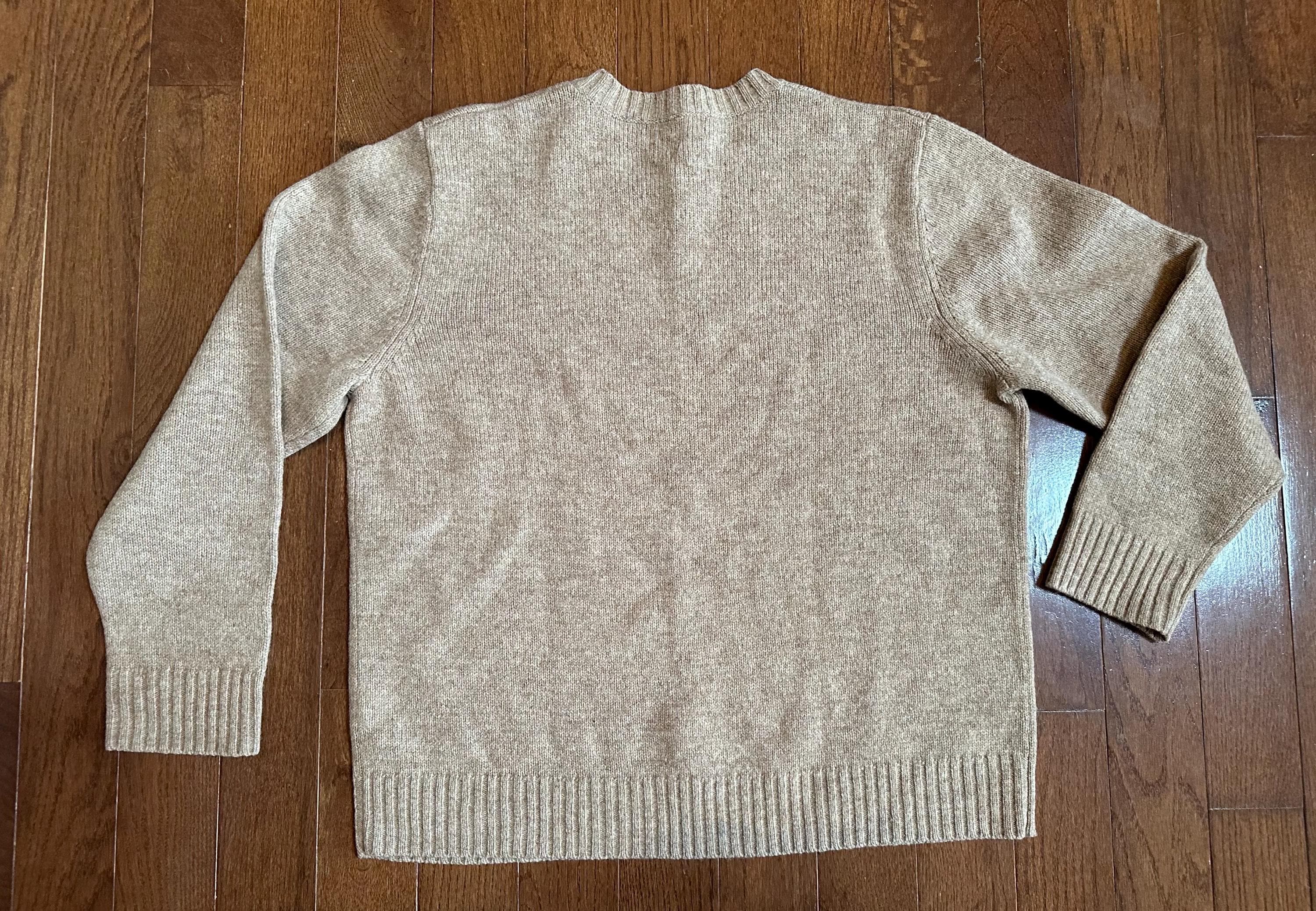 Made from 100% Shetland wool, it has the traditional dense knit that insulates beautifully while remaining breathable. The color is a soft, classic cream that pairs effortlessly with everything from worn denim to tailored wool trousers.