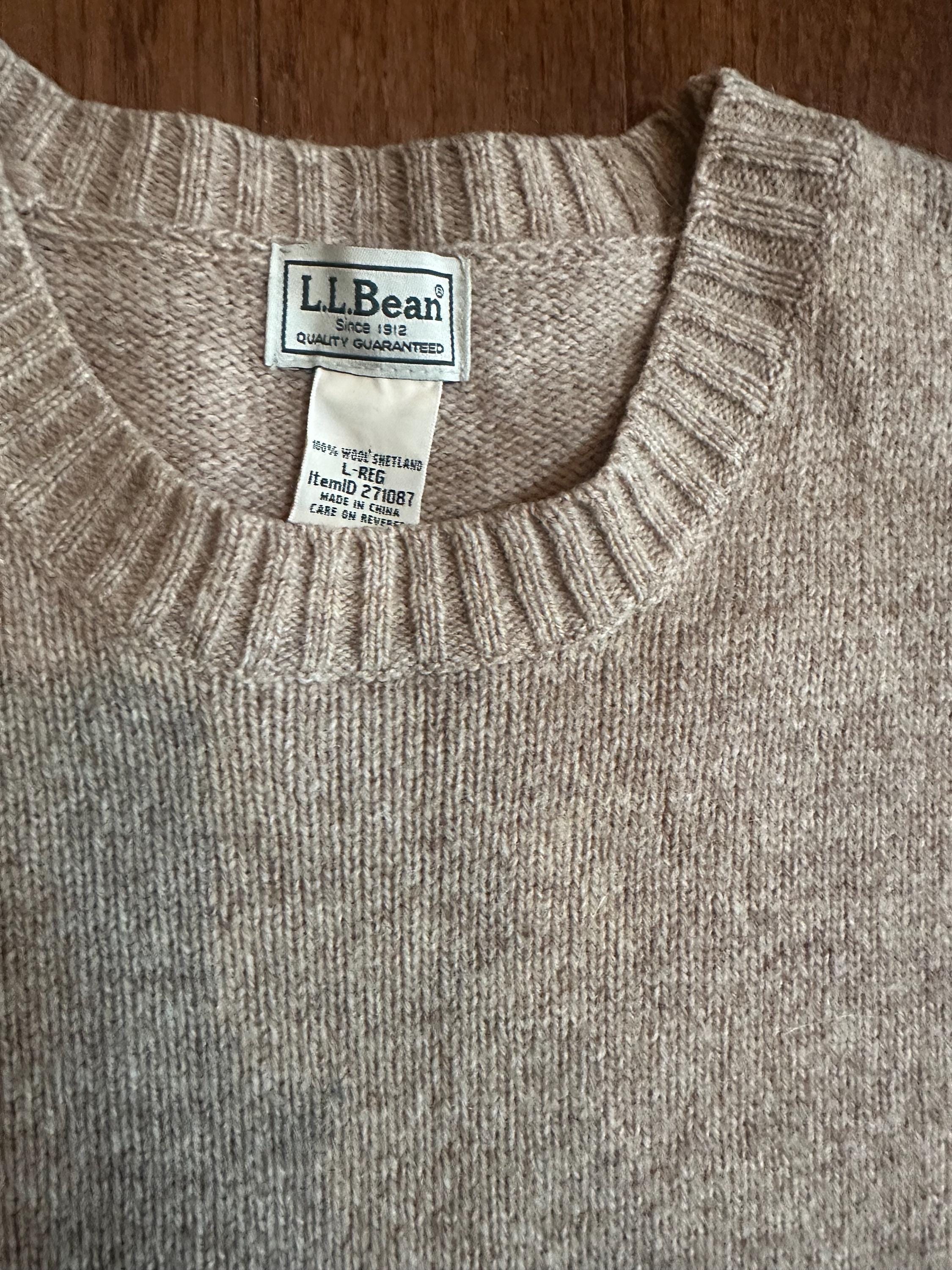 Vintage 1990s L.L. Bean Shetland Wool Sweater Mens Large Cream Knit — Classic Bean Heritage Crewneck Neutral Cabin Core Mountain Preppy Aspen Style