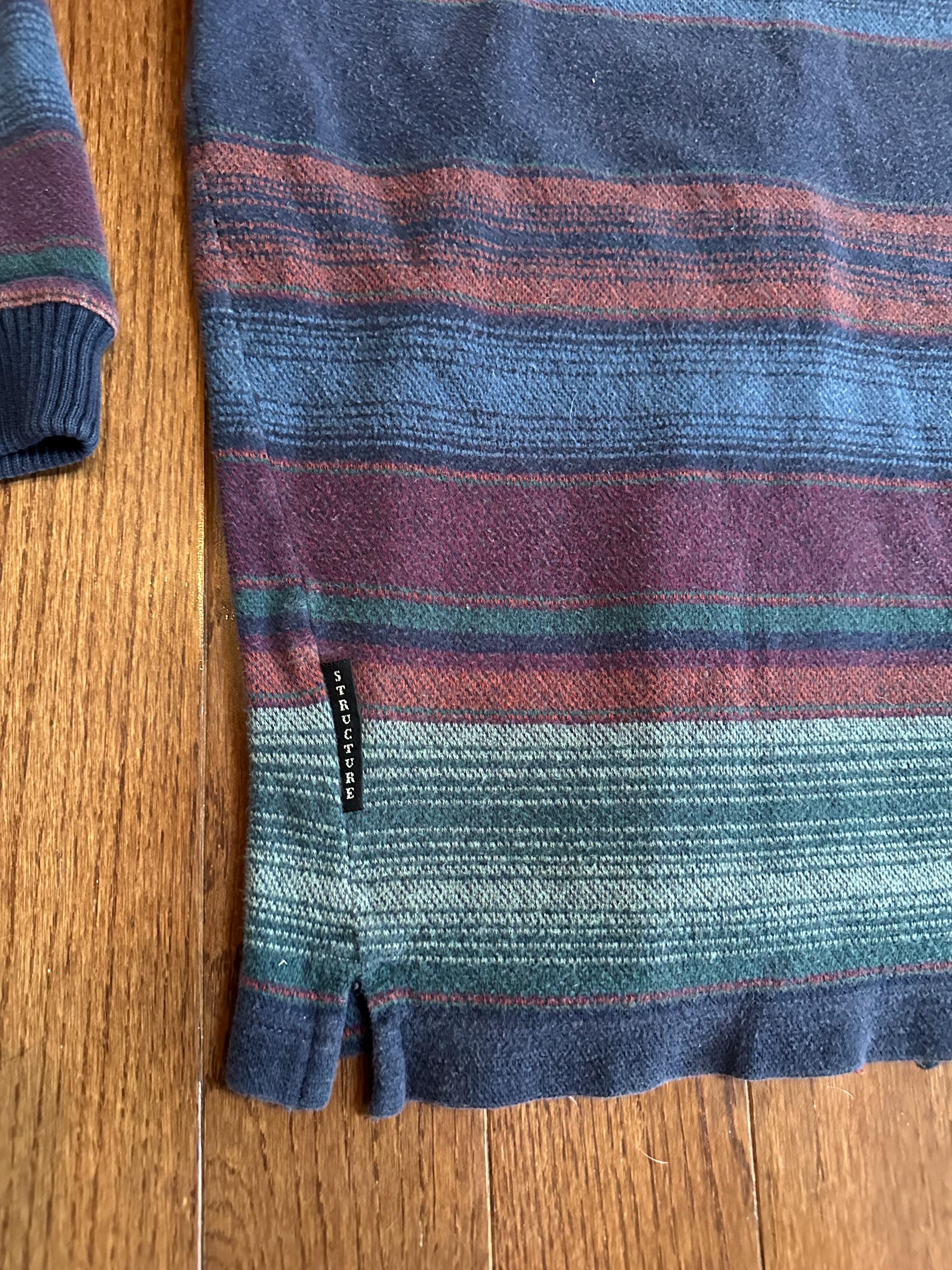 Vintage 1990s Structure Striped Rugby Shirt Mens Large — Earth Tone Cotton Polo Pullover Dawson’s Creek 90s Preppy Grunge Long Sleeve