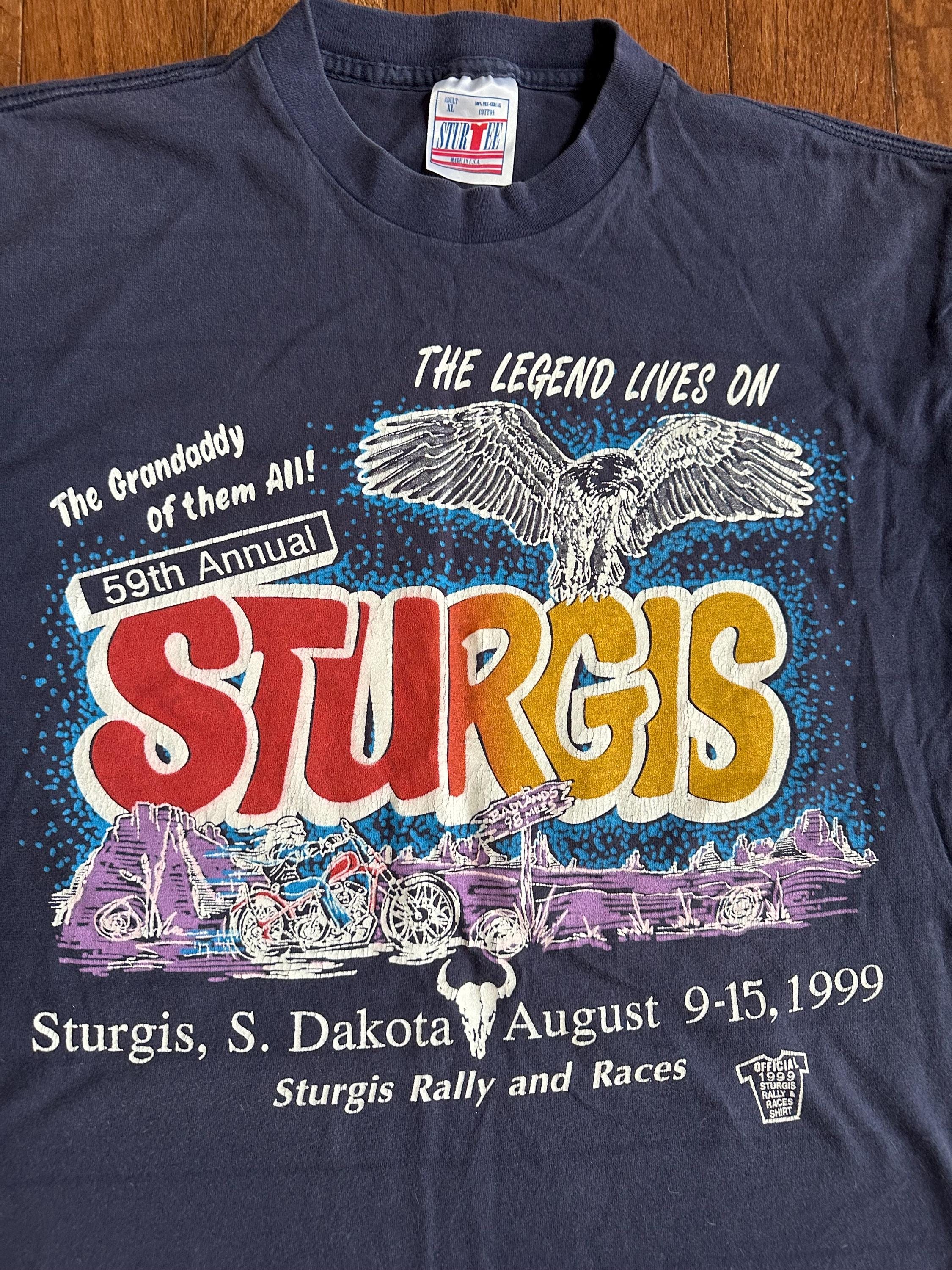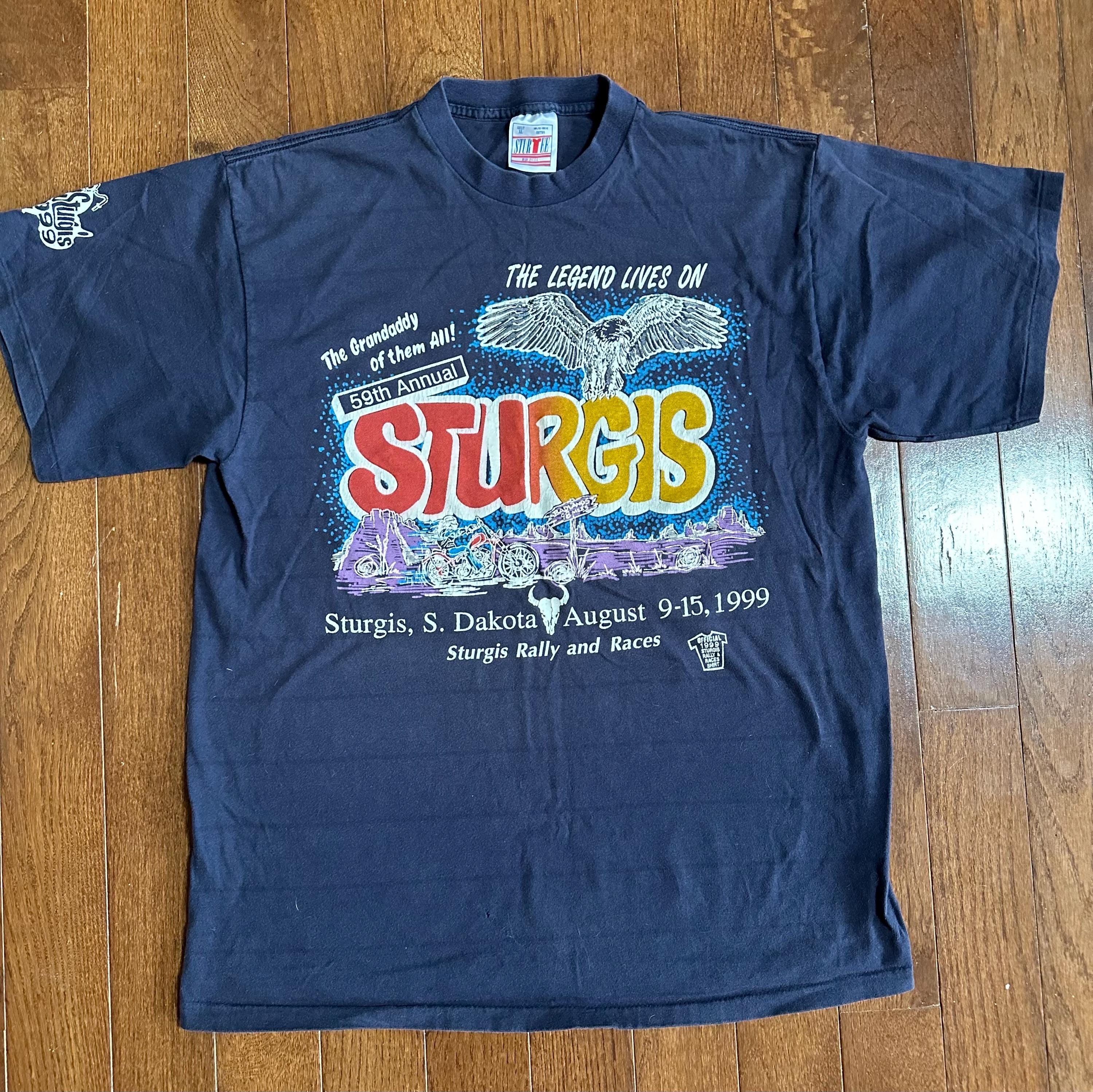 Vintage 1999 Sturgis Motorcycle Rally T-Shirt — Thrashed Biker Tee — Heavyweight Cotton — Distressed — Size XL