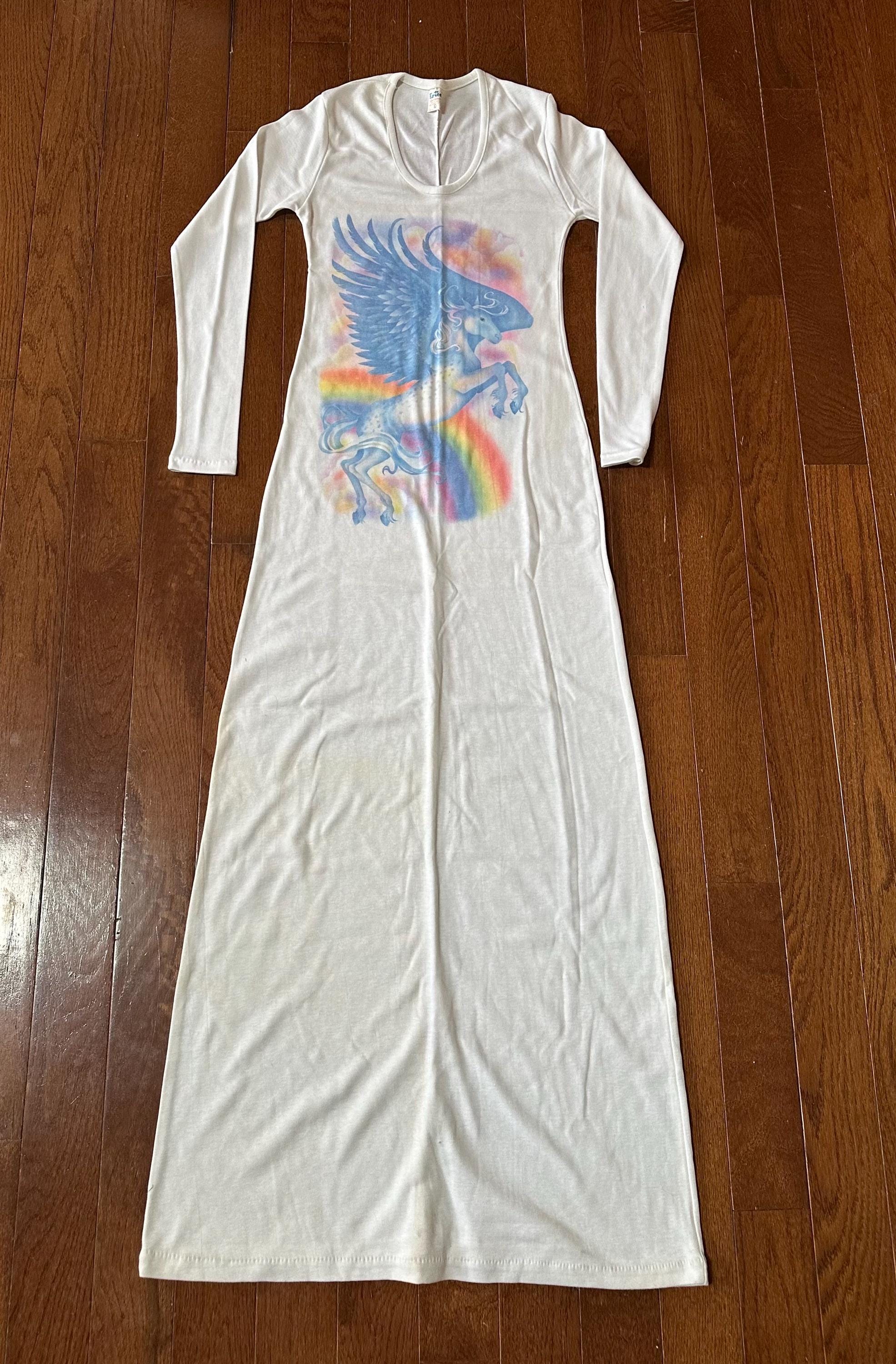 Vintage Fun Tees Unicorn Maxi Dress - 1970s / 80s Pegasus Graphic - Single Stitch - Statement Piece