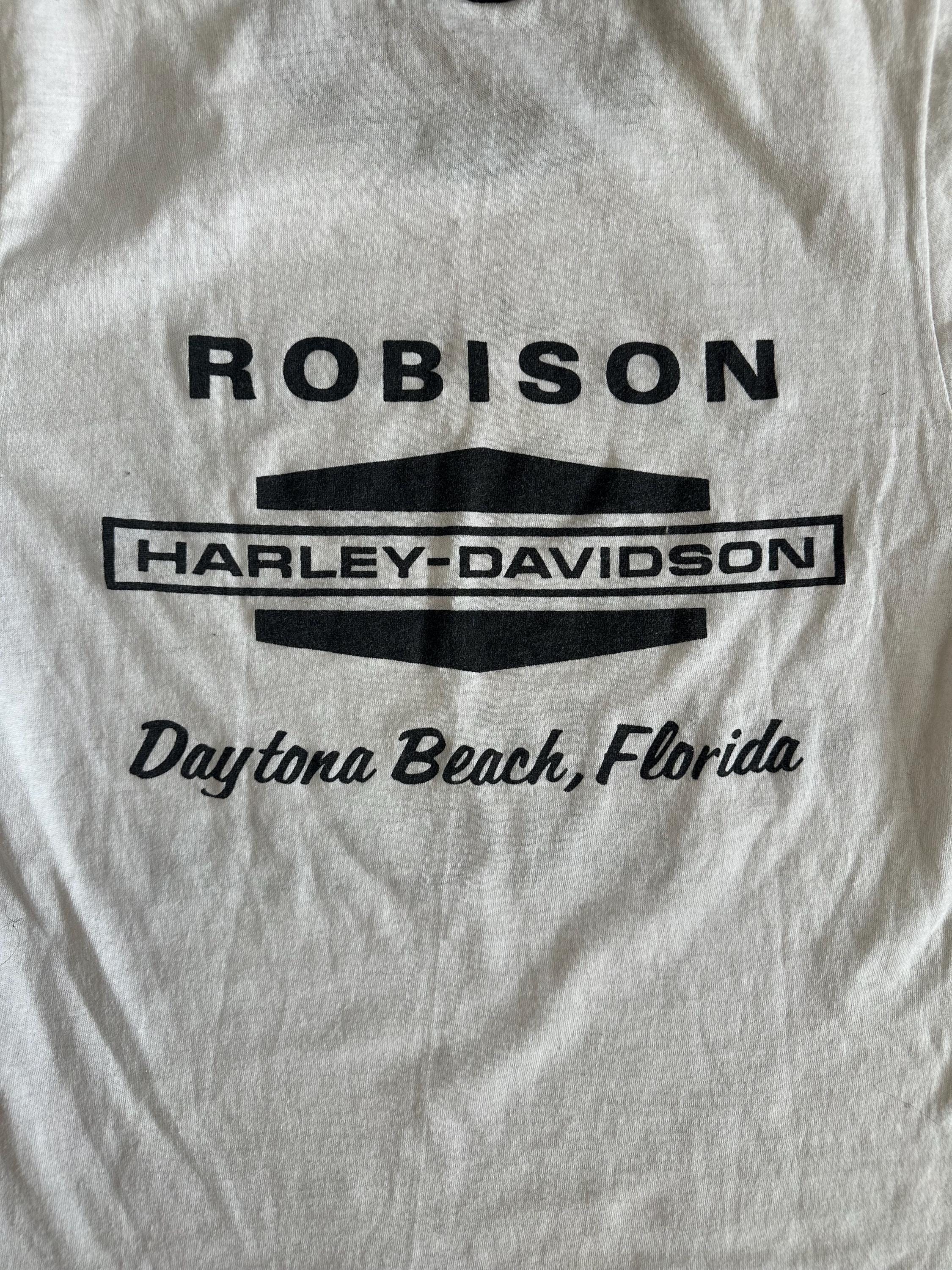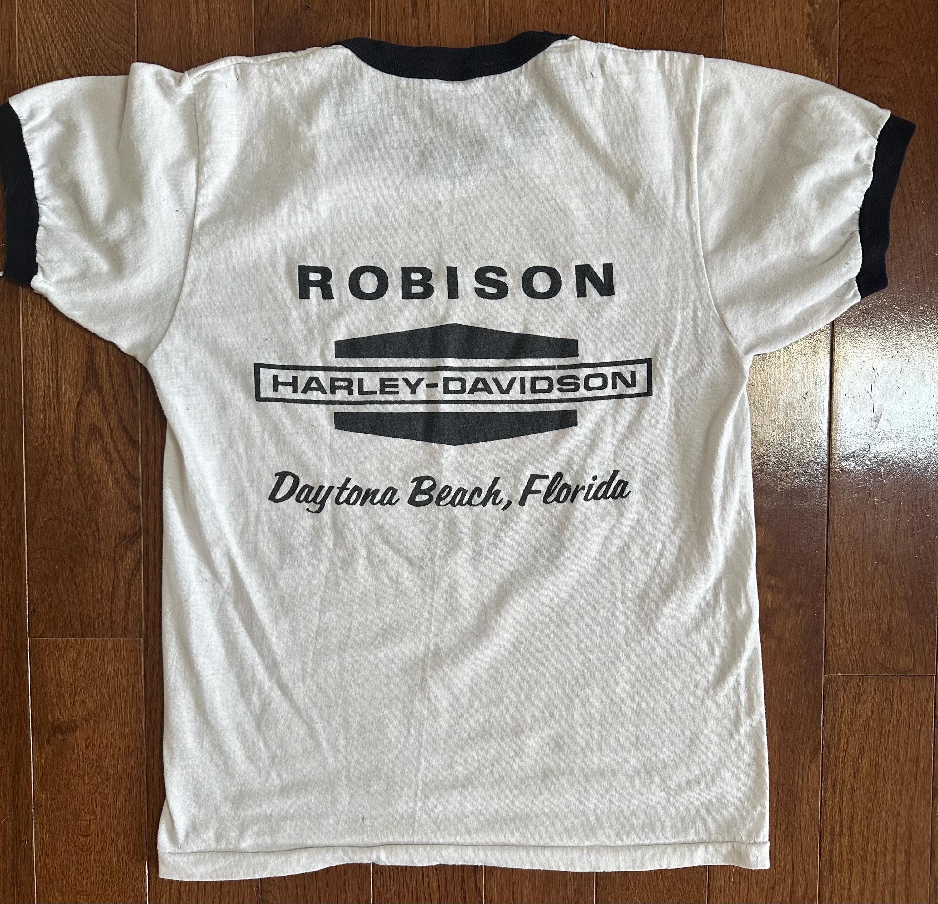 Vintage Harley Davidson Ringer Tee • 1980s Biker T-Shirt • Daytona Beach Florida Harley Shirt • Distressed Paper Thin Graphic Tee • Women’s Small