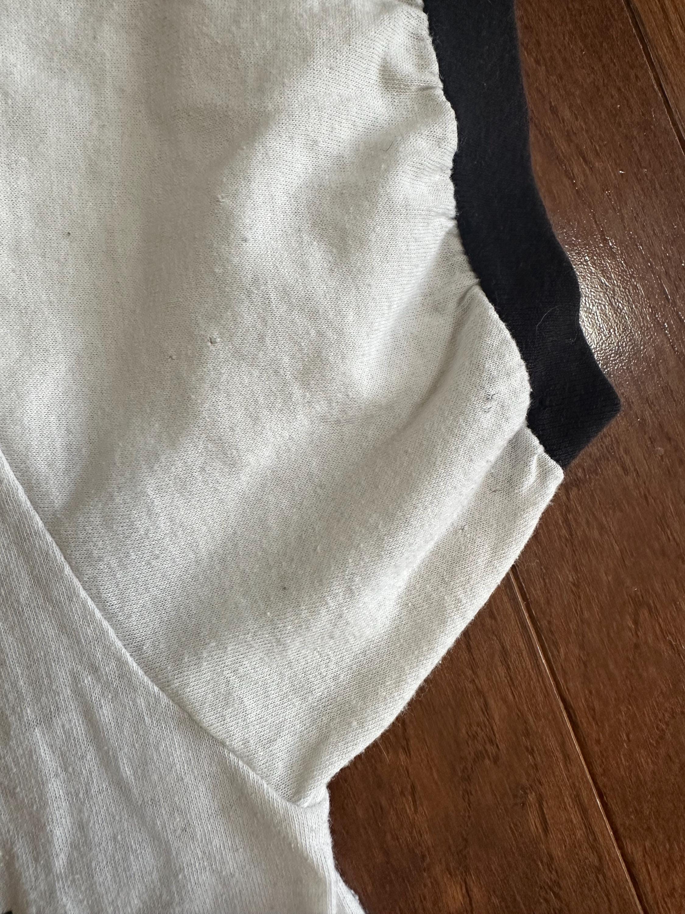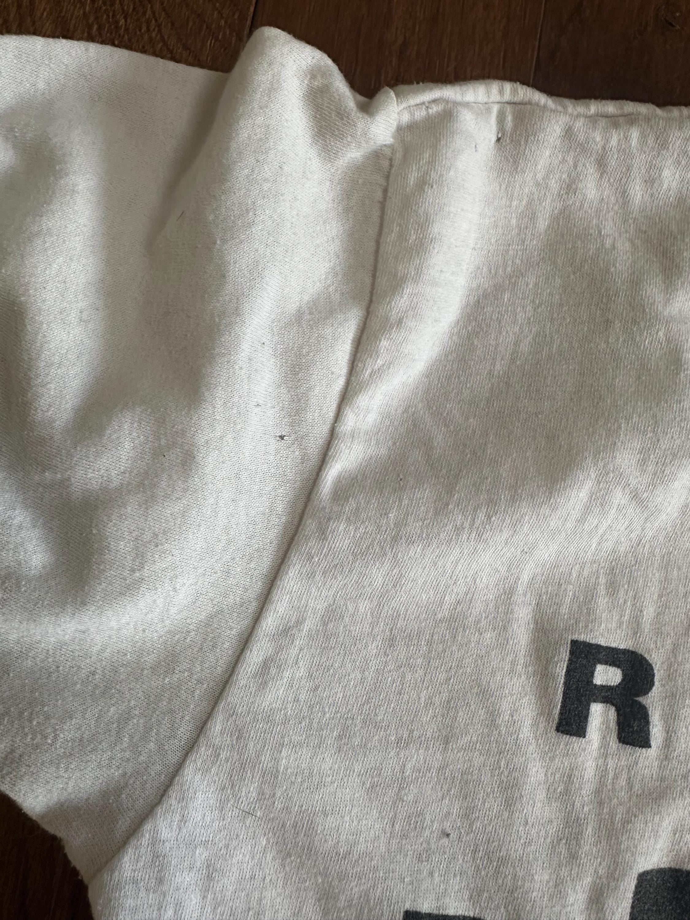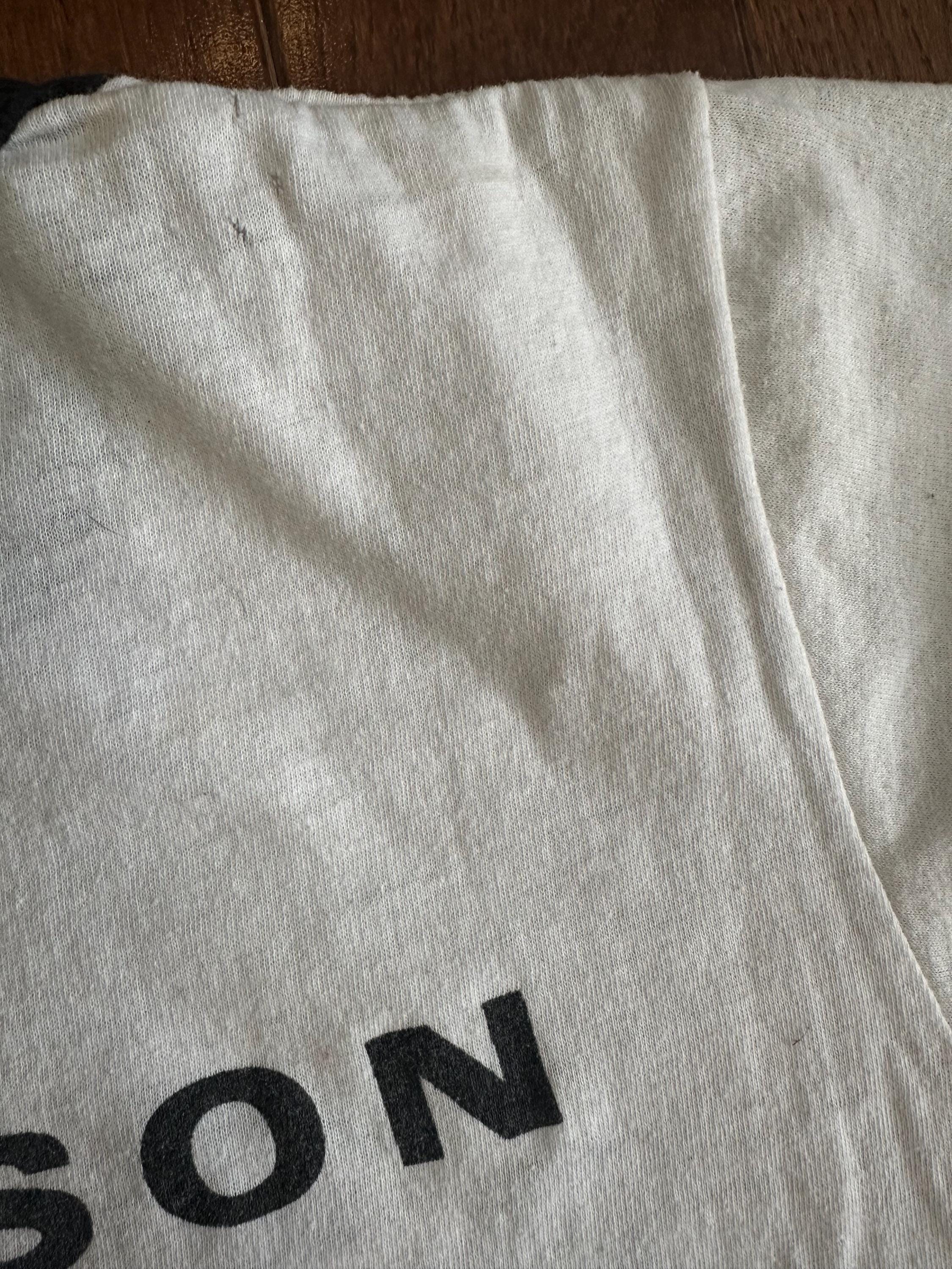 As with most genuine vintage pieces, this tee shows visible wear that adds to its character and authenticity. There are pinholes throughout, areas of staining, and overall thinning of the fabric consistent with age and decades of use. These details reflect a life well lived and make this a completely one-of-a-kind piece, not new or reproduced.