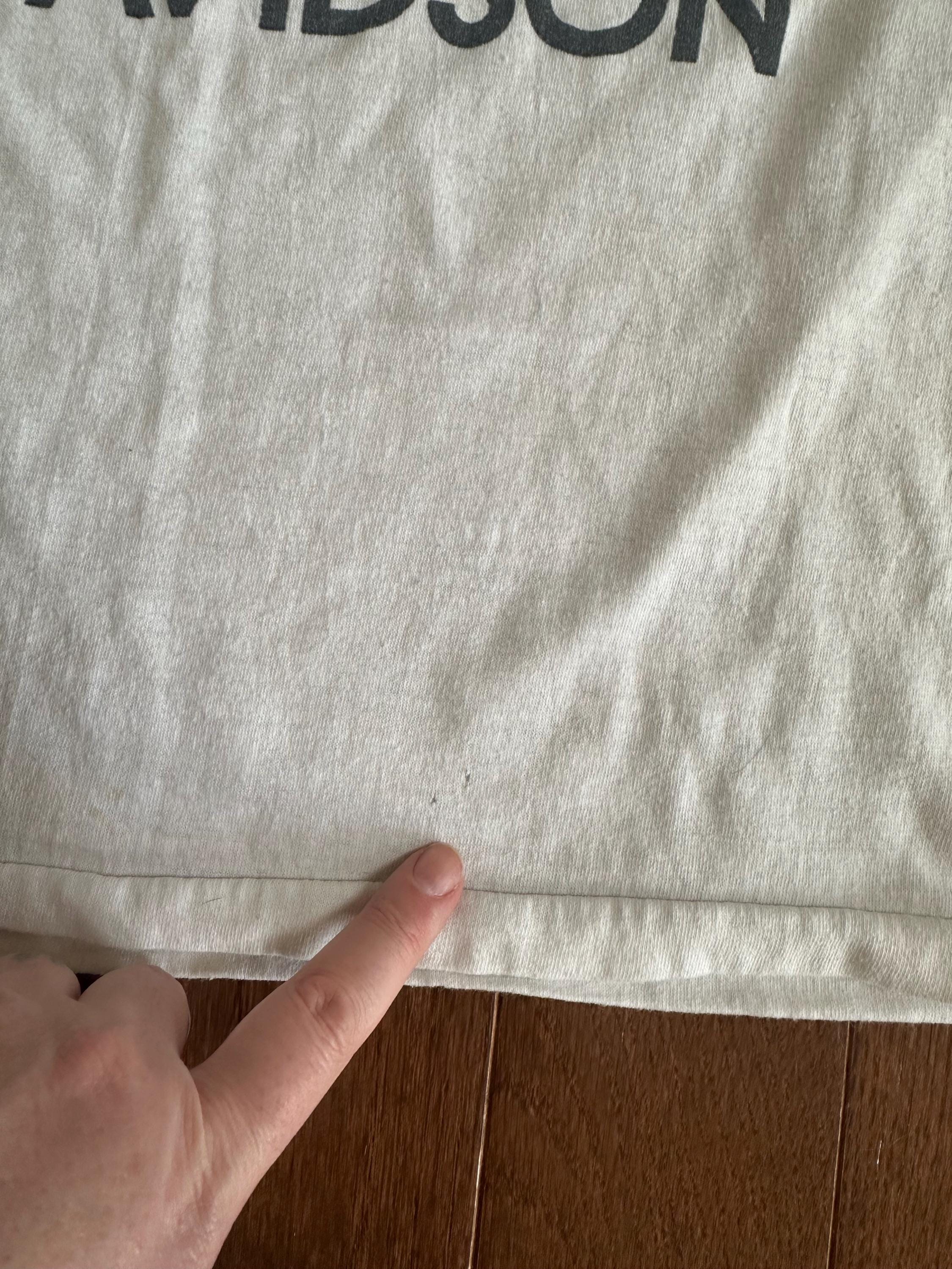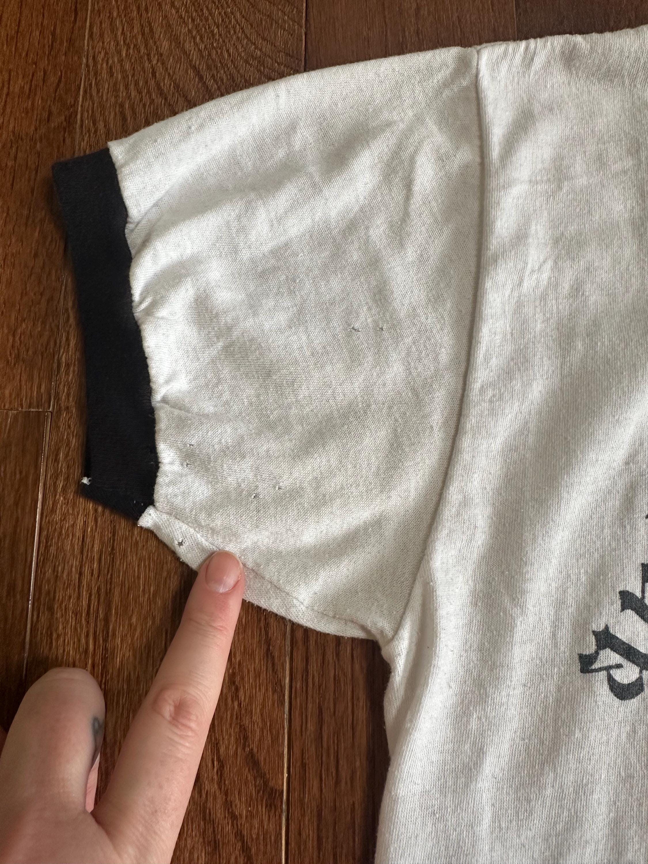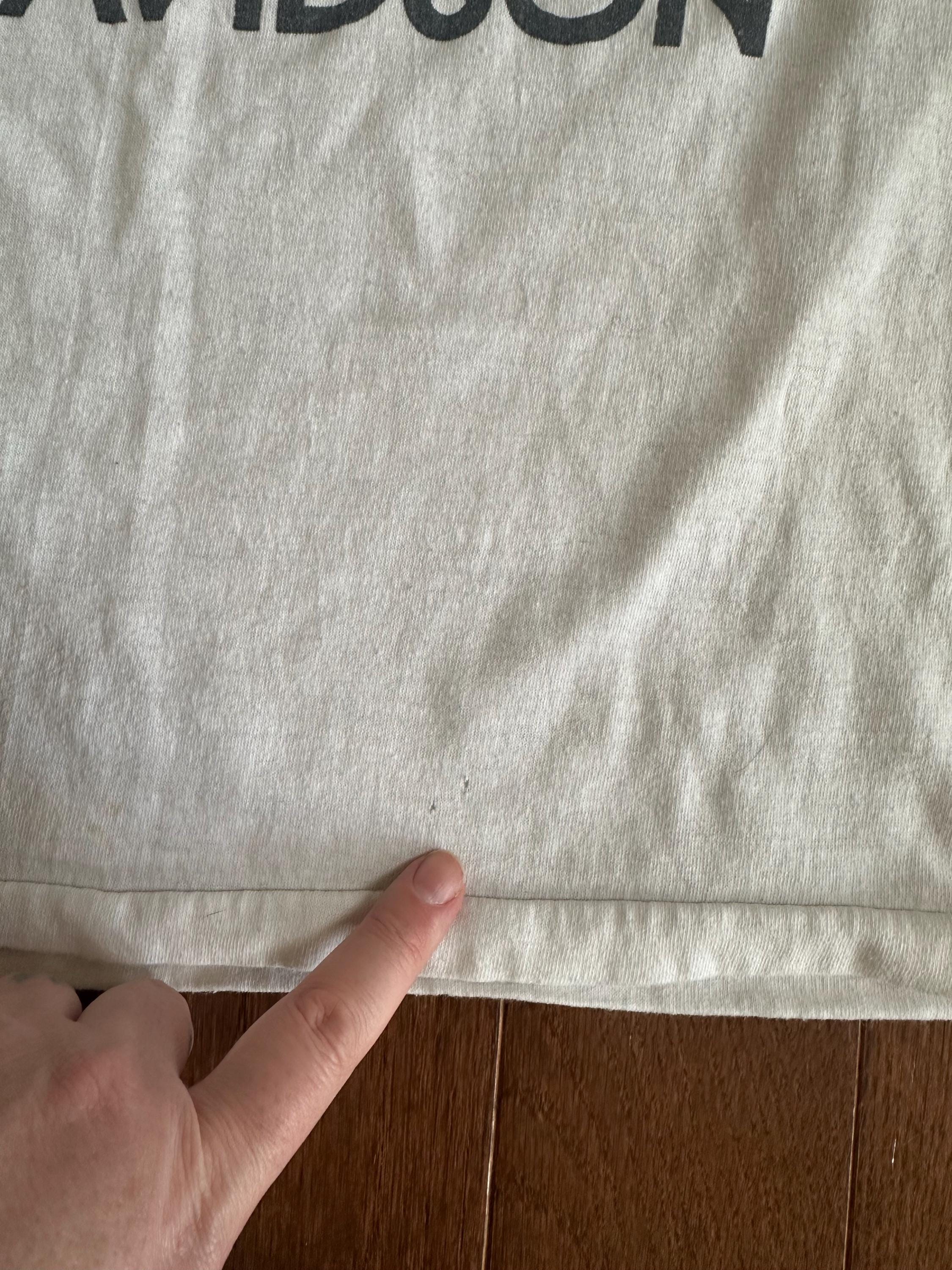 As with most genuine vintage pieces, this tee shows visible wear that adds to its character and authenticity. There are pinholes throughout, areas of staining, and overall thinning of the fabric consistent with age and decades of use. These details reflect a life well lived and make this a completely one-of-a-kind piece, not new or reproduced.