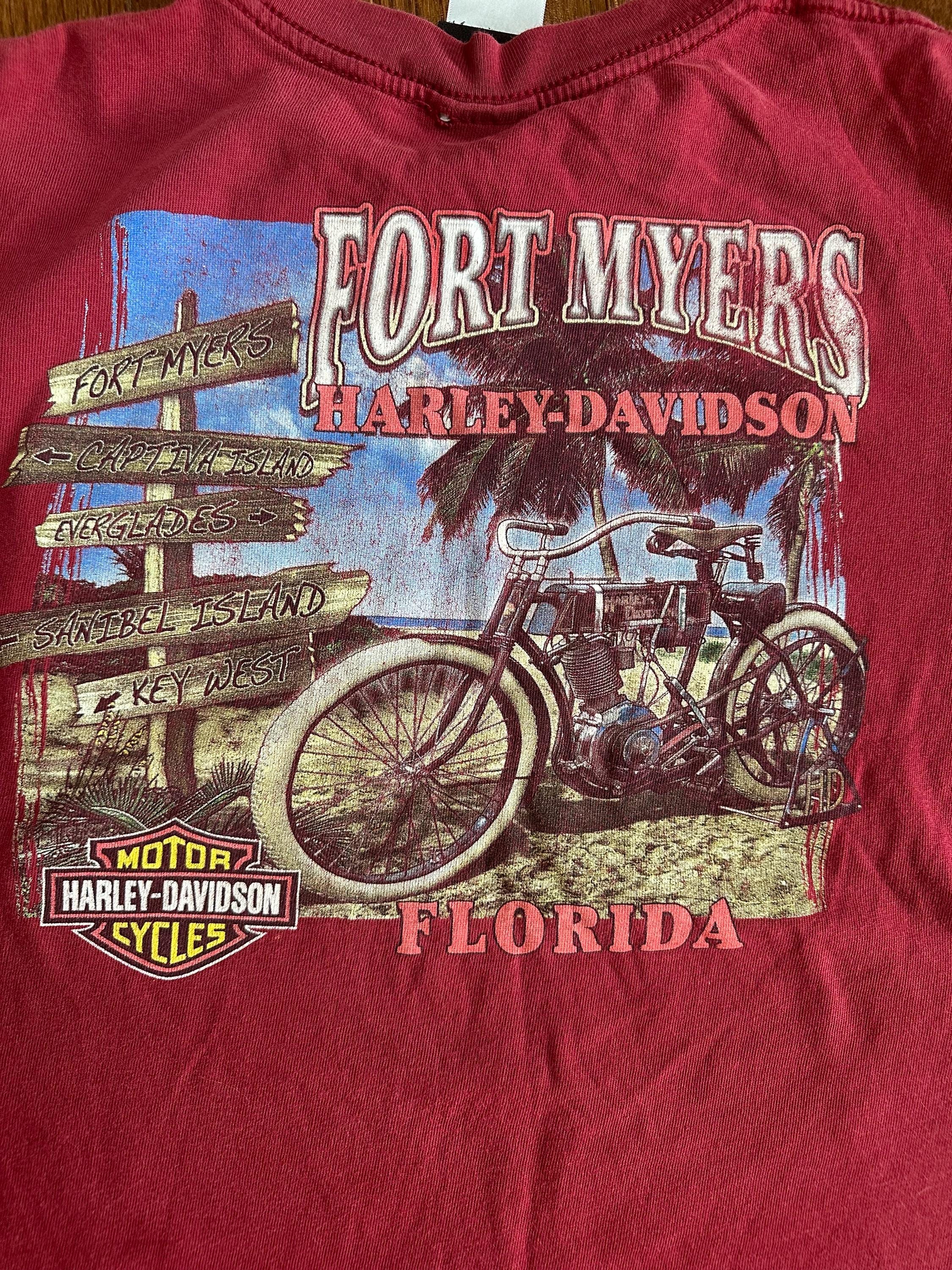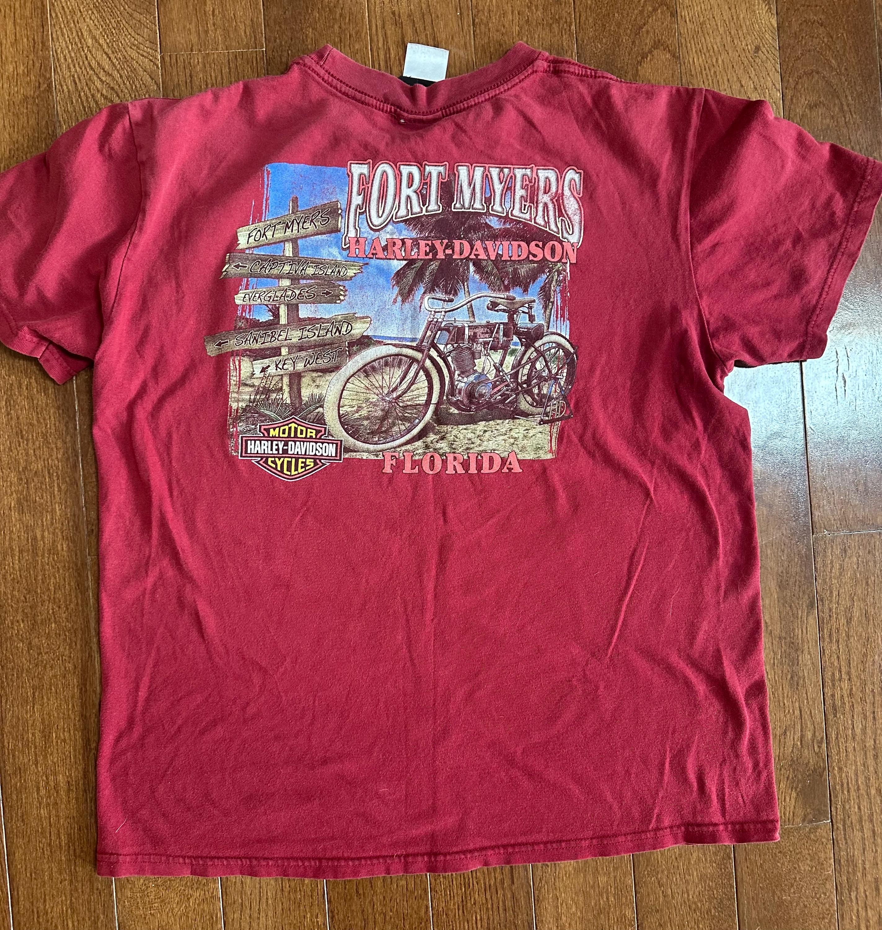 Vintage Harley Davidson Pocket Tee • Fort Myers Florida Harley Shirt • Destination Biker T-Shirt • Y2K Harley Davidson Graphic Tee • Women’s Medium Large
