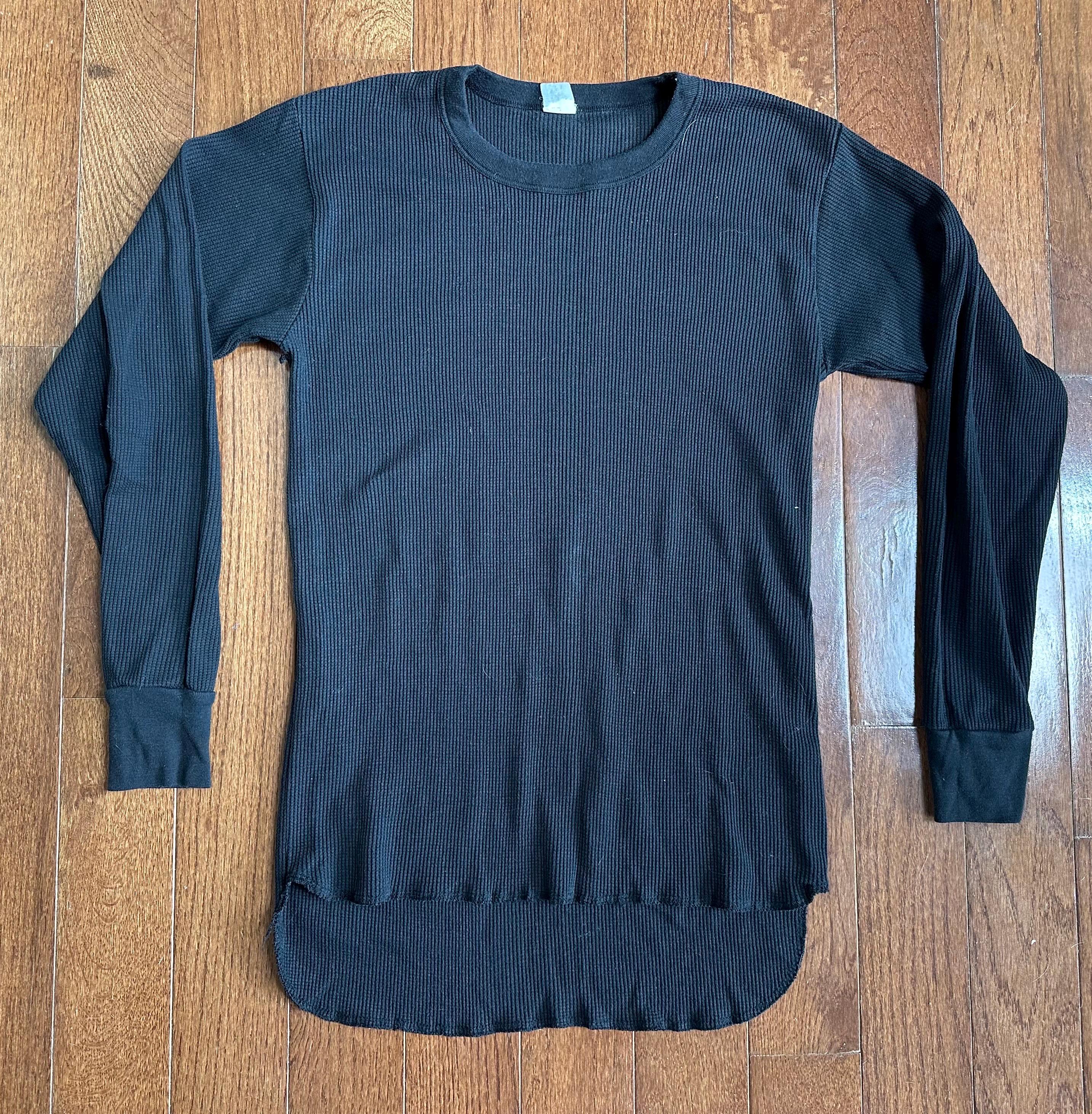A simple black vintage thermal with that classic waffle knit texture, made for layering and wearing on repeat. The kind of piece you reach for whether you’re heading out into the cold or just want that effortless, lived-in look.