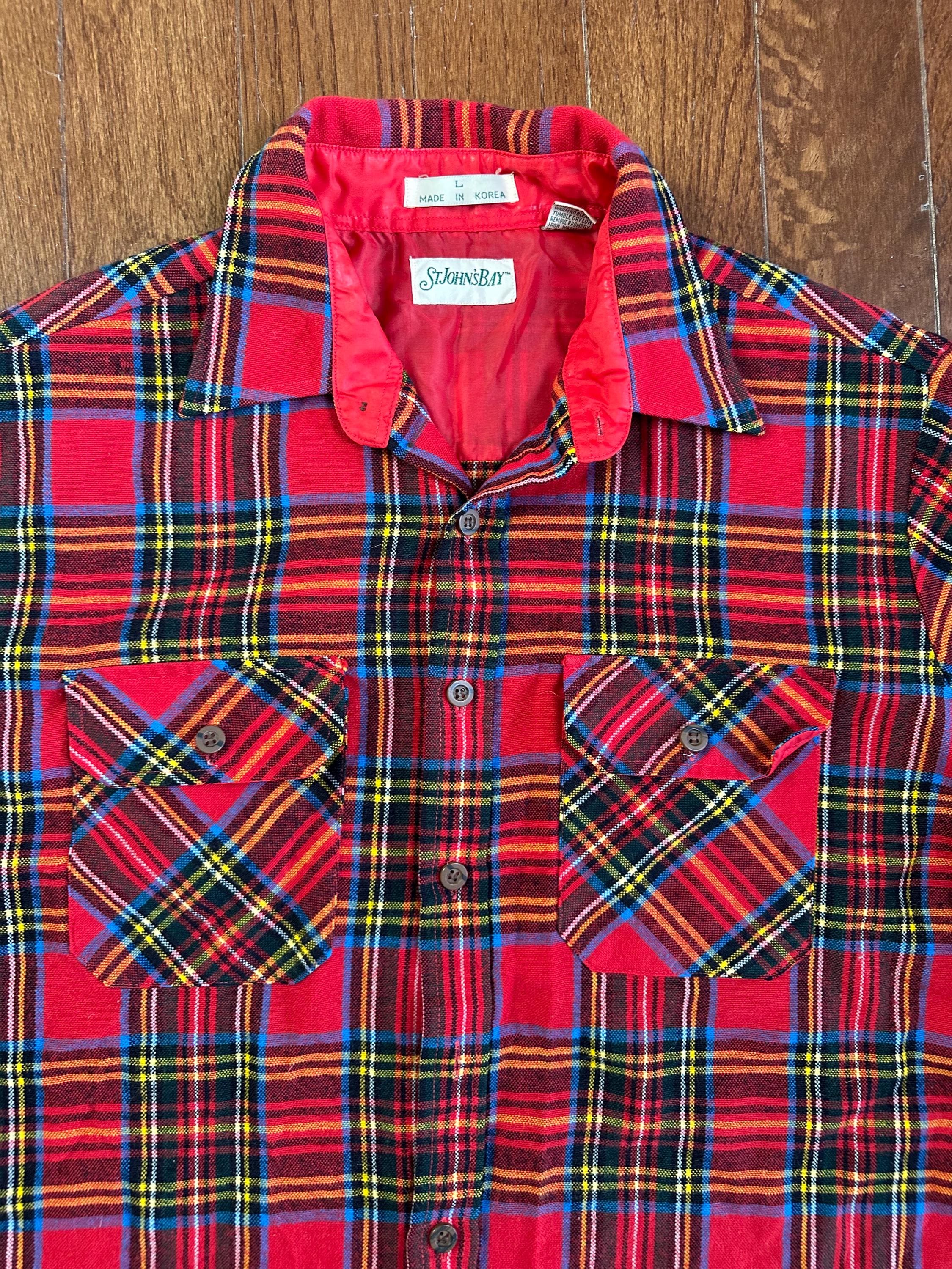 1970s St. John’s Bay Plaid Flannel | Vintage Red Plaid Shirt | Acrylic Flannel | Aspen Layers Essential | Mountain Style Vintage