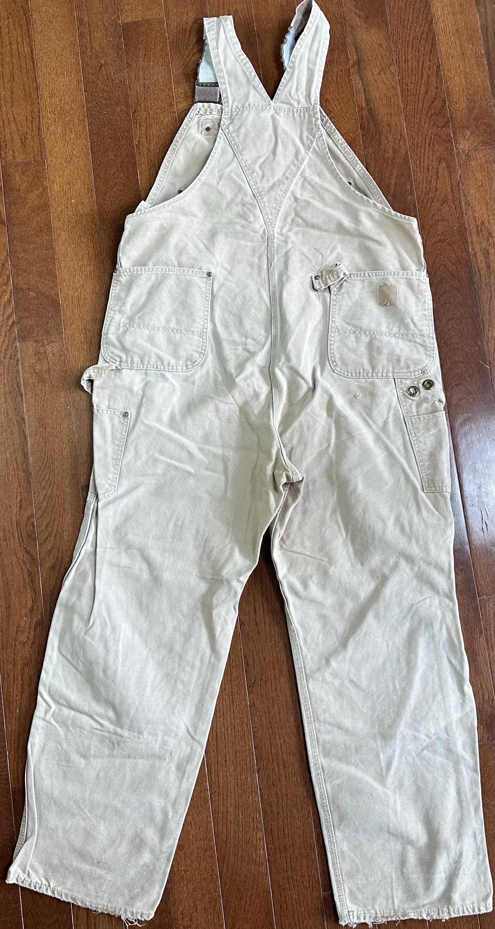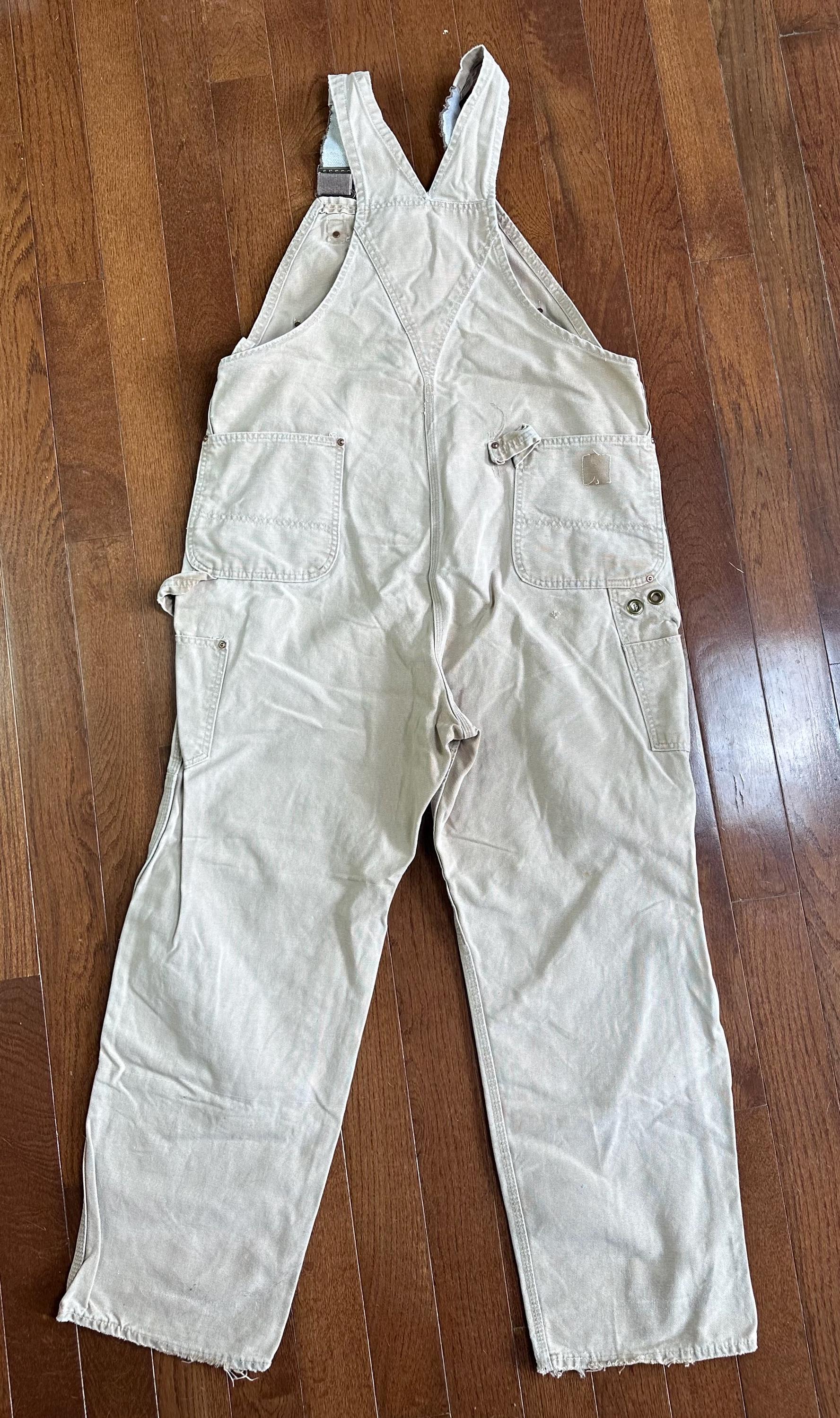 Vintage Carhartt Canvas Overalls | Distressed Tan Carpenter Bibs | Workwear Utility Overalls | Aspen Layers | Vintage Workwear