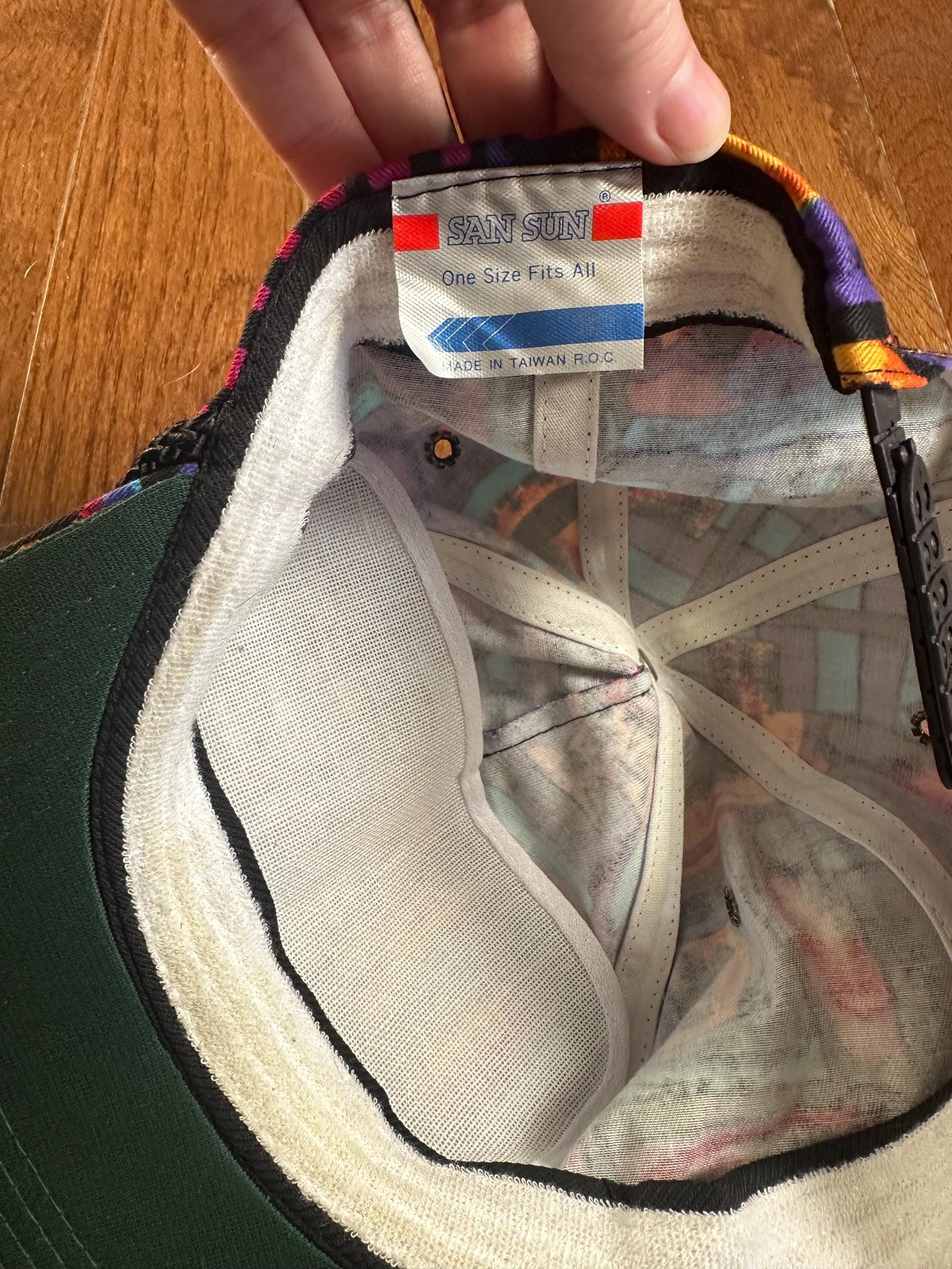 This is a true vintage item and shows signs of wear consistent with age, including staining on the interior sweatband, as shown in photos. The exterior remains in great condition.