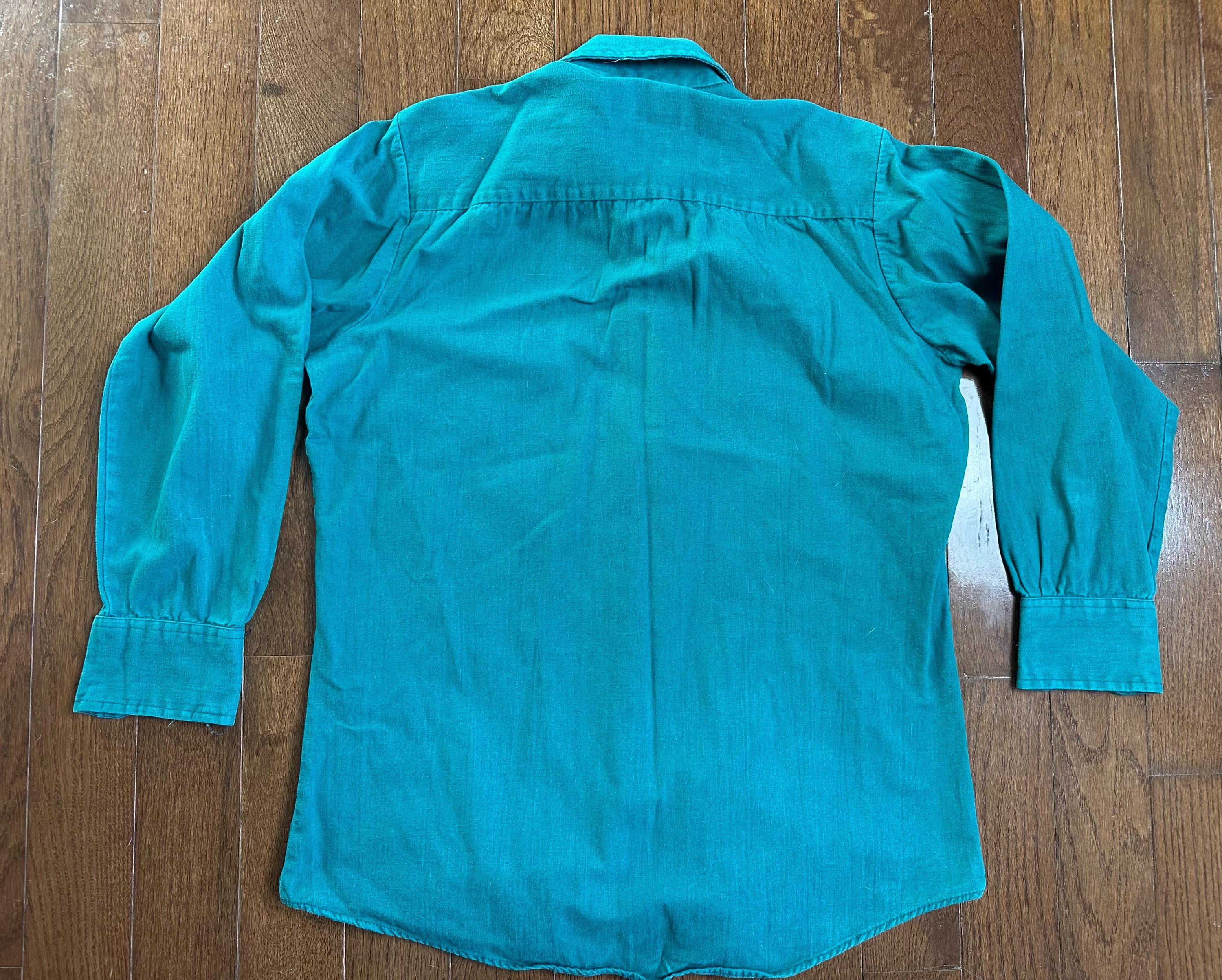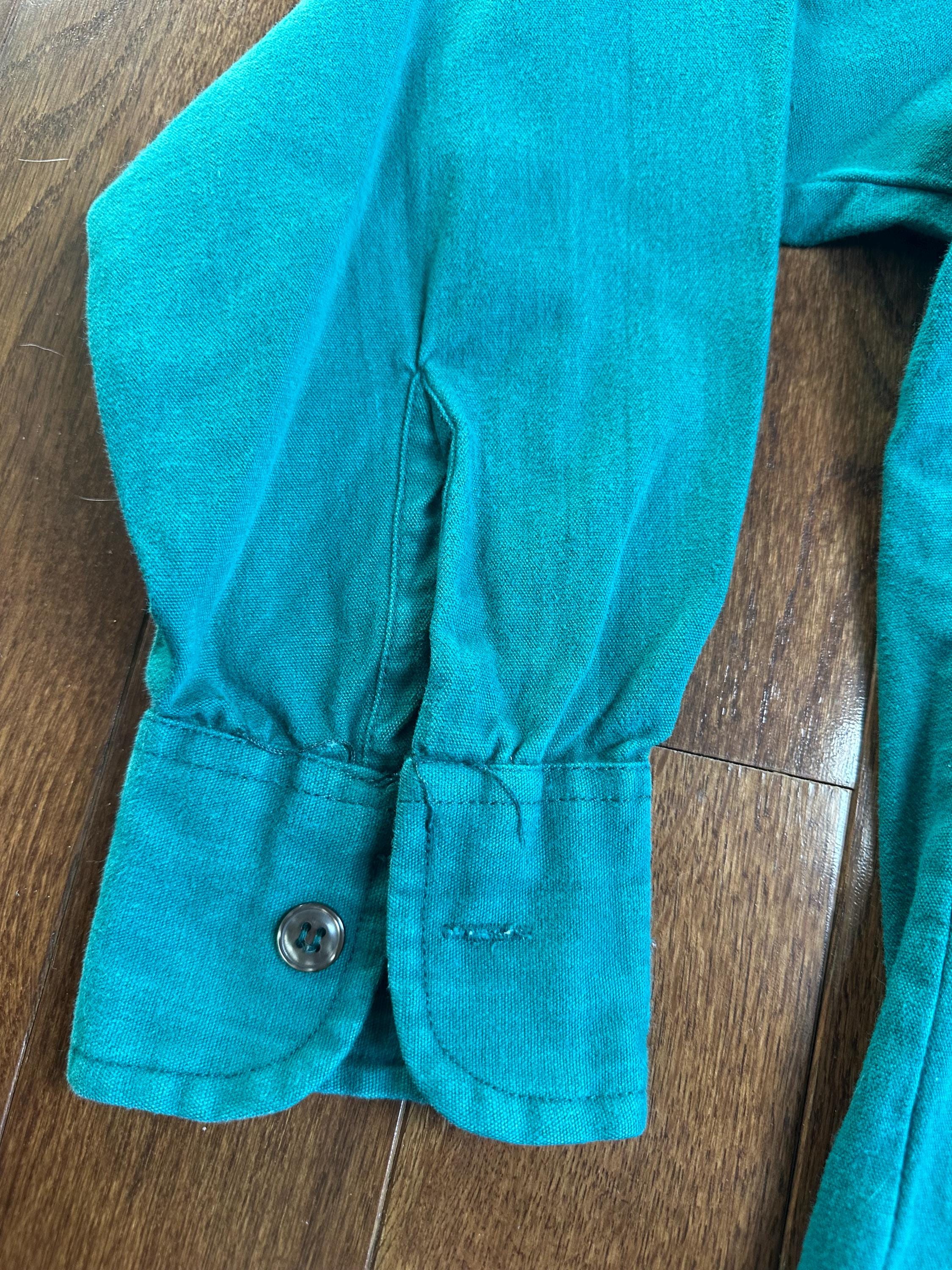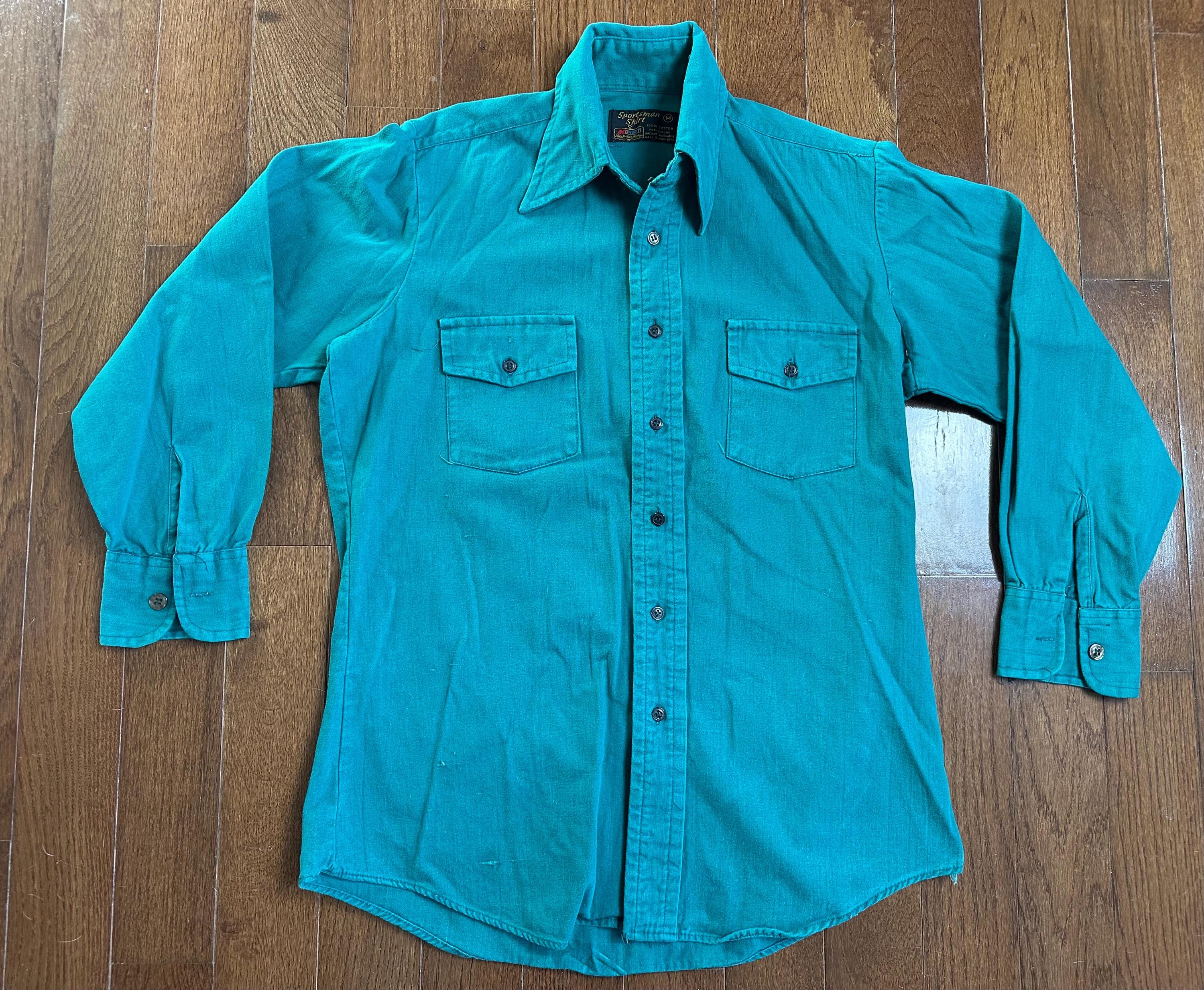 Vintage Kmart Sportsman Shirt Teal Green Button Up Distressed Workwear Cotton