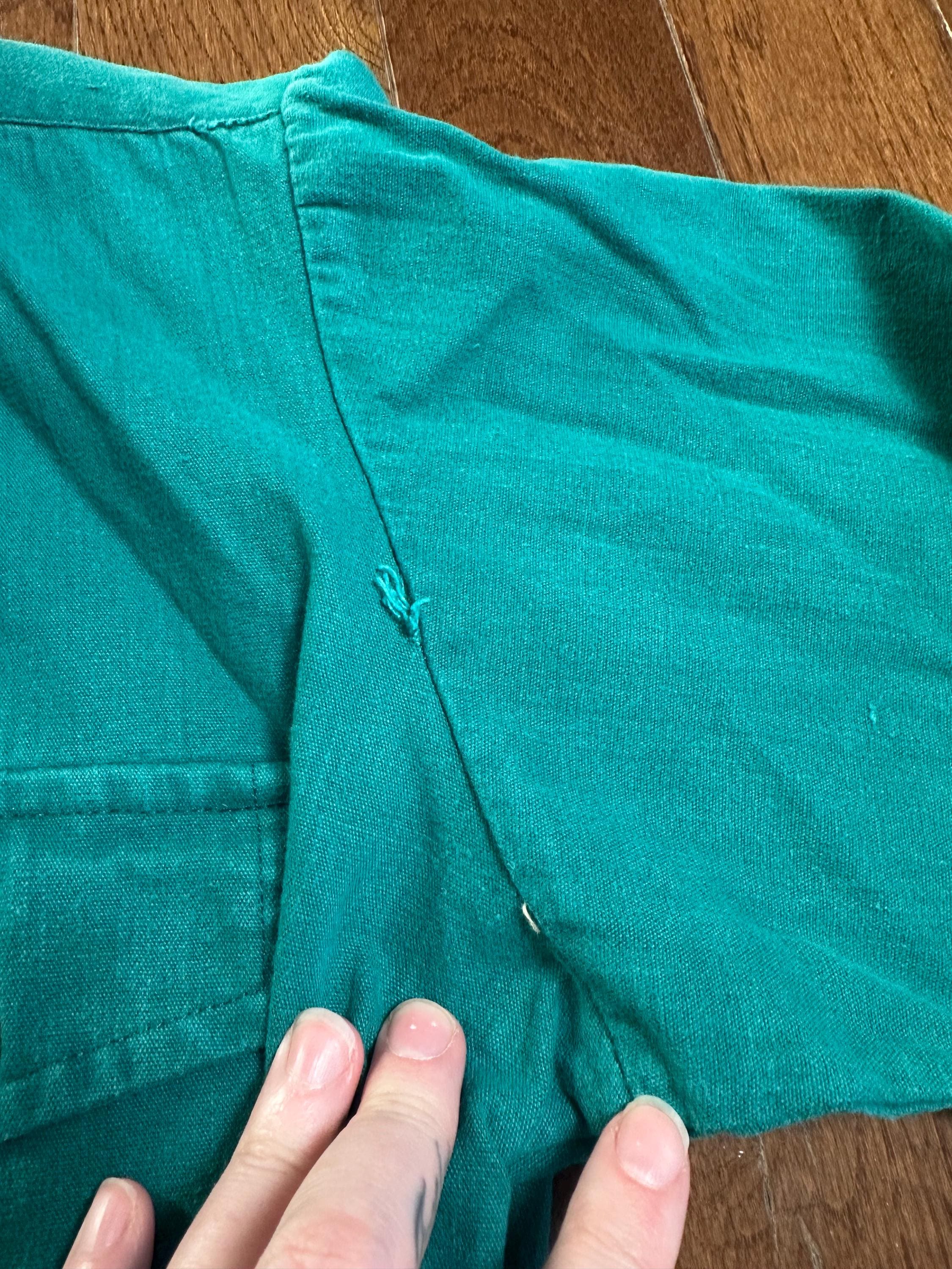 The color is a rich teal/kelly green that stands out in the best way, especially against the soft fade throughout the fabric. It has that perfect broken-in feel that only comes with time.