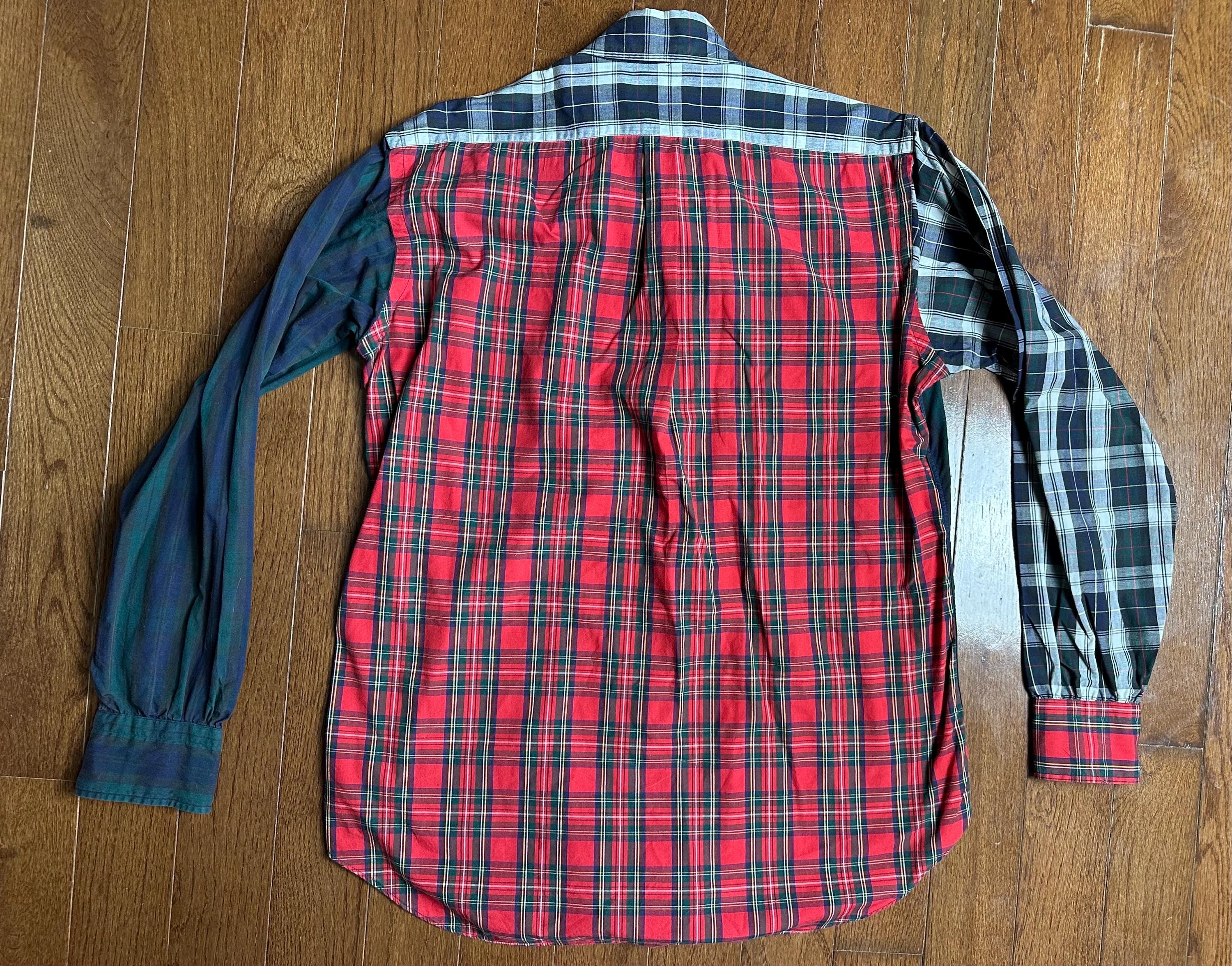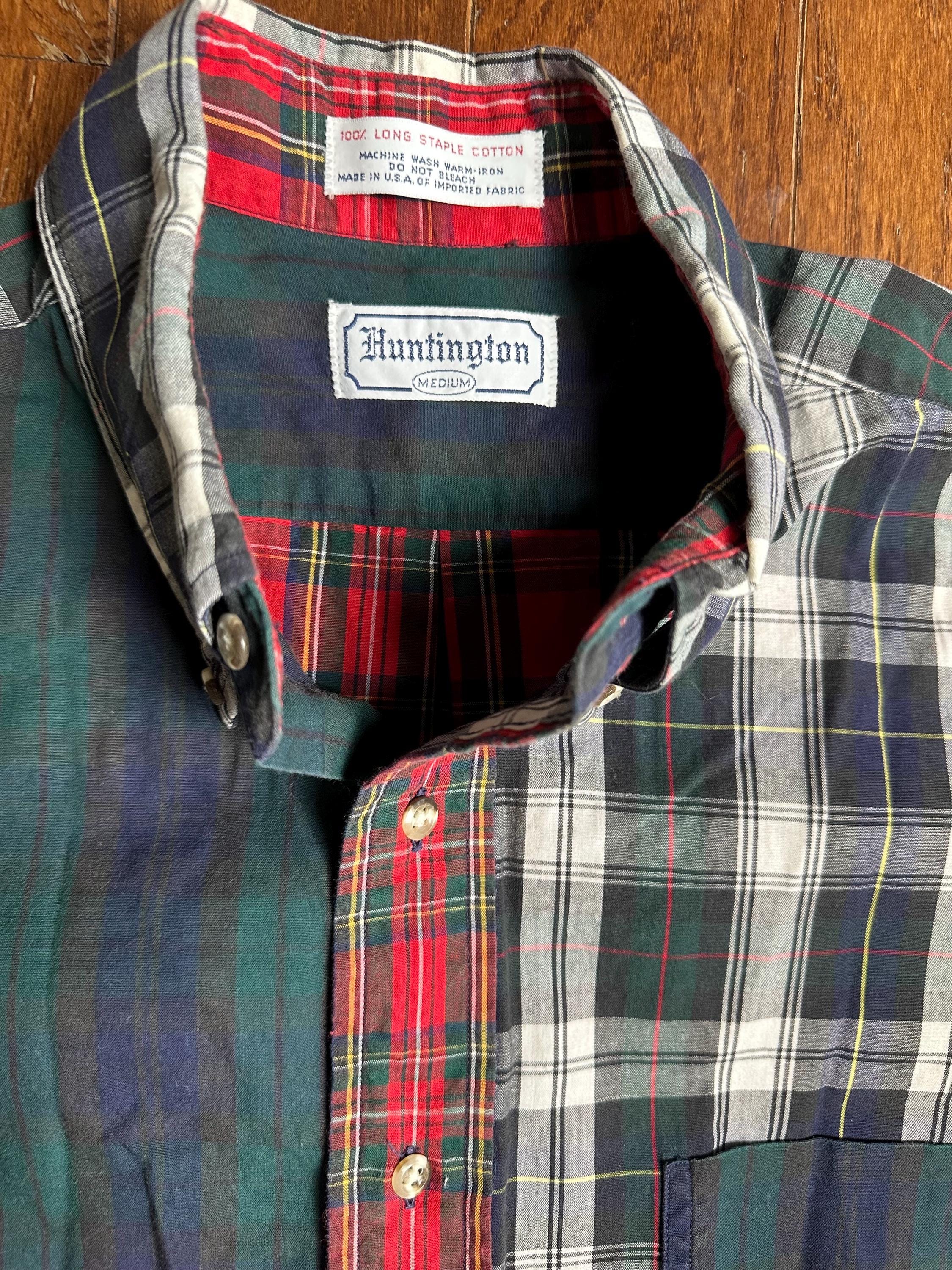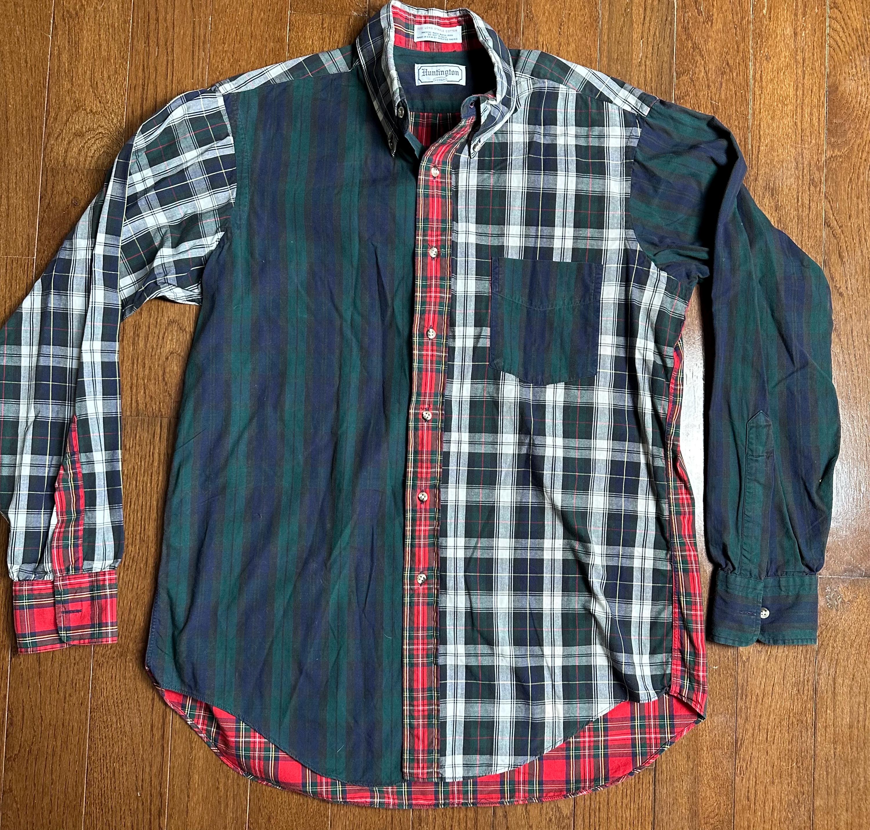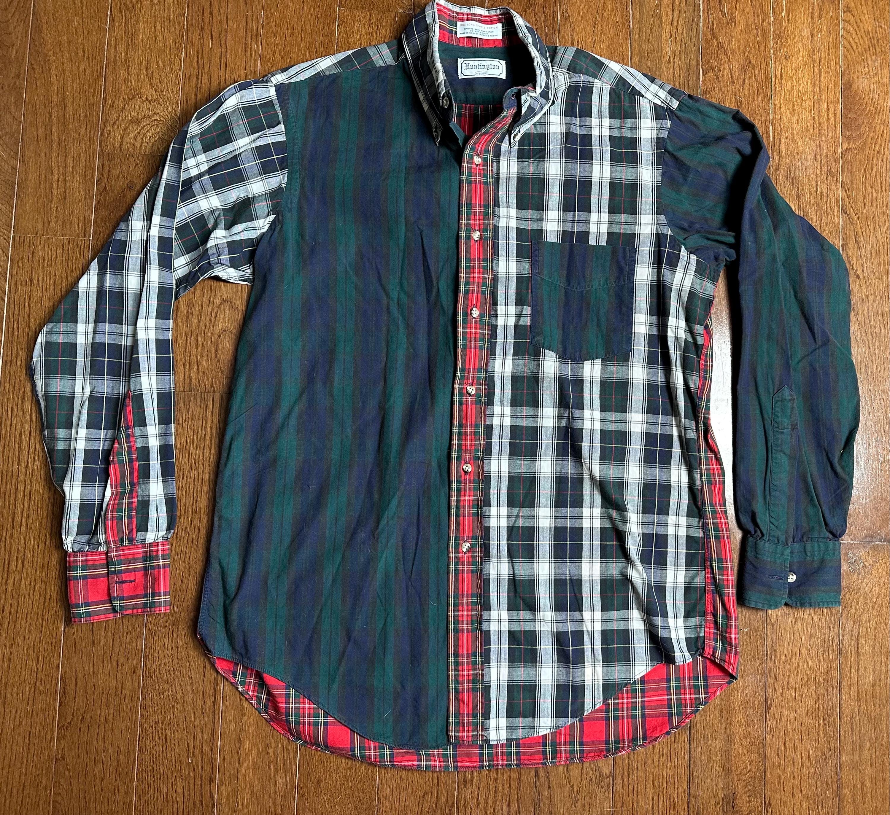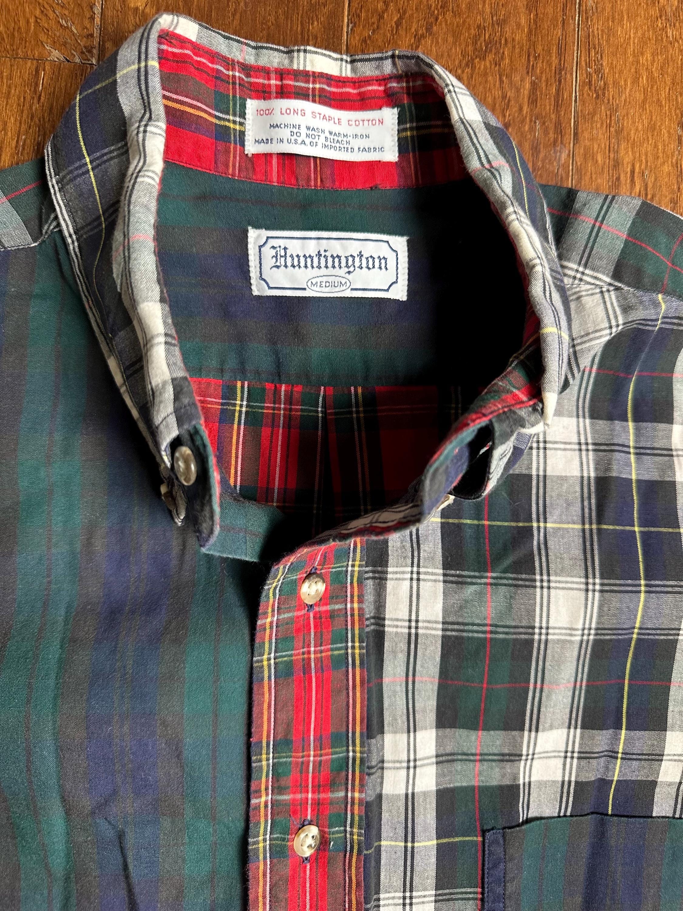 Vintage Patchwork Flannel Button Down Medium | Made in USA Long Staple Cotton | Classic Mixed Plaid Shirt