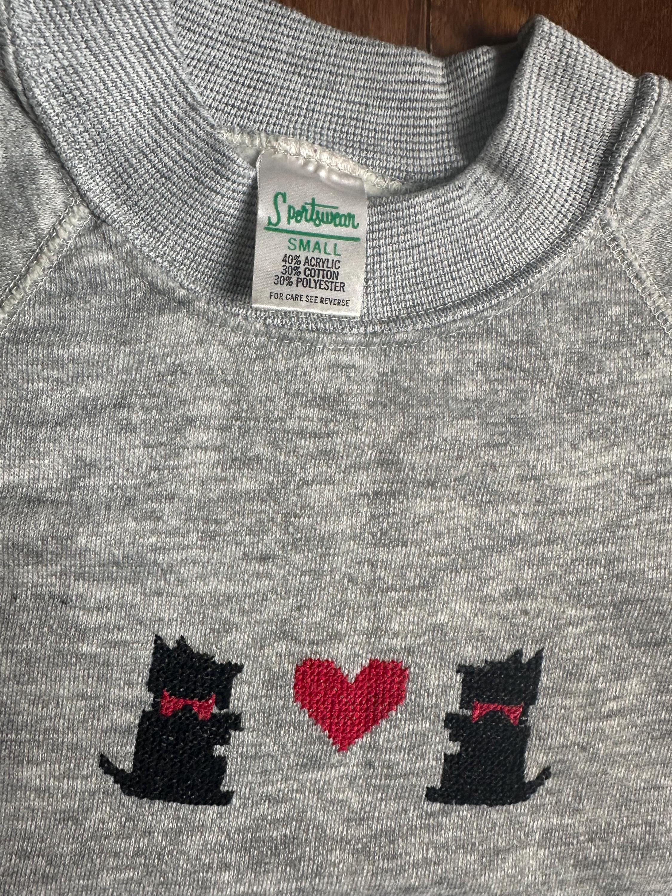 There are pieces that feel personal the moment you see them, and this is one of them. A vintage raglan sweatshirt featuring two Scottie dogs and a heart detail across the front, simple, playful, and full of character.
