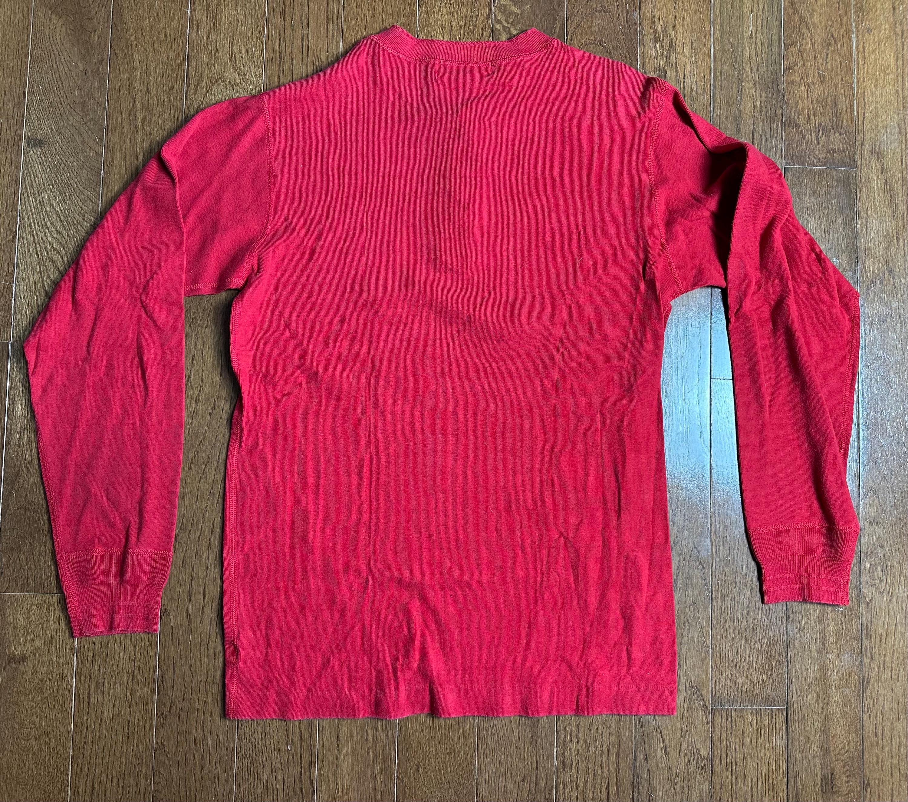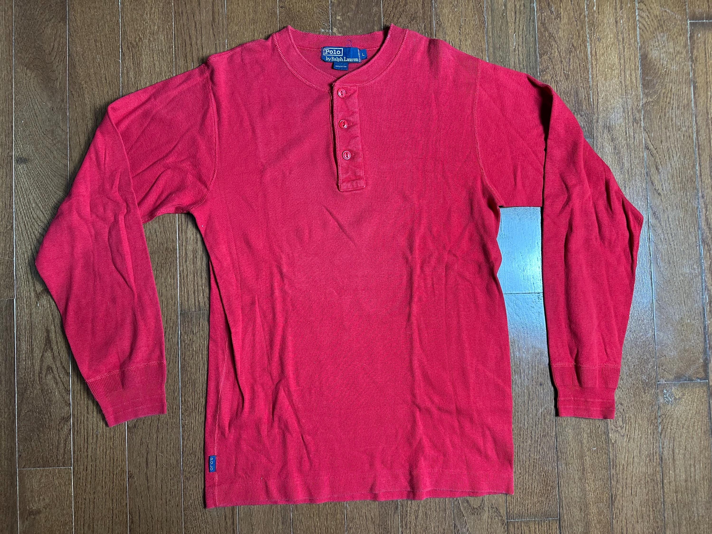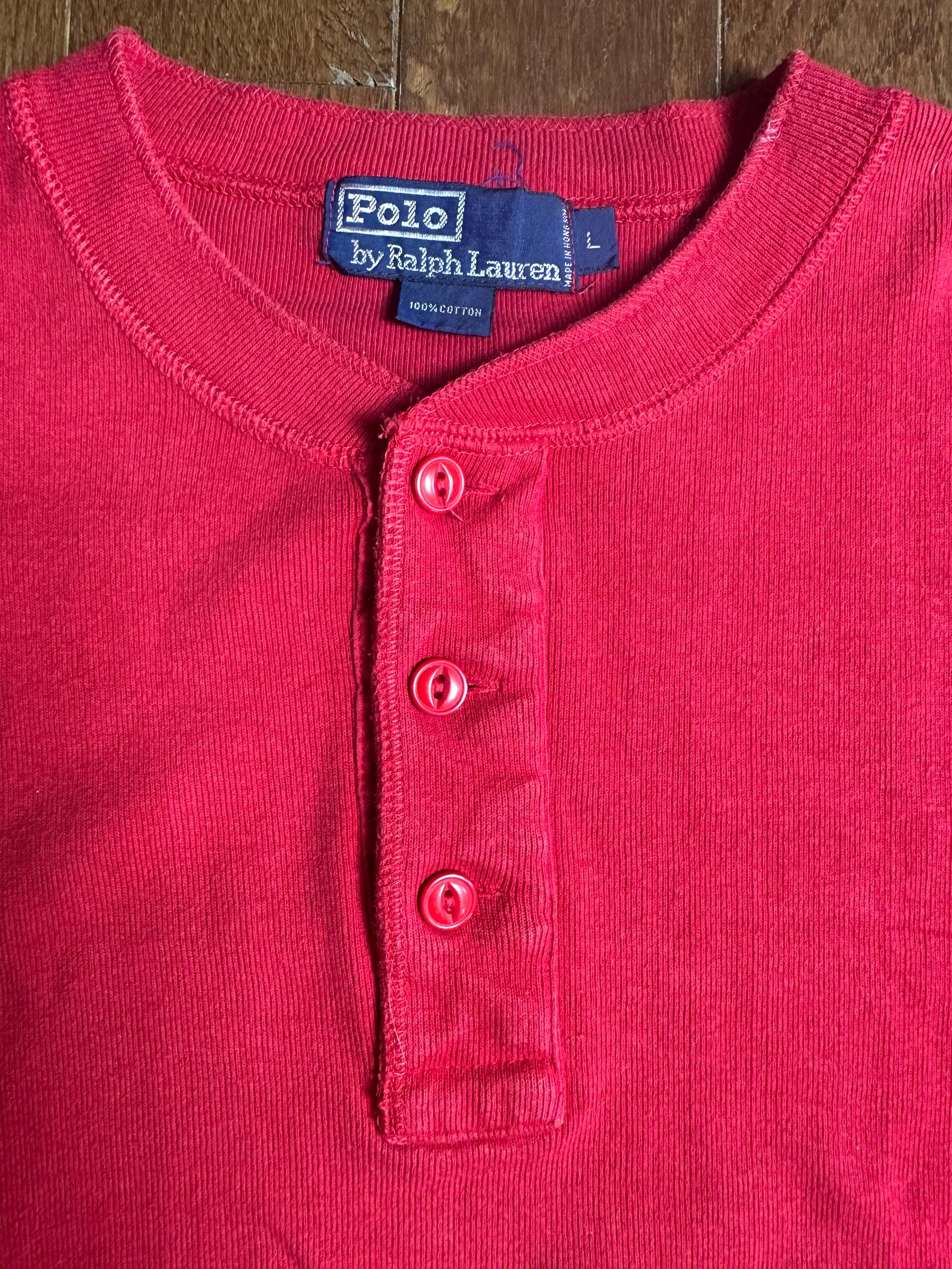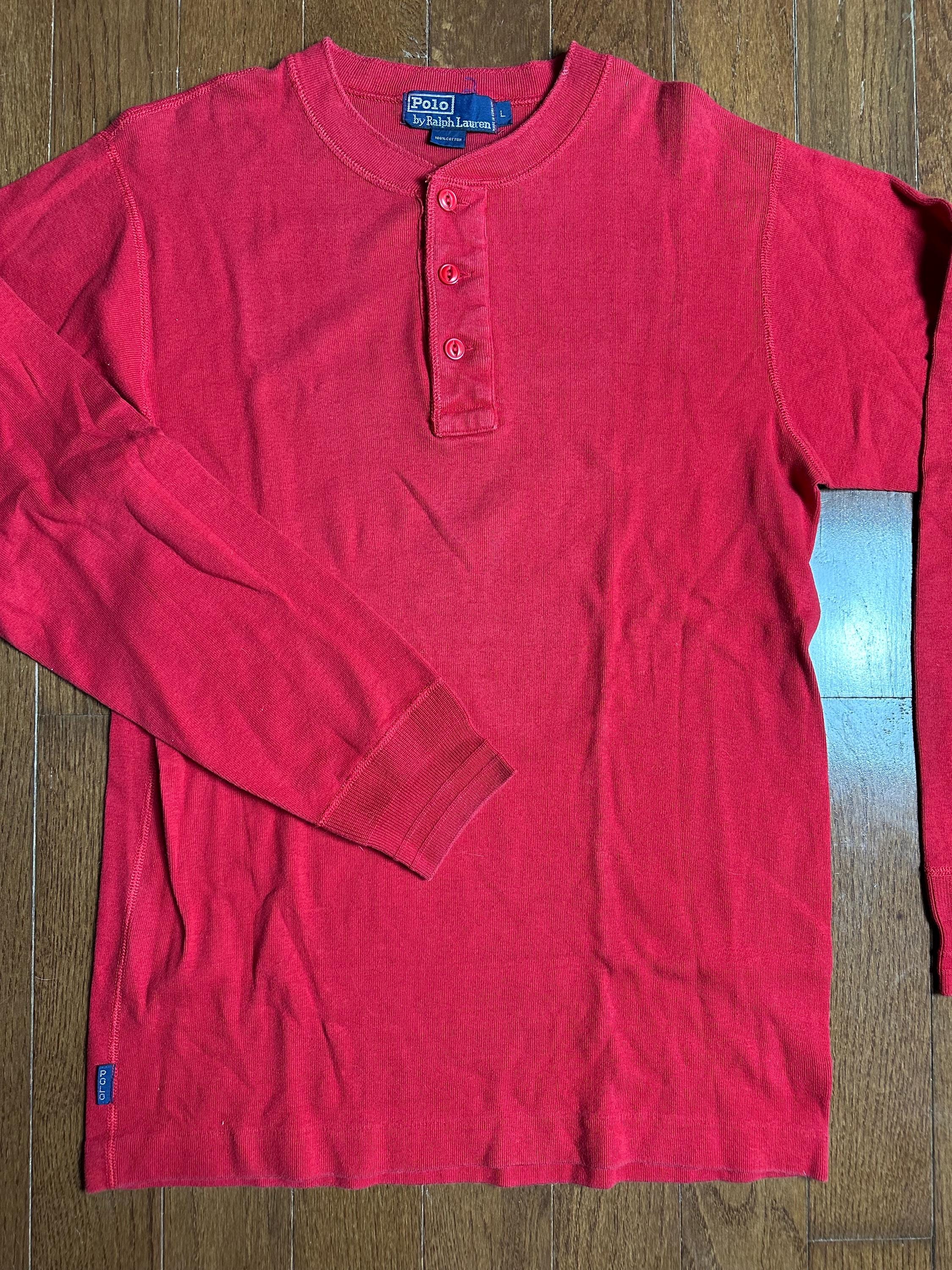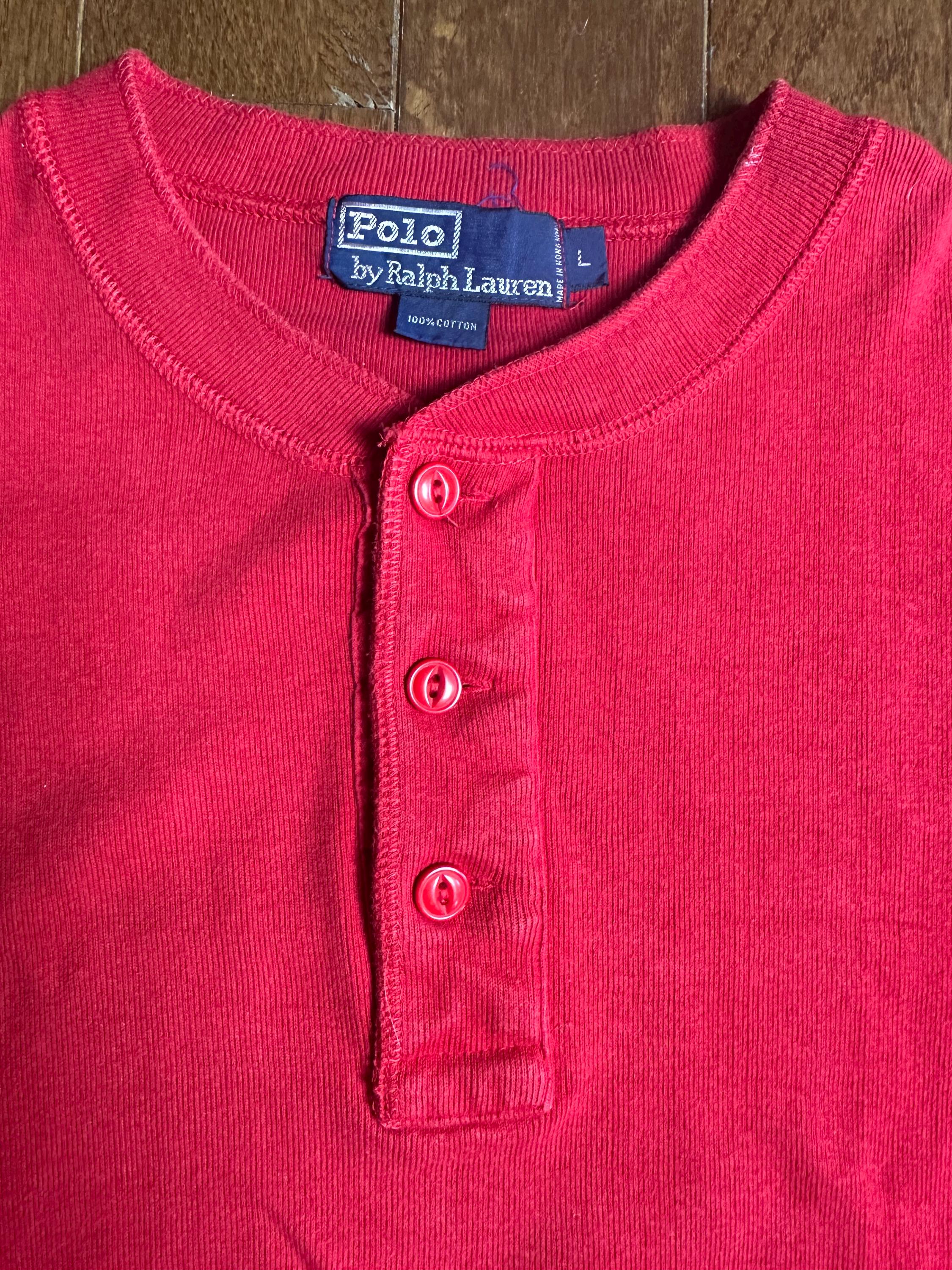 Vintage Ralph Lauren Cotton Henley Large | Heavyweight Red Long Sleeve | Classic Alpine Layering Piece