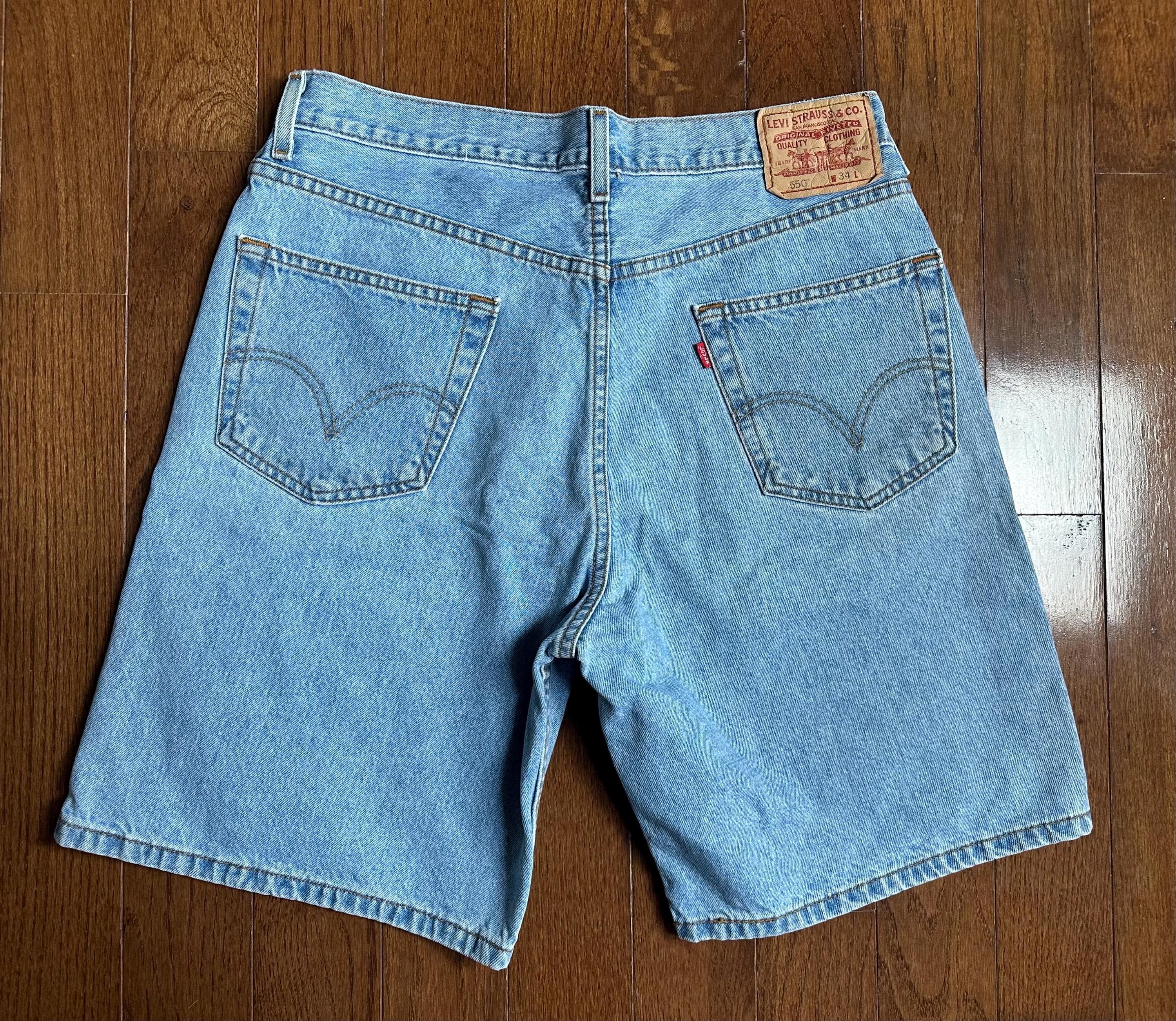 Classic vintage Levi’s 550 denim shorts with that relaxed, easy fit that feels like summer in the 90s.