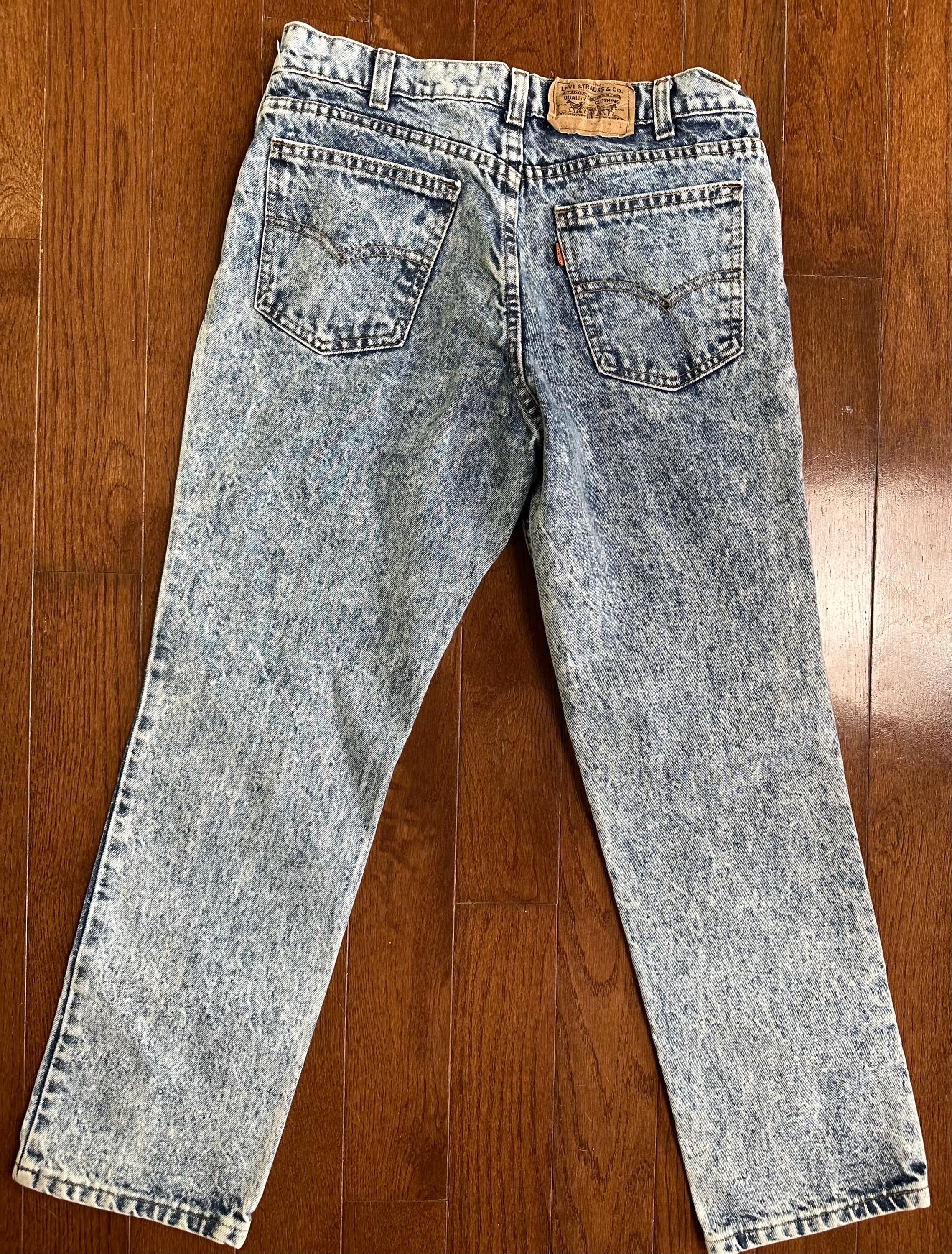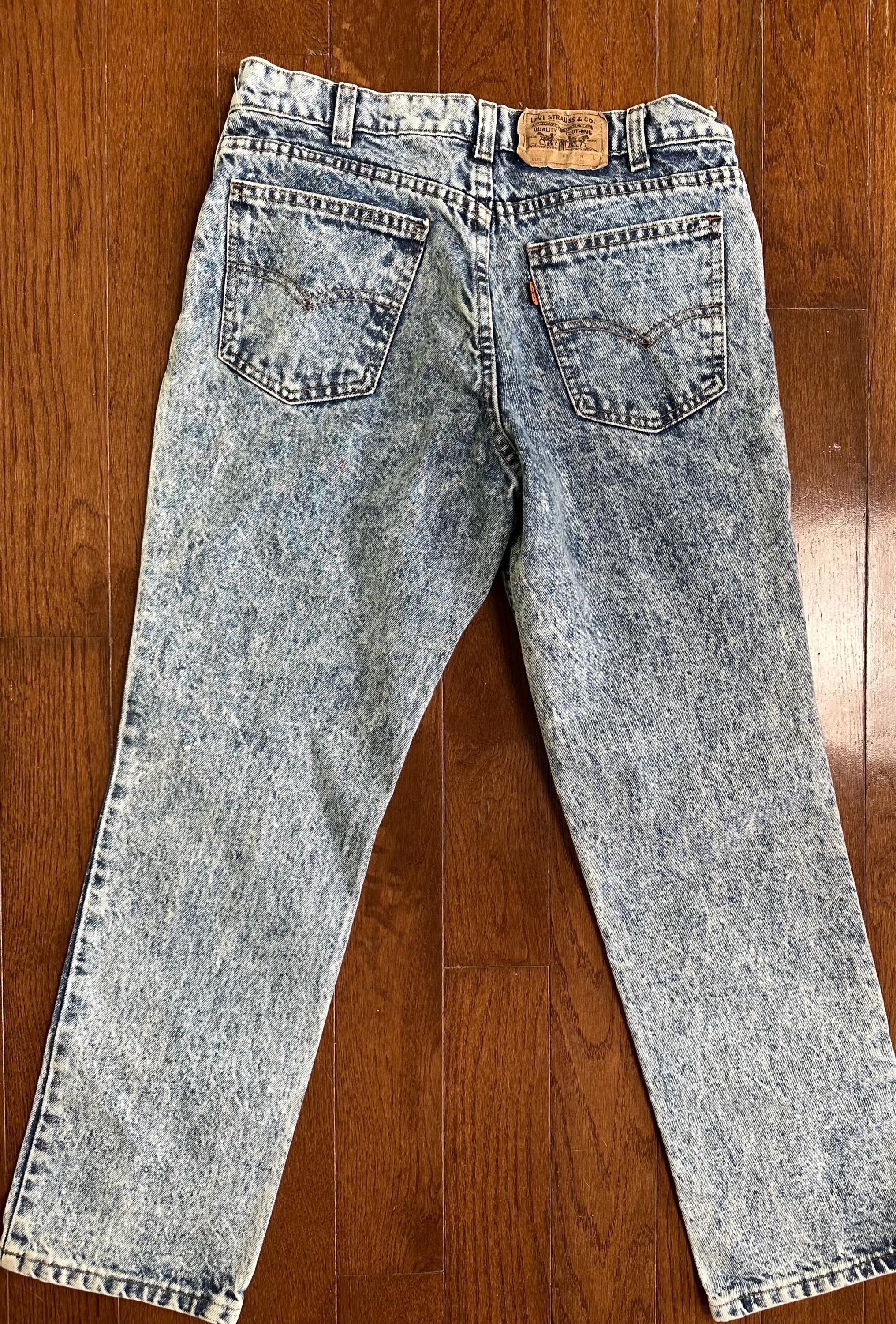 Vintage Levi’s 500 Orange Tab Acid Wash Jeans 80s High Waist Distressed Denim USA Style 26.5x32