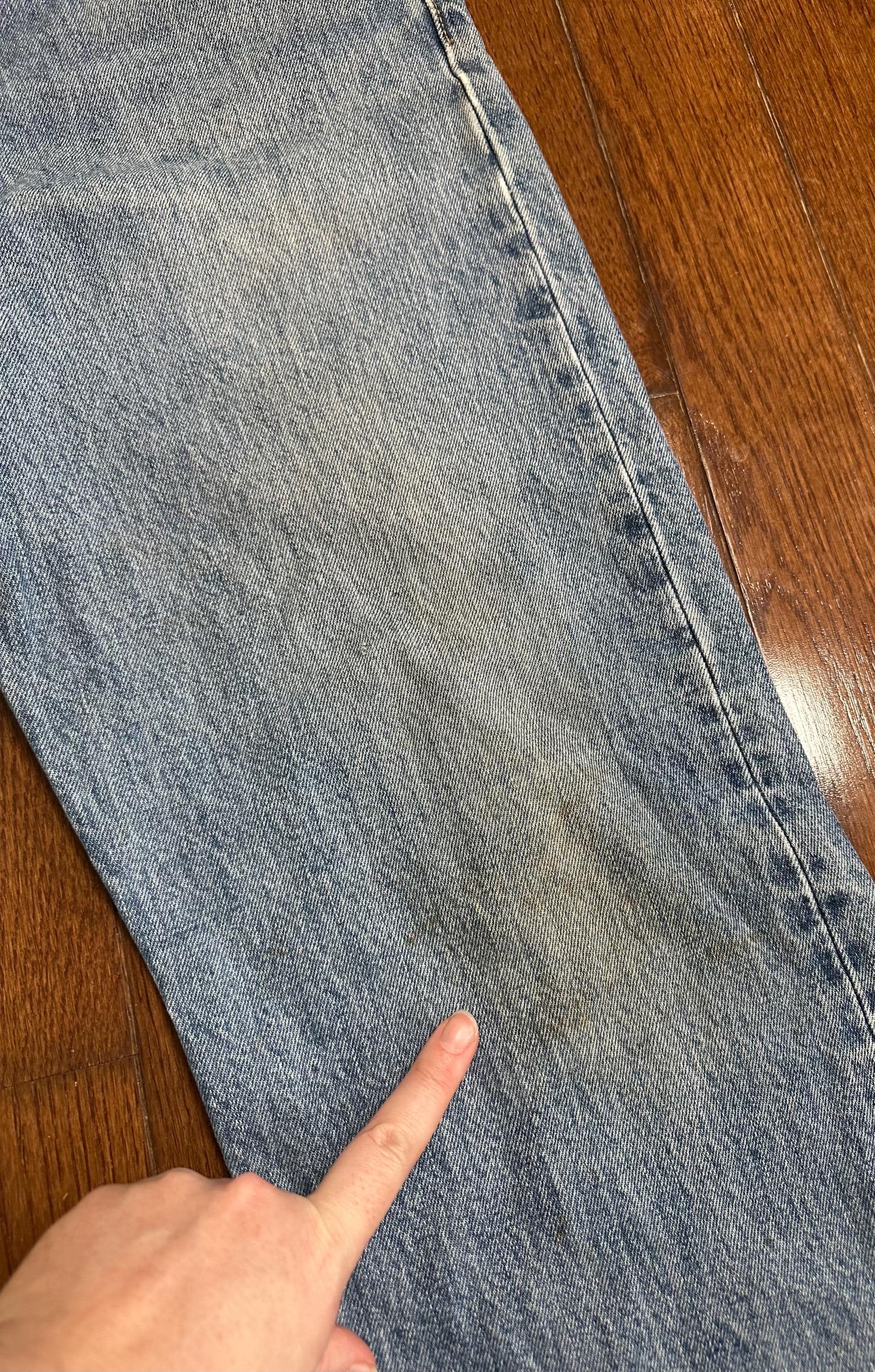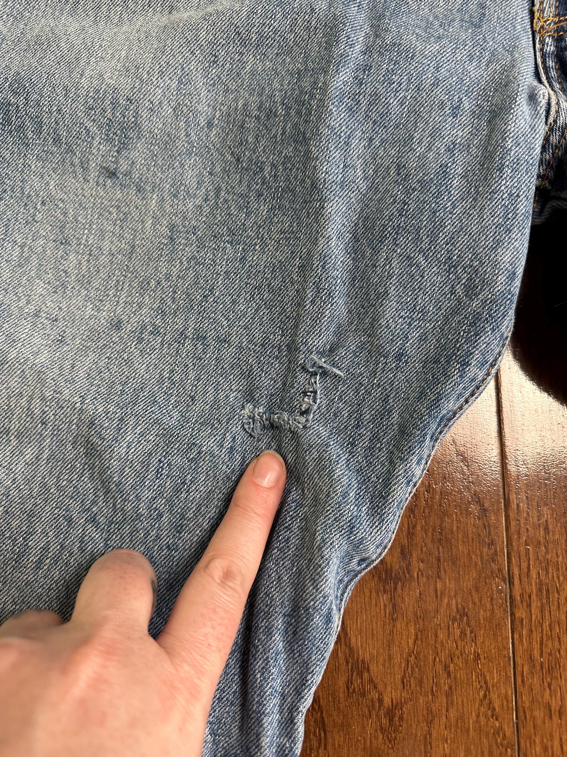 All flaws are reflected in the price and add to the worn-in character of the jeans.