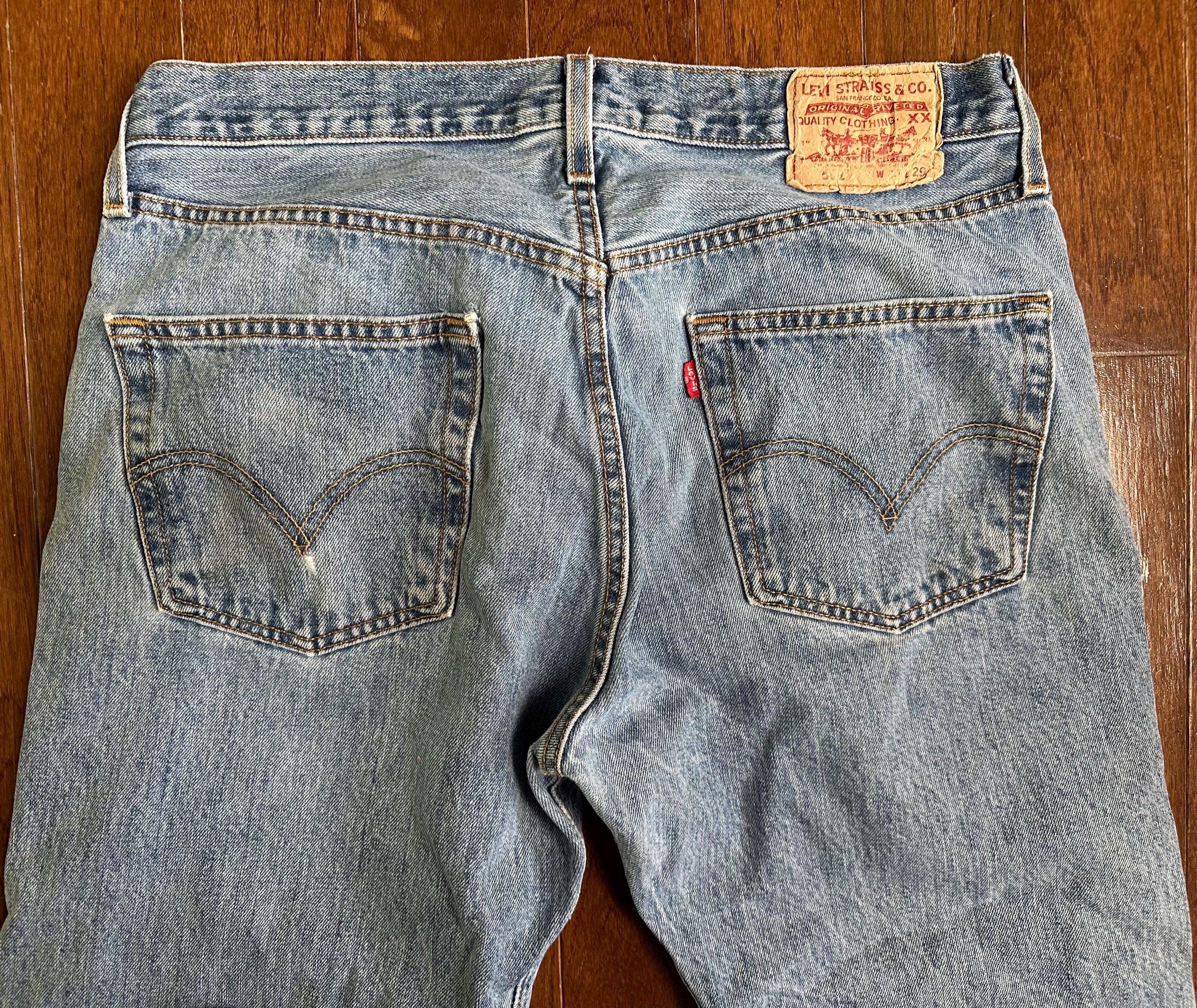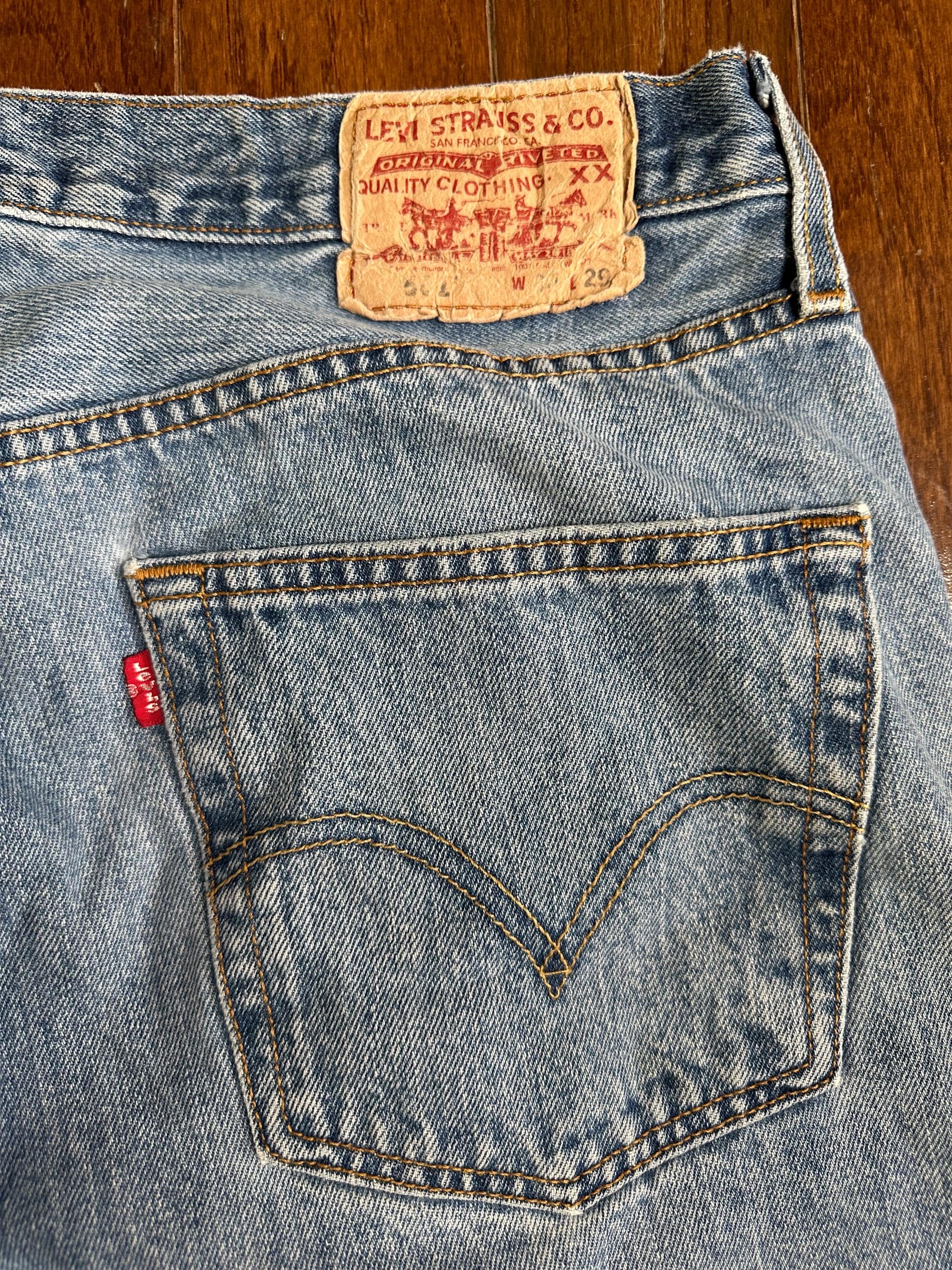 Vintage Levi’s 501 XX Jeans 34x29 Button Fly Distressed Worn Faded Red Tab Denim Made in Mexico