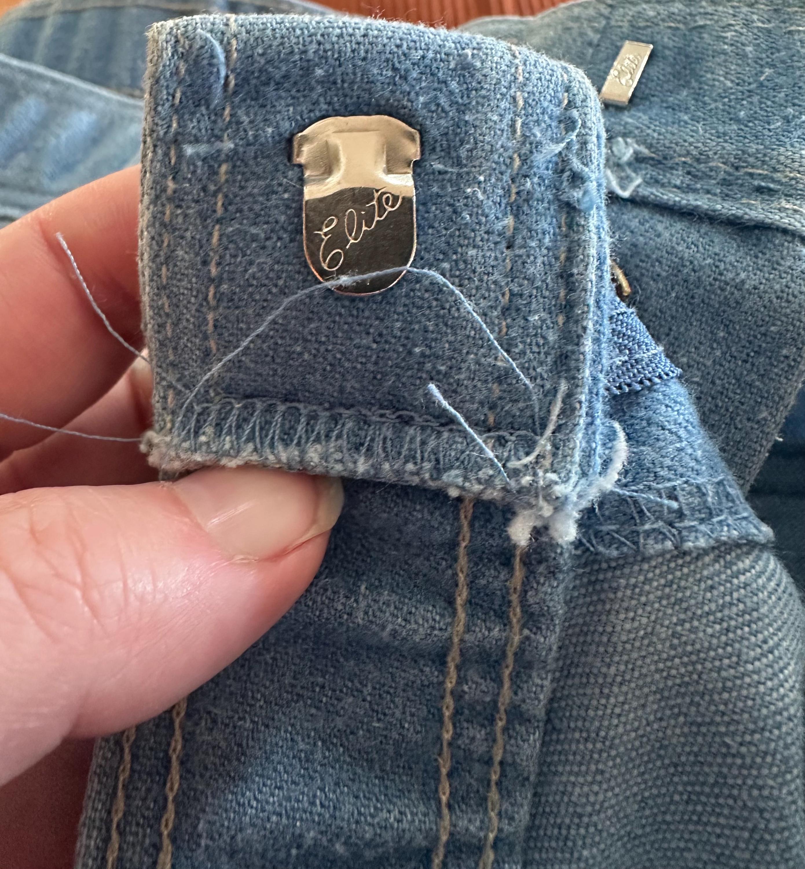 The back pocket stitching and subtle details give them that classic 70s look, simple, worn, and timeless. Finished with a unique ELITE clasp closure at the waist, a small detail that sets them apart and speaks to their era.