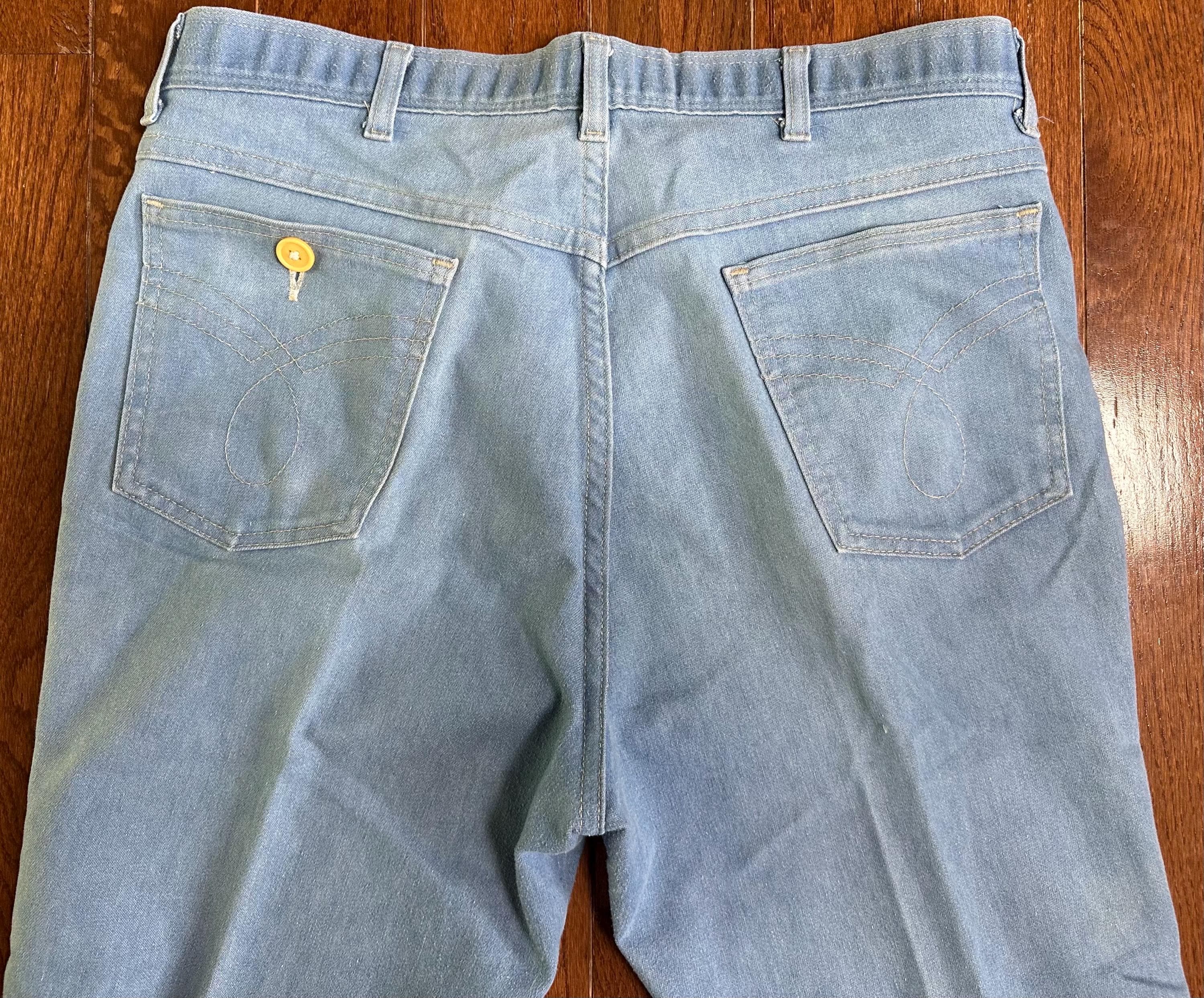 Vintage 70s Lightweight Denim Pants ELITE Clasp High Waist Jeans Faded Blue Straight Leg 36x29.5