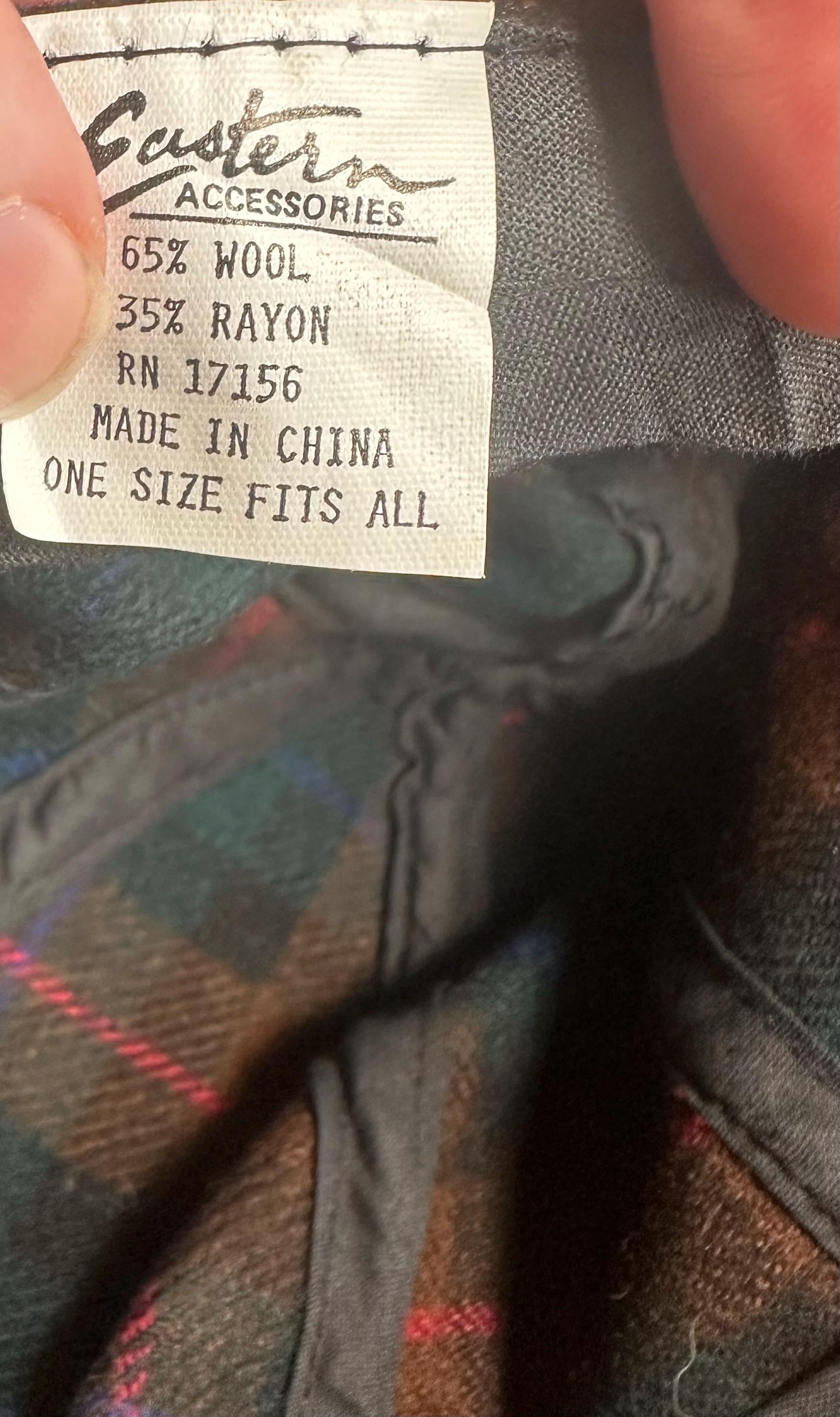 Vintage Wool Plaid Cap Green Suede Brim Hat Cabin Outdoors Aspen Style One Size