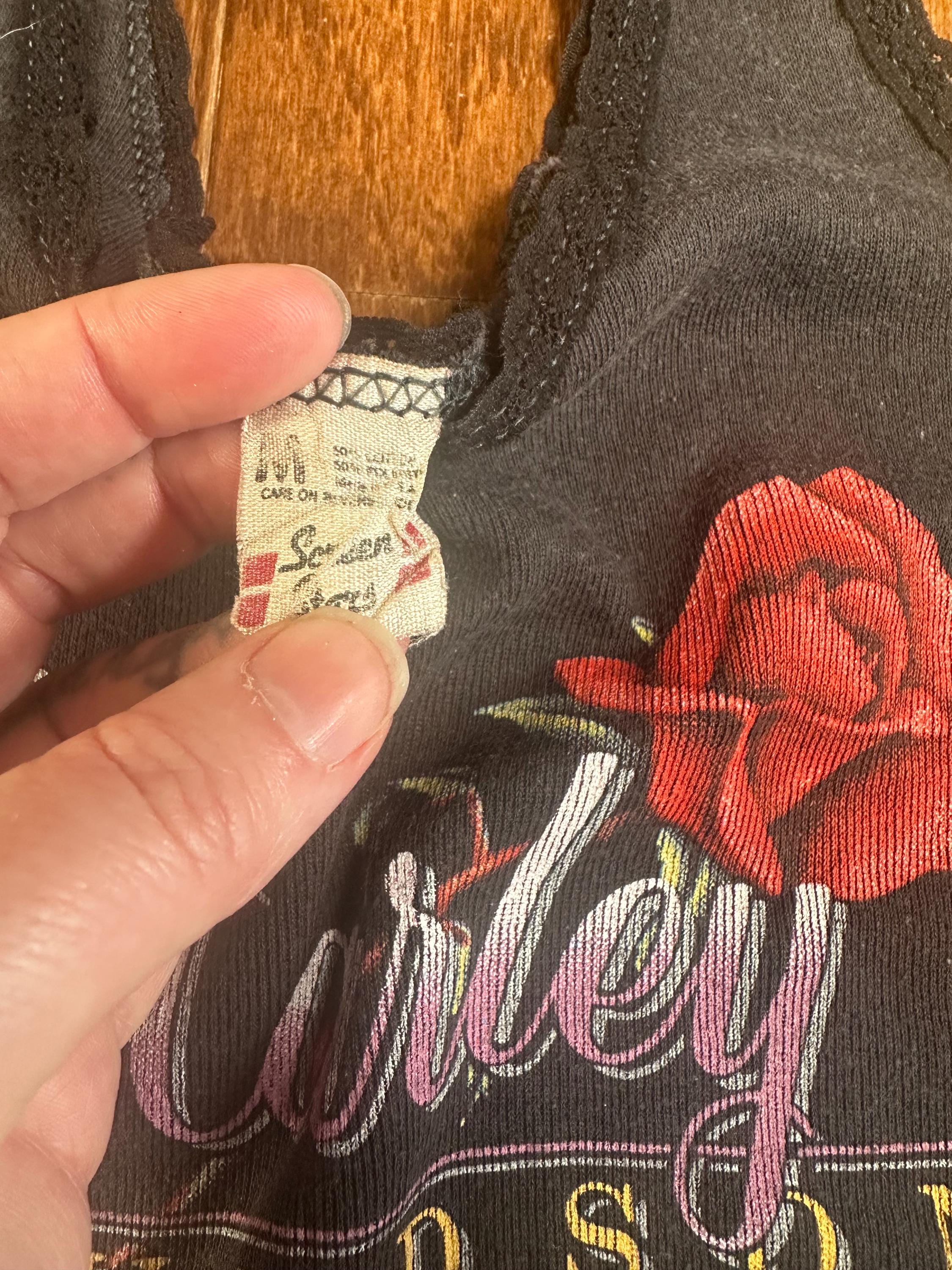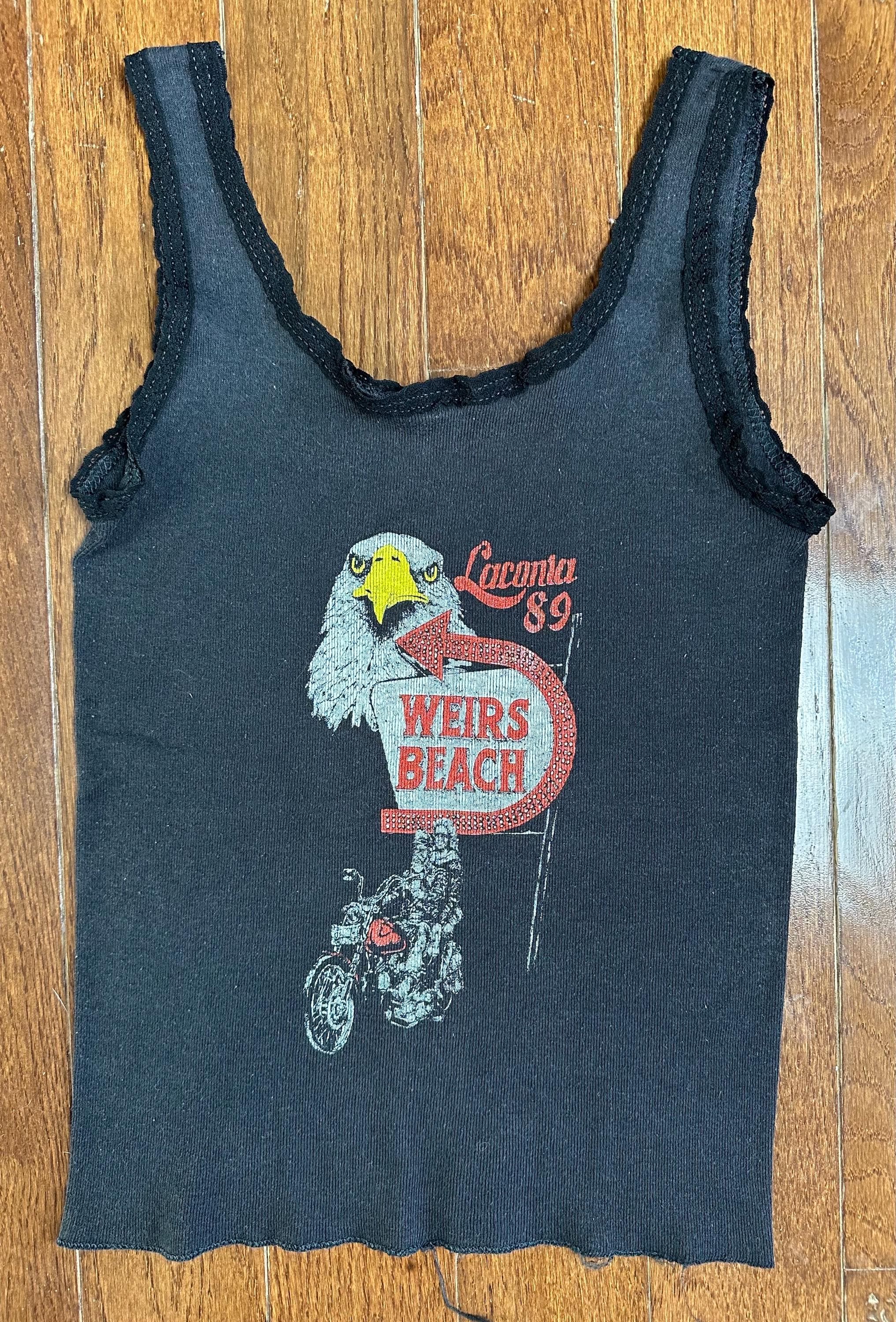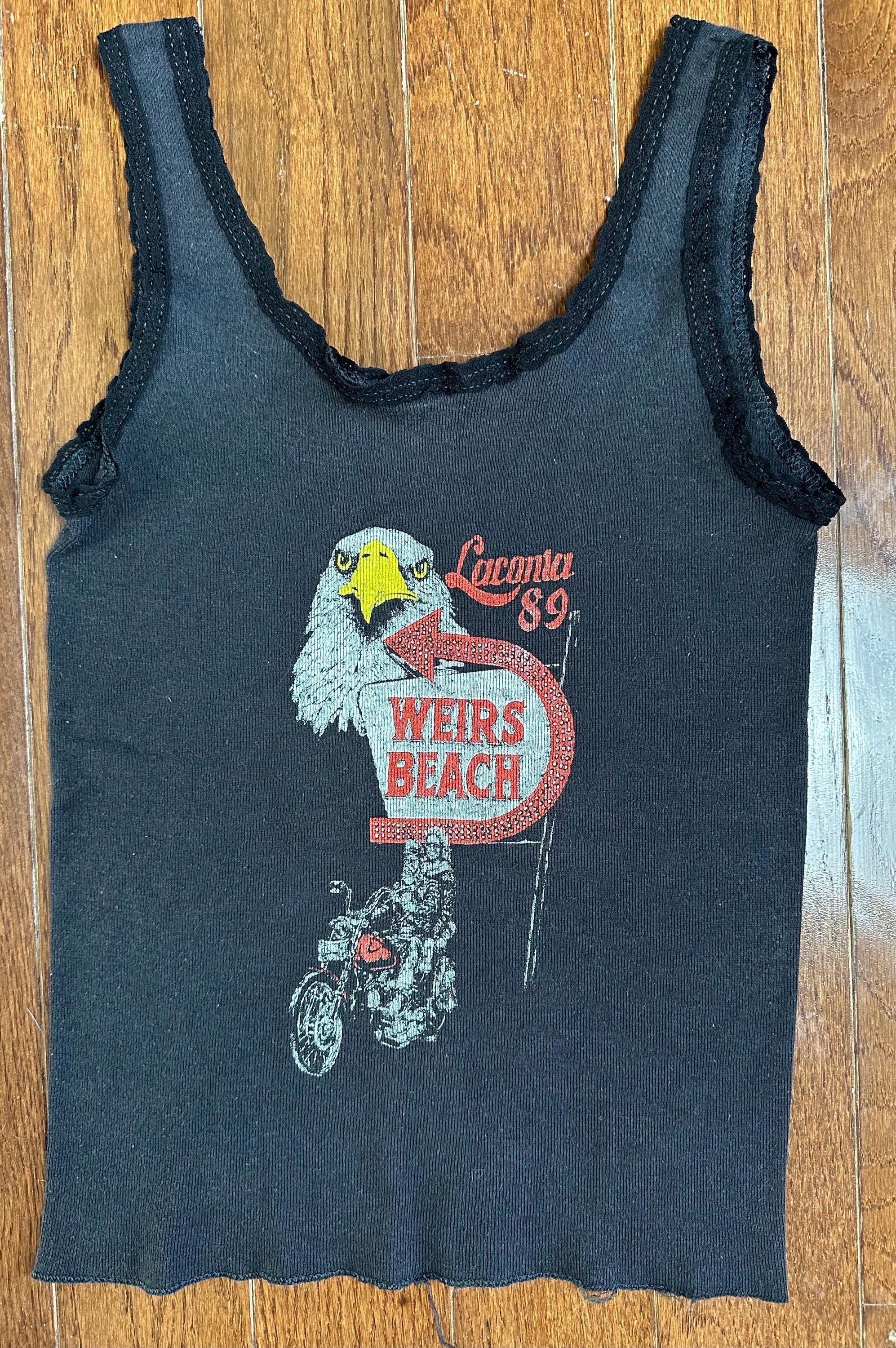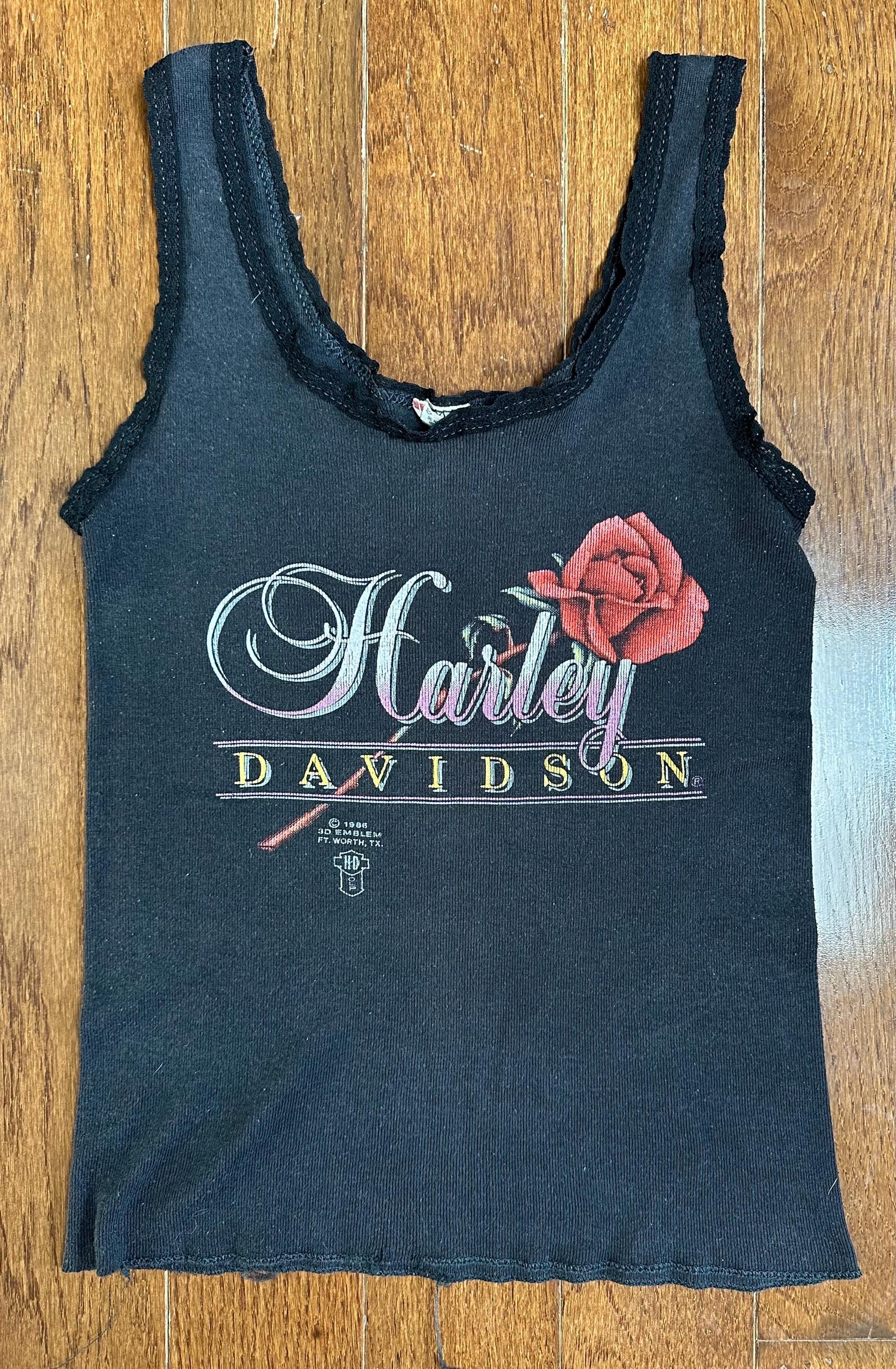 This piece features an original 1986 3D Emblem graphic with a Laconia ‘89 Weirs Beach hit, giving it that layered history that makes vintage Harley so special. The lace trim neckline and straps add a softer, feminine contrast to the classic biker graphic, something you don’t come across often.
