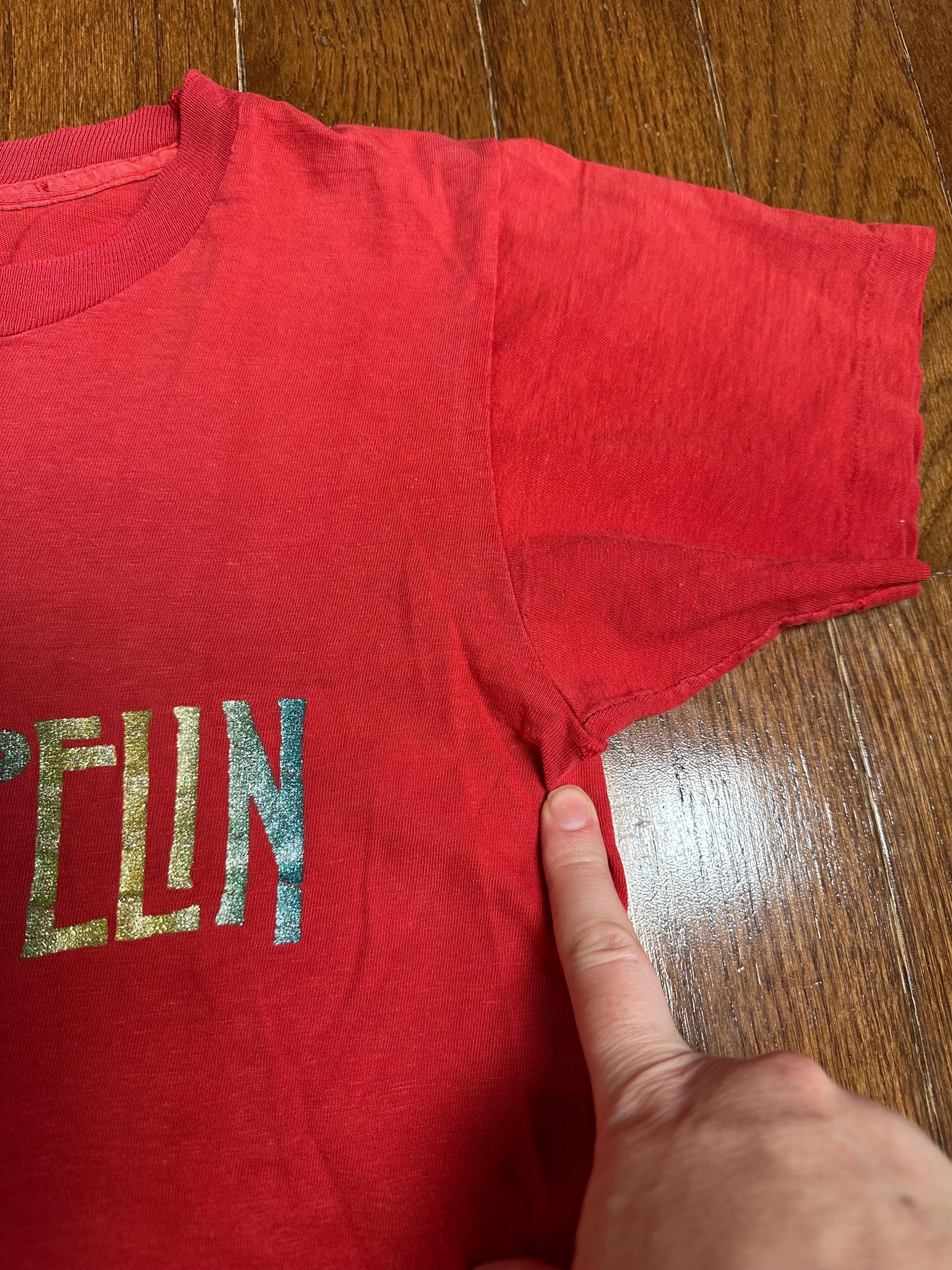 Vintage 1980s Led Zeppelin Single Stitch T-Shirt – Faded Red Rock Tee, USA Made, Distressed