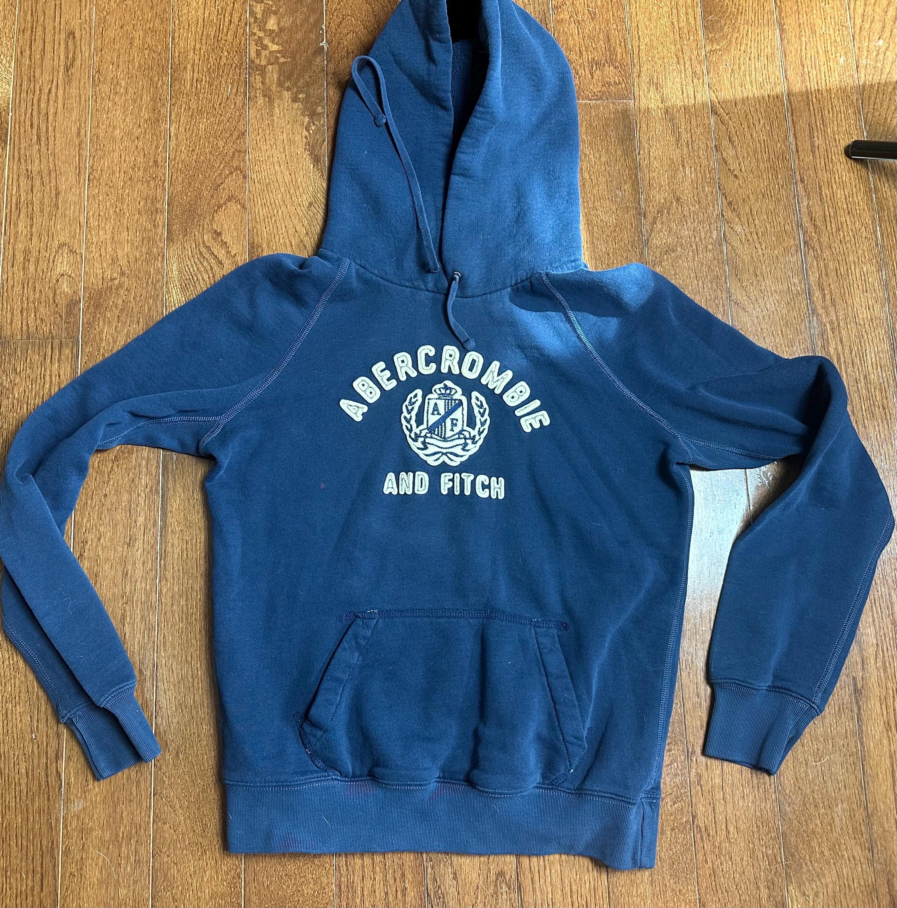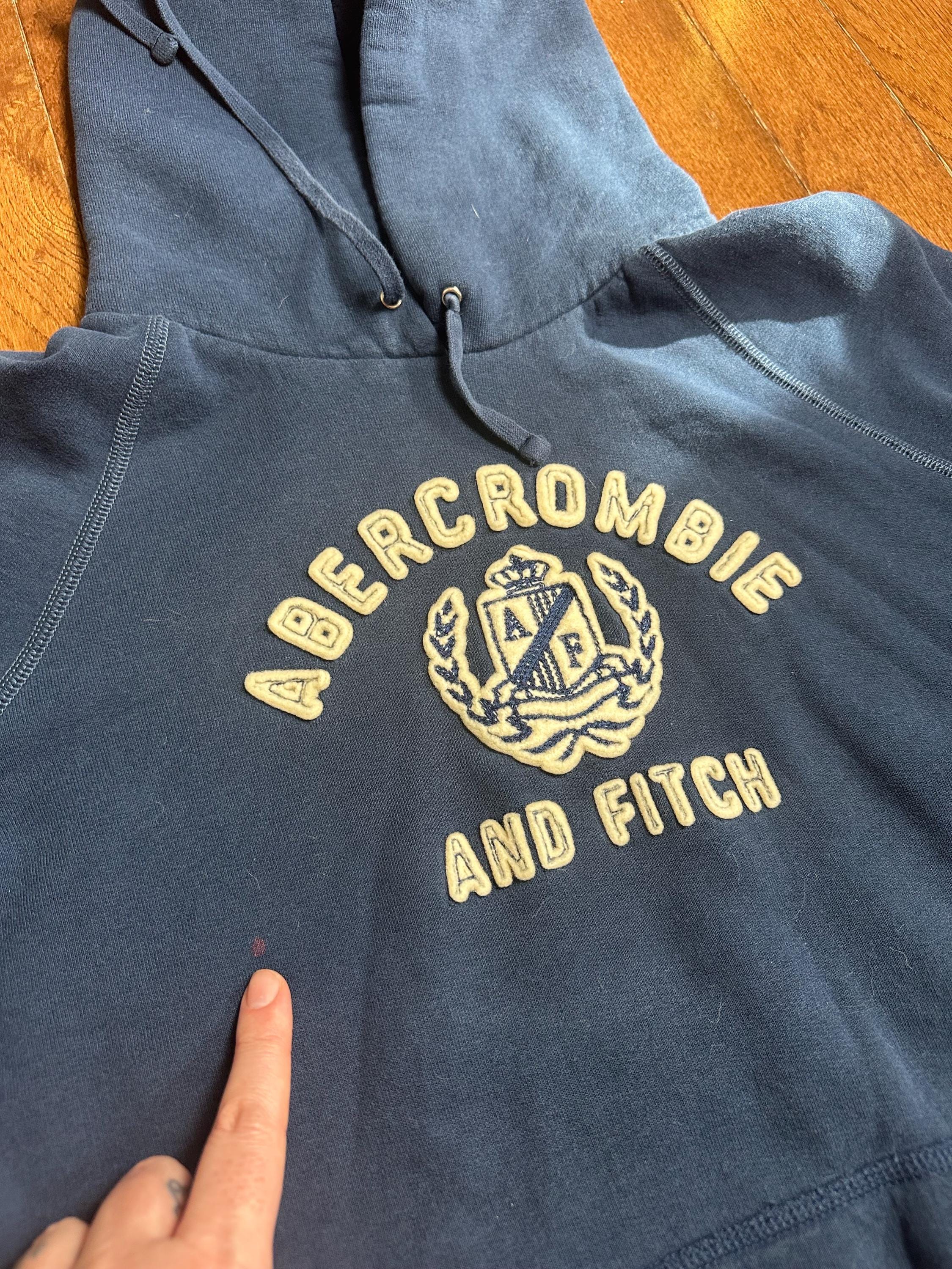 A true early Abercrombie classic. This navy hoodie features the iconic Abercrombie & Fitch crest logo across the front with that soft, worn-in feel that makes vintage hoodies so easy to live in.