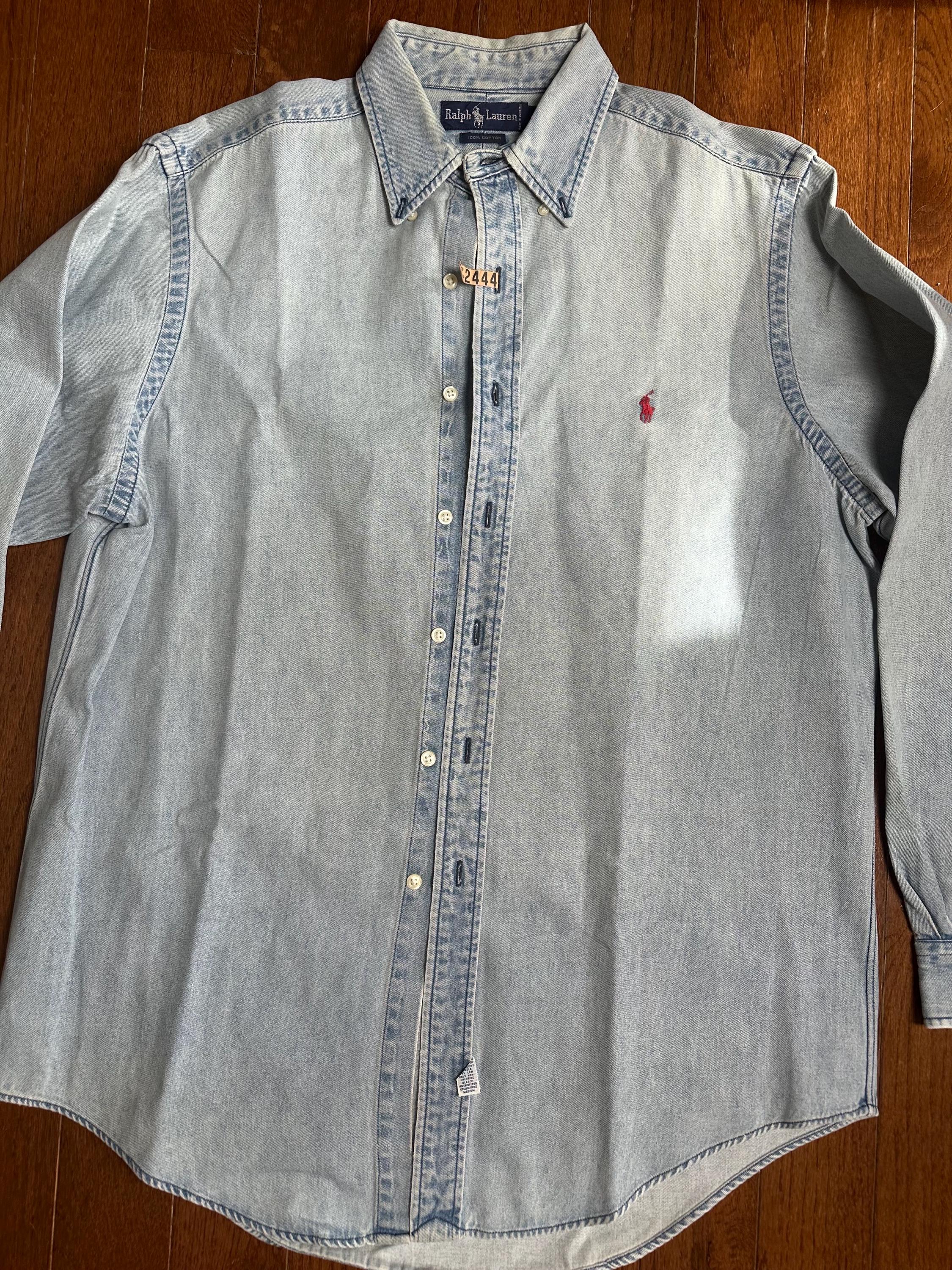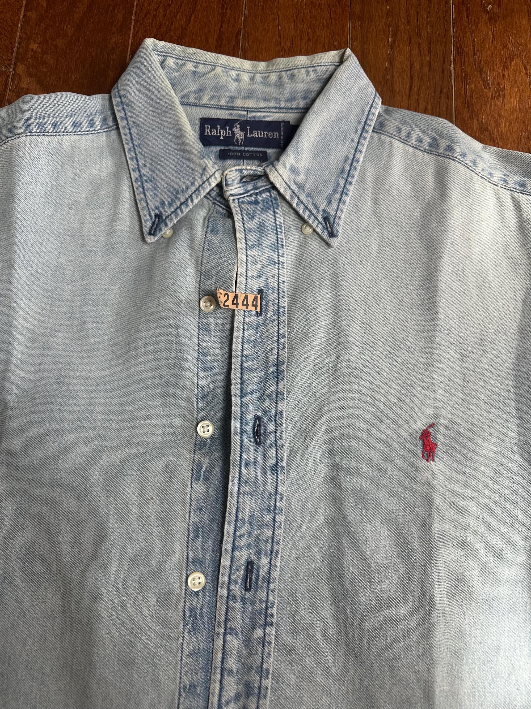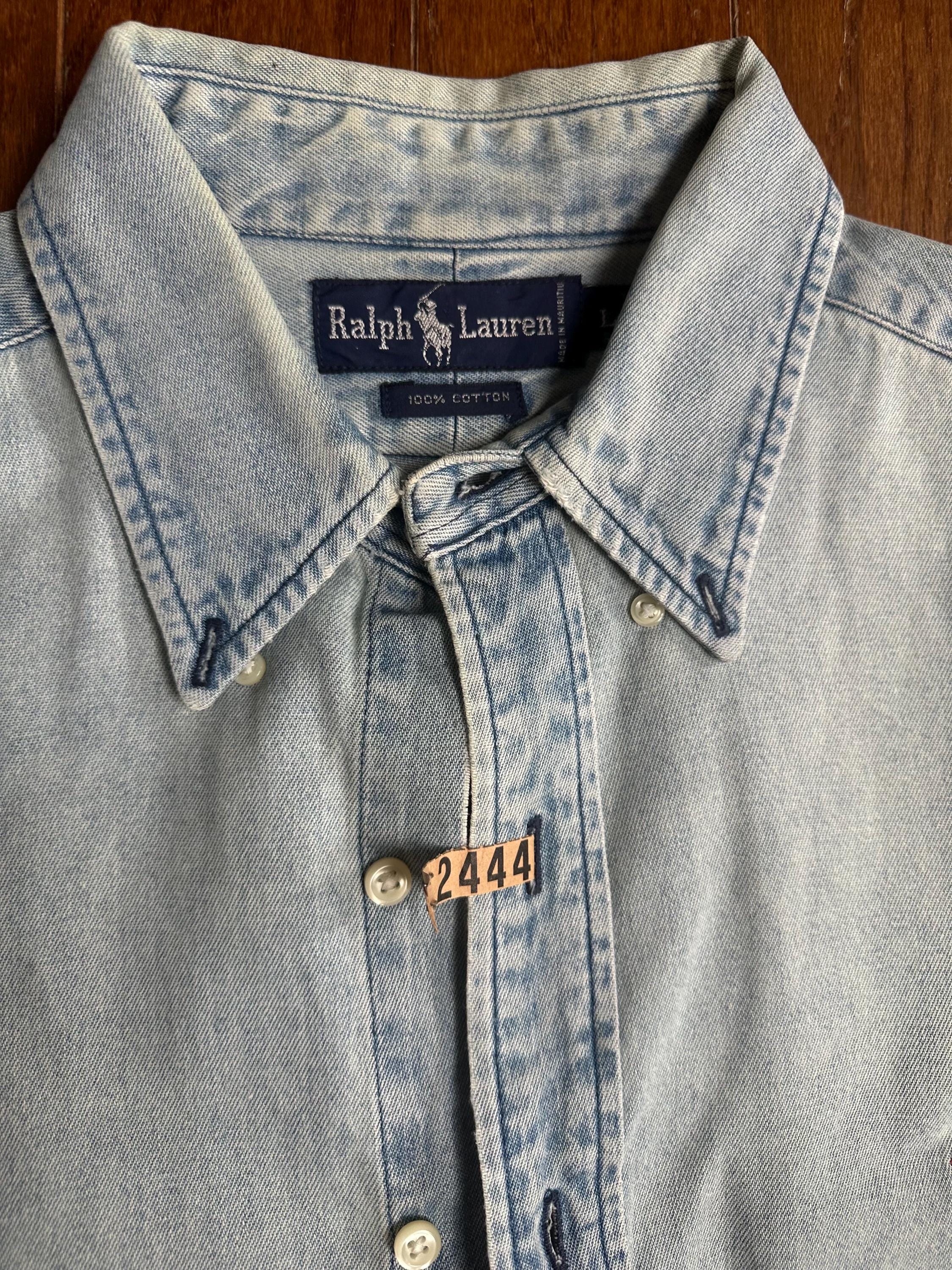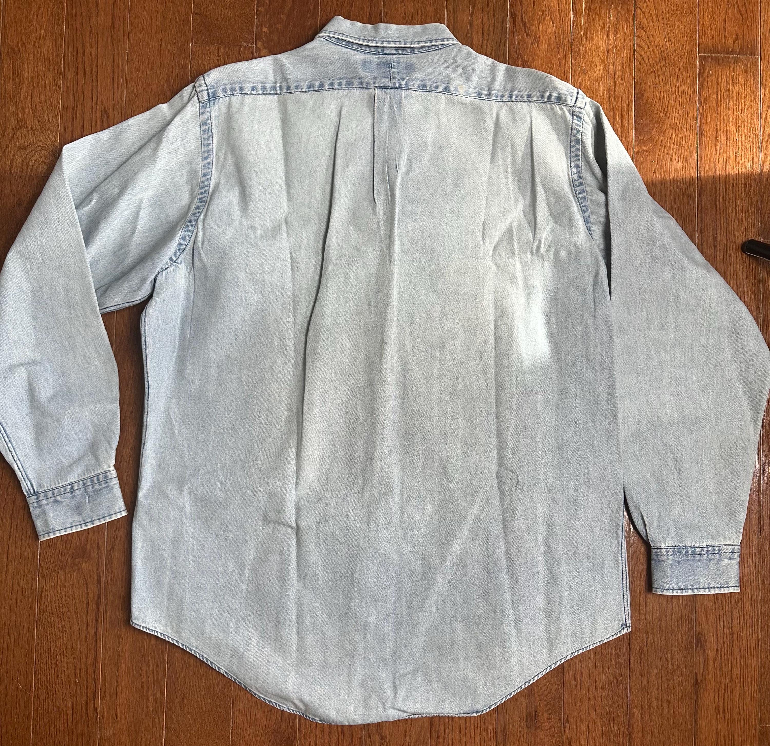 Vintage Ralph Lauren Denim Button Down – 90s Polo Shirt Size Large