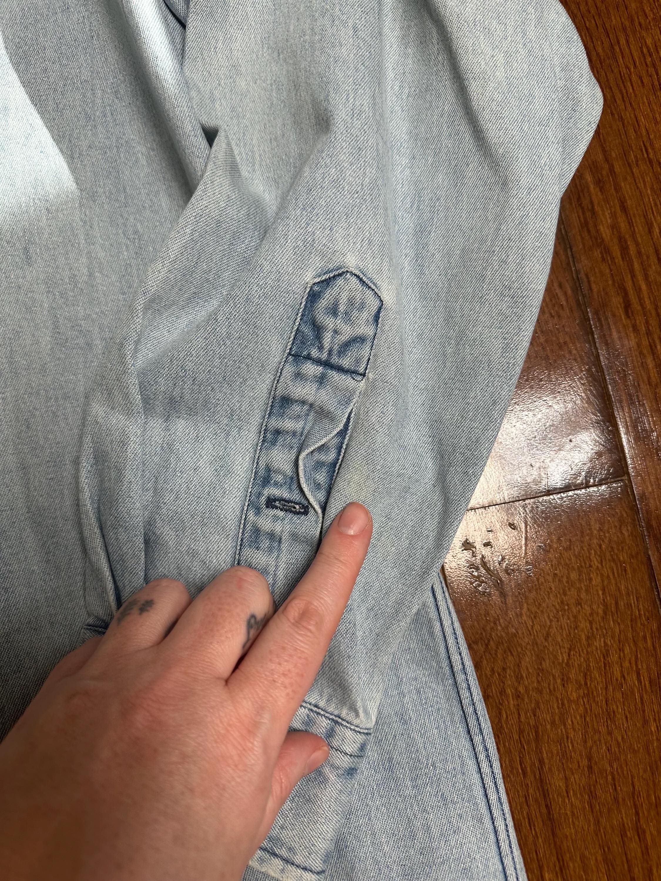 A true 90s classic from Ralph Lauren. This piece has that perfectly broken-in light wash denim look that only gets better with time. Crisp structure from a recent starch and clean, but still carries that authentic vintage character.