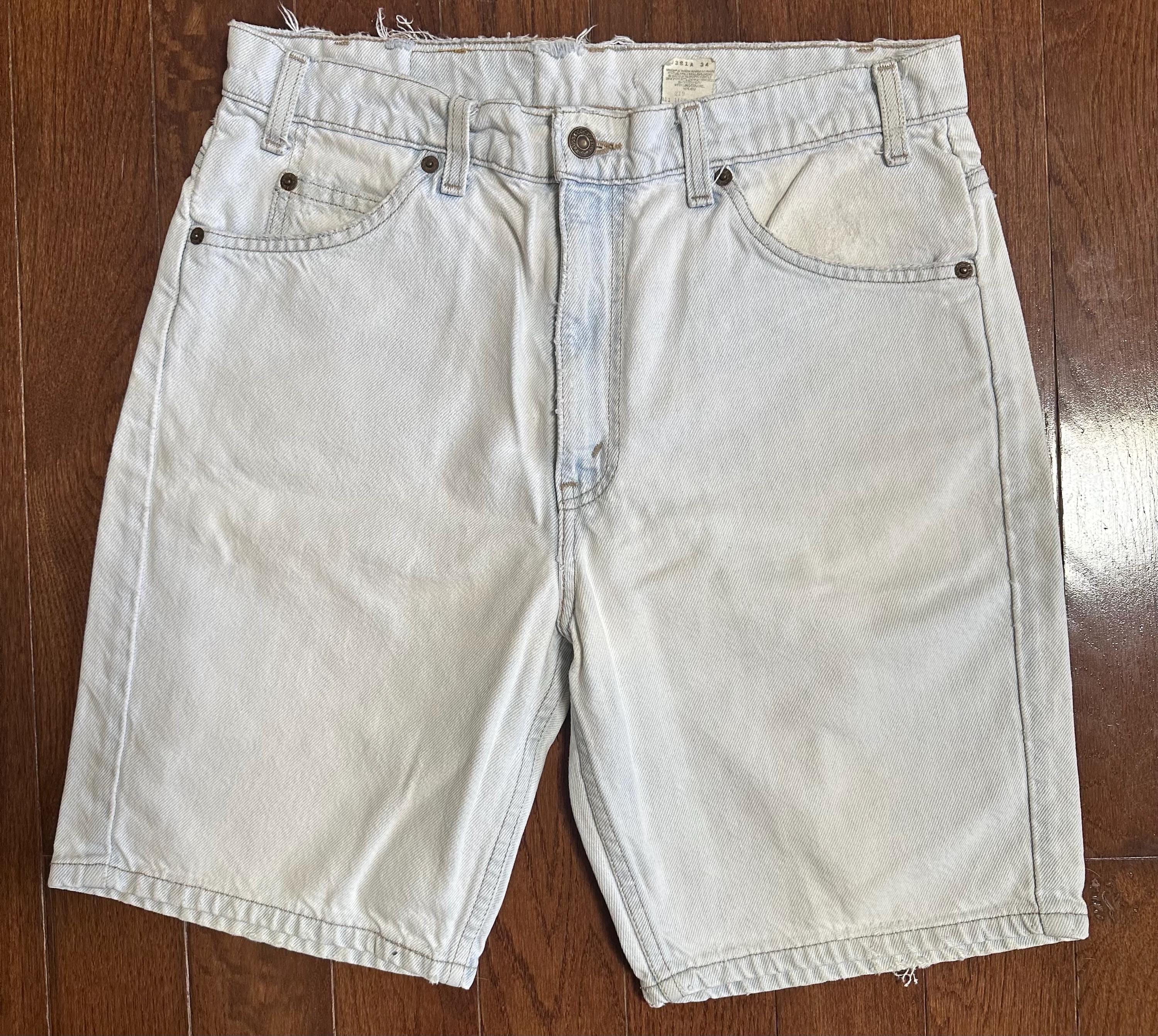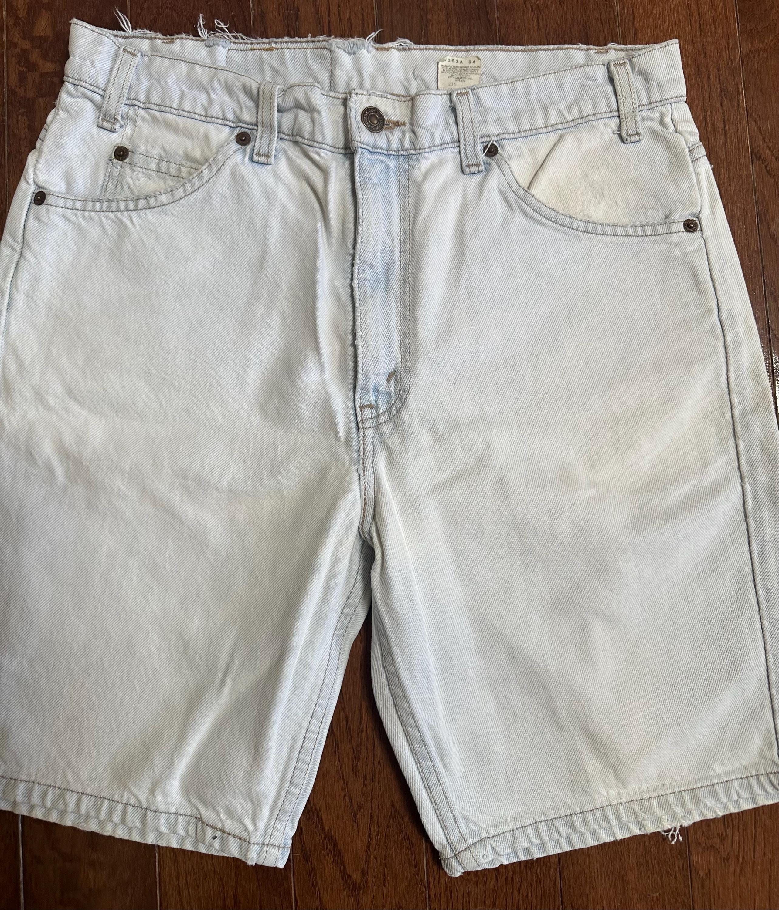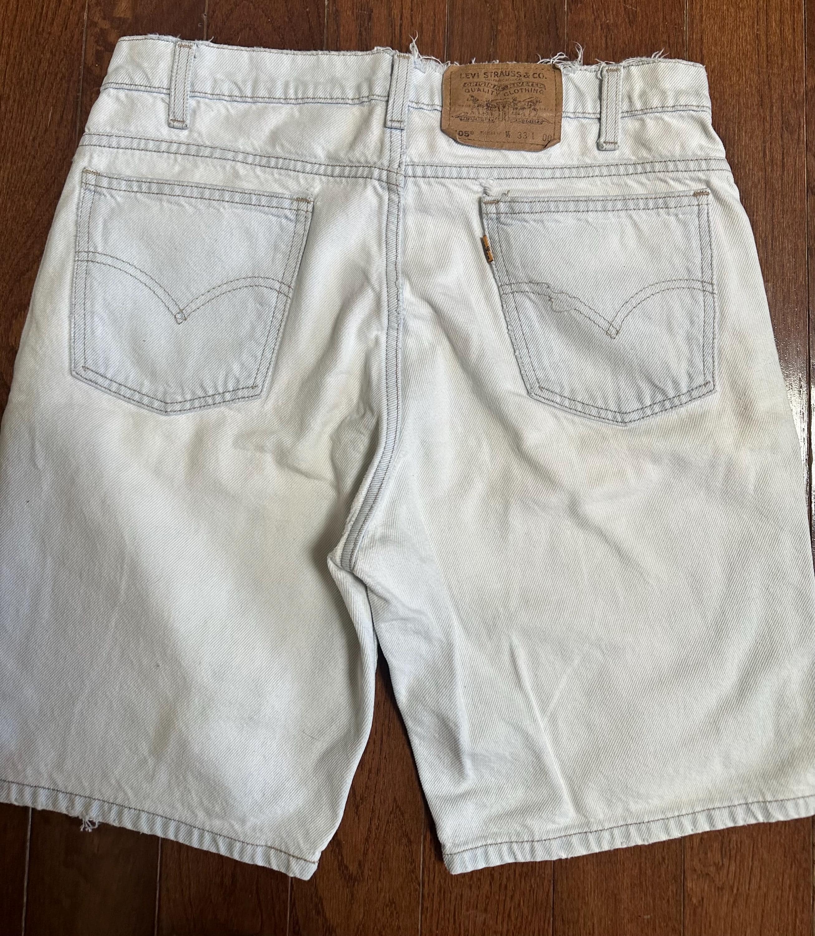 Vintage Levi’s 505 Light Wash Denim Shorts Thrashed Orange Tab W33