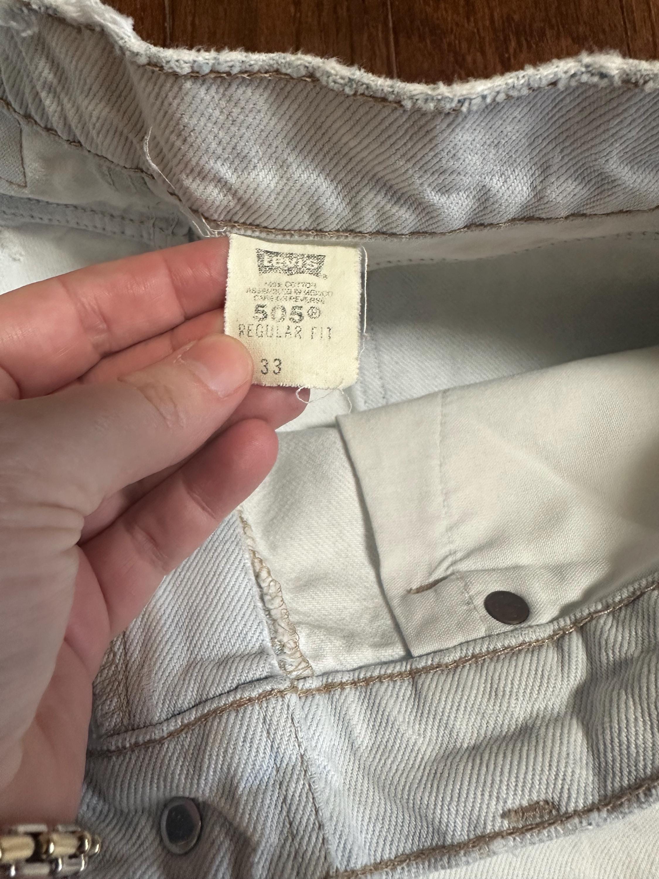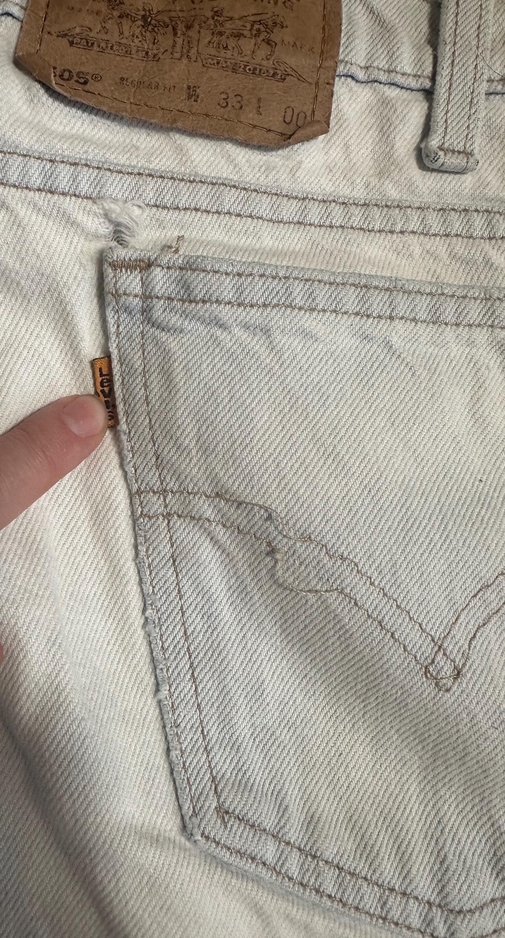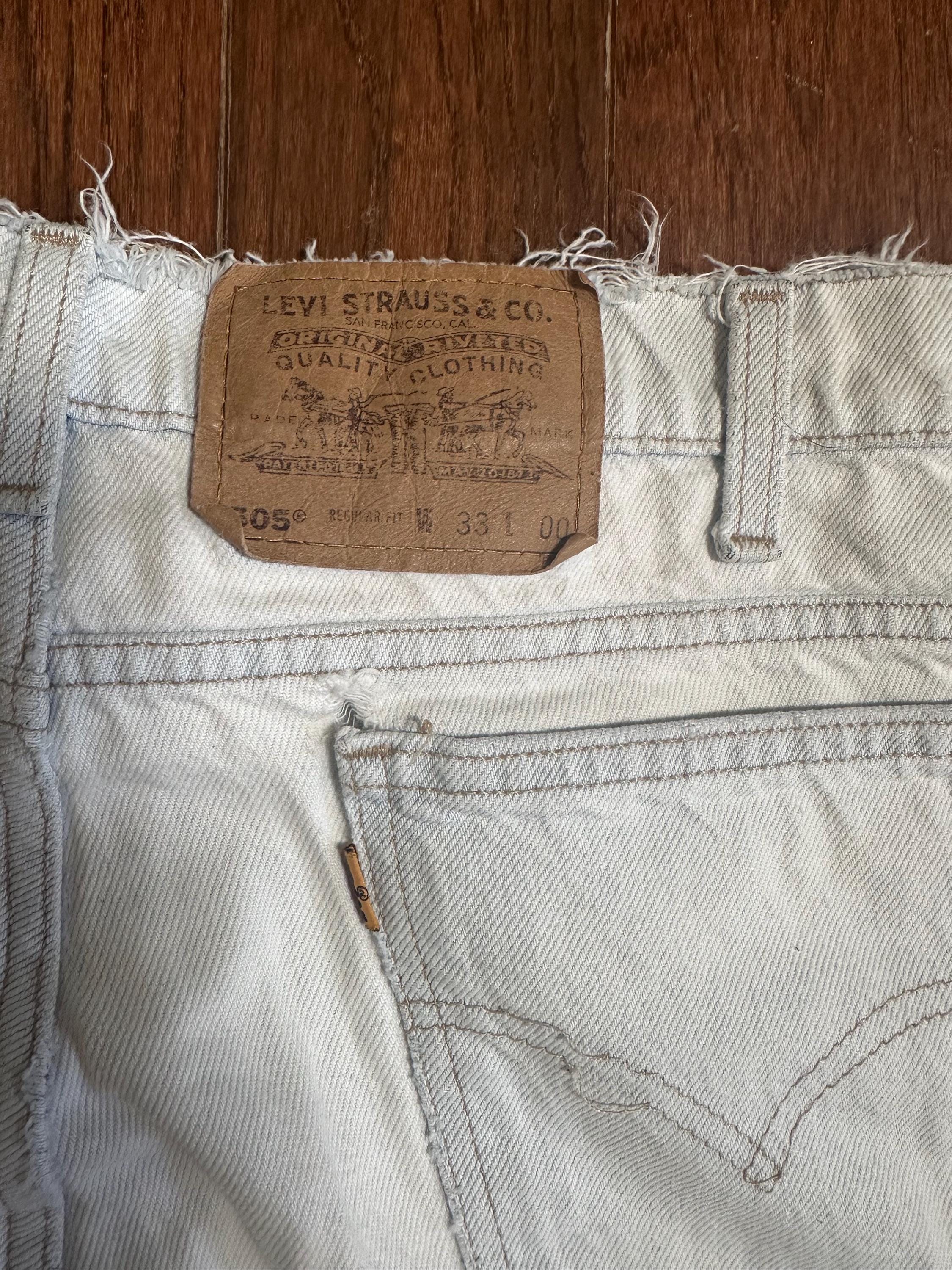 Vintage Levi’s 505 Light Wash Denim Shorts Thrashed Orange Tab W33