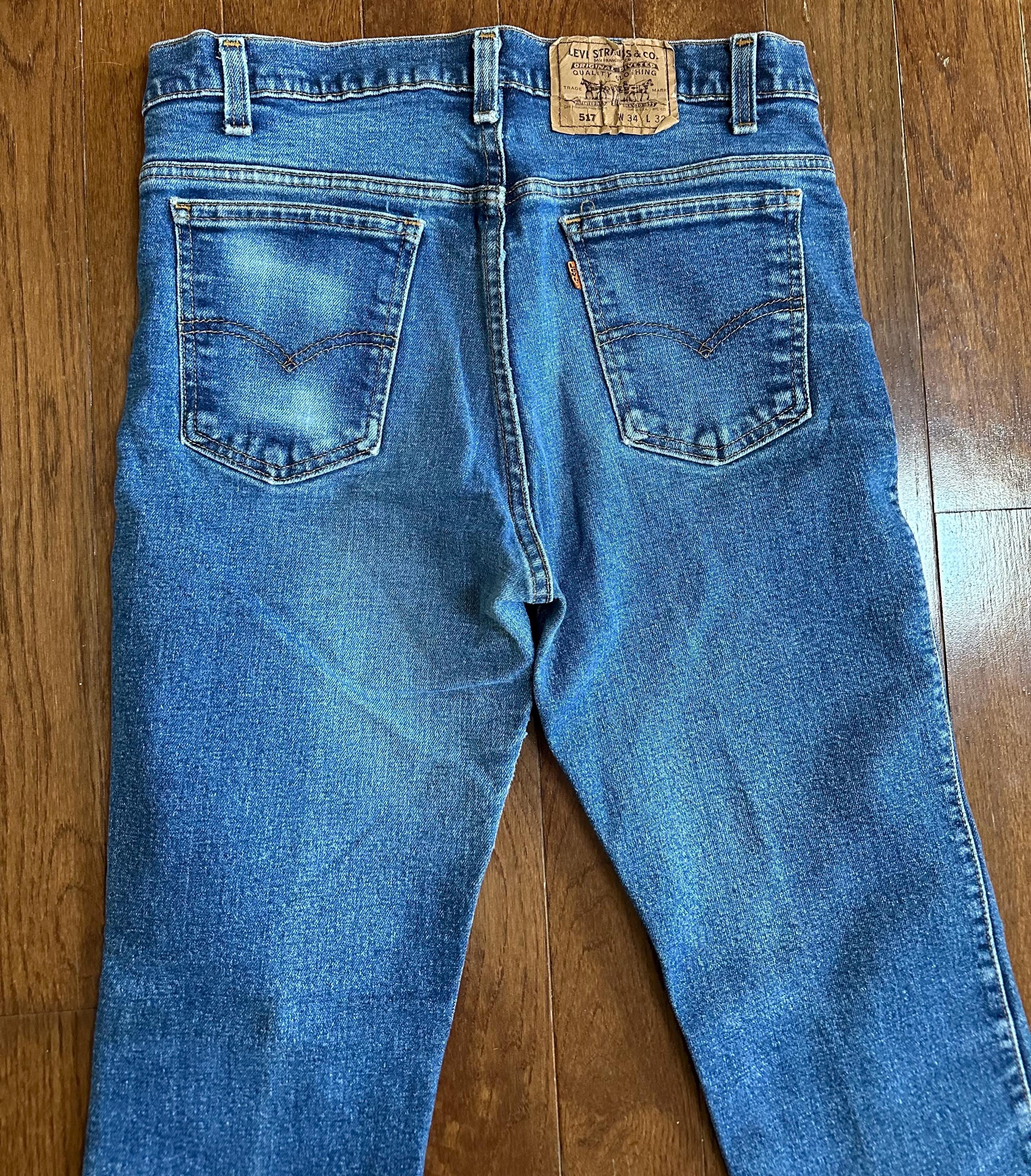 There’s a clear wallet imprint on the back pocket, worn in over years of use. It’s subtle, but once you see it, you can’t unsee it. A small imprint like that is the kind of thing collectors and denim people look for. It’s proof of real wear, not manufactured distress.