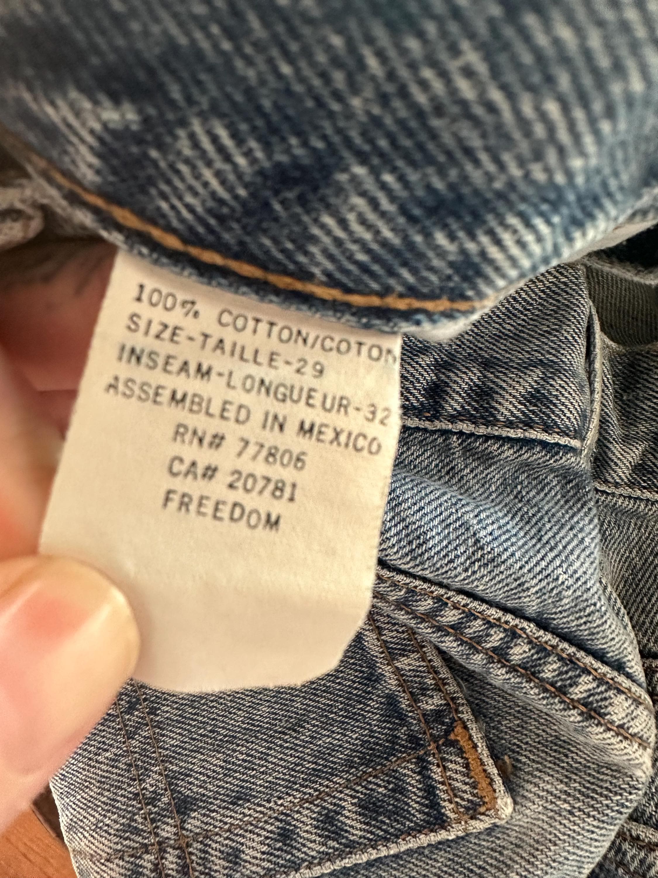 Condition-wise, these show natural wear throughout. There’s light distressing near the leg (as shown), soft fading, and overall signs of use that give them that lived-in feel. No major flaws, just honest vintage wear.