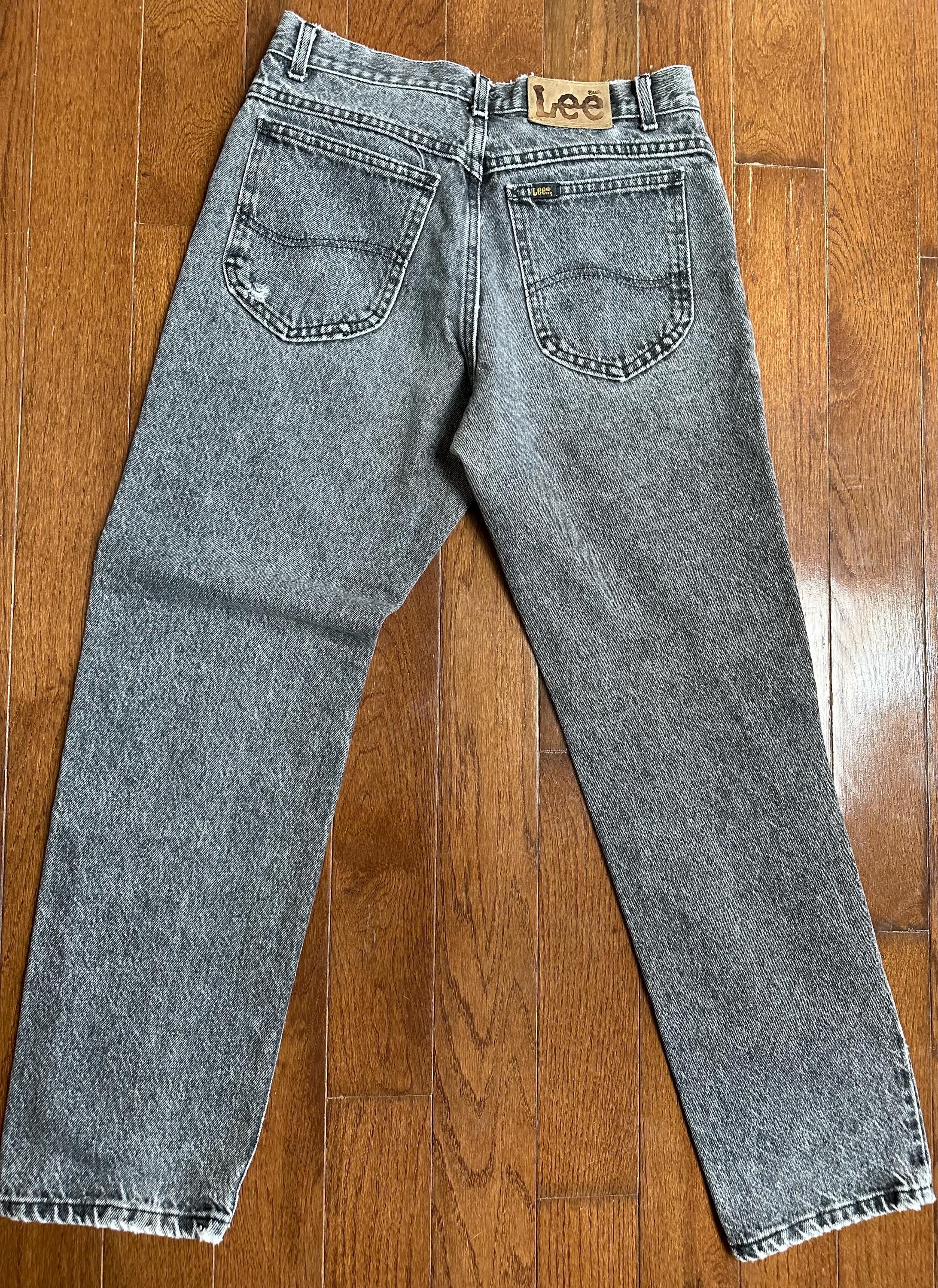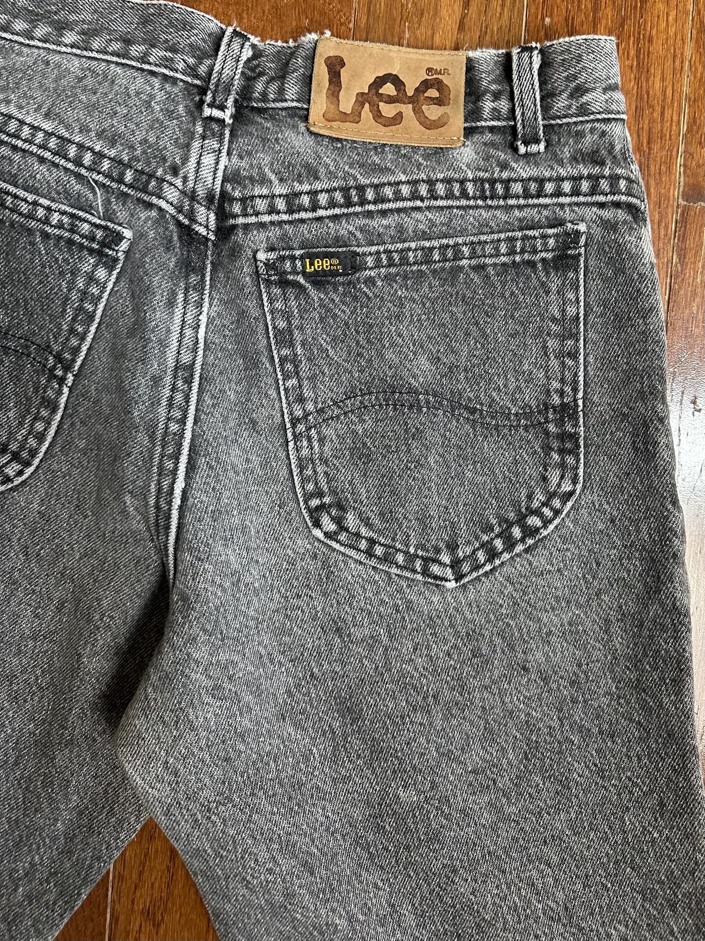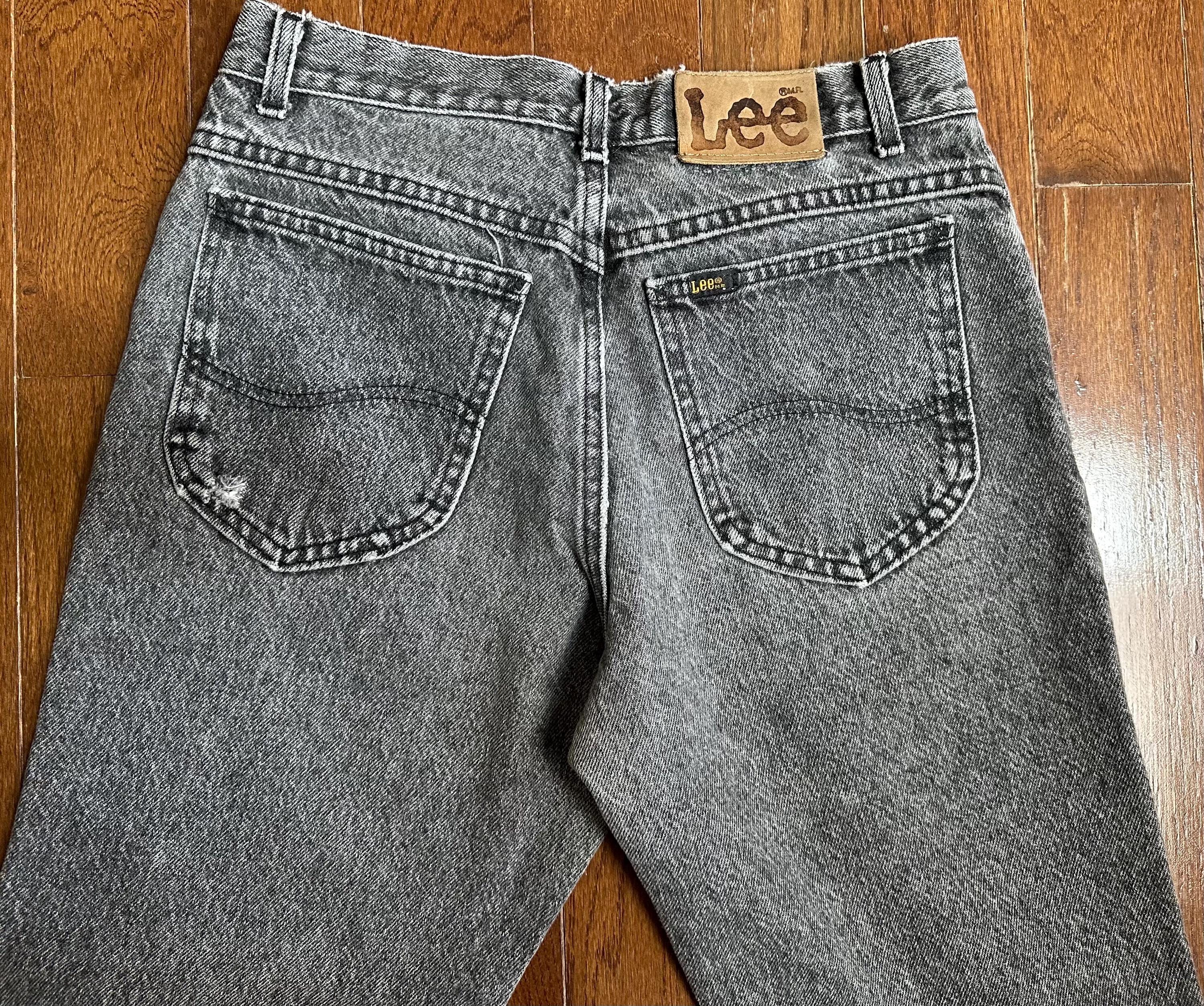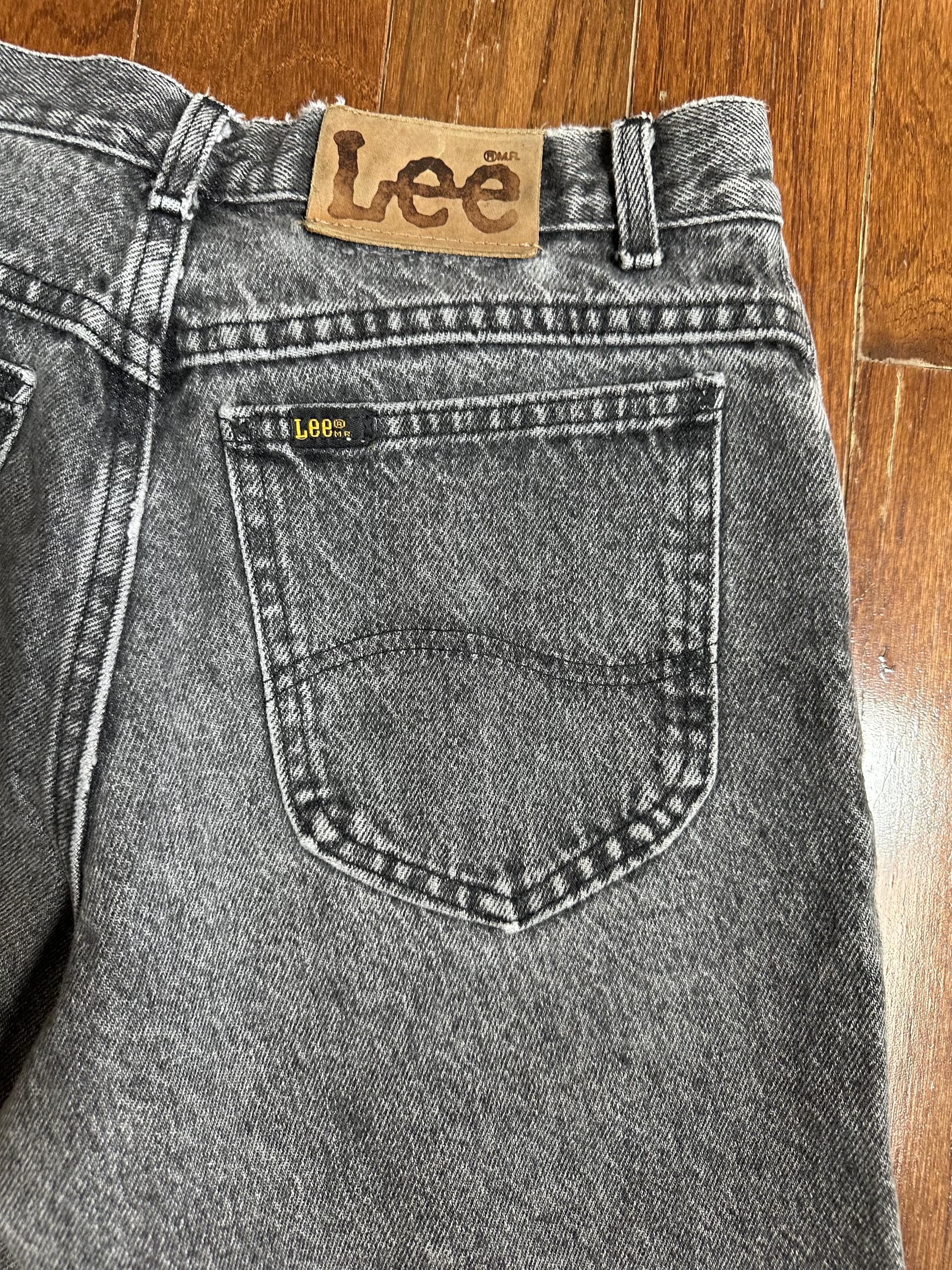 Vintage Lee Black Jeans 31x30 Made in USA Faded Grey Wash Straight Leg Denim