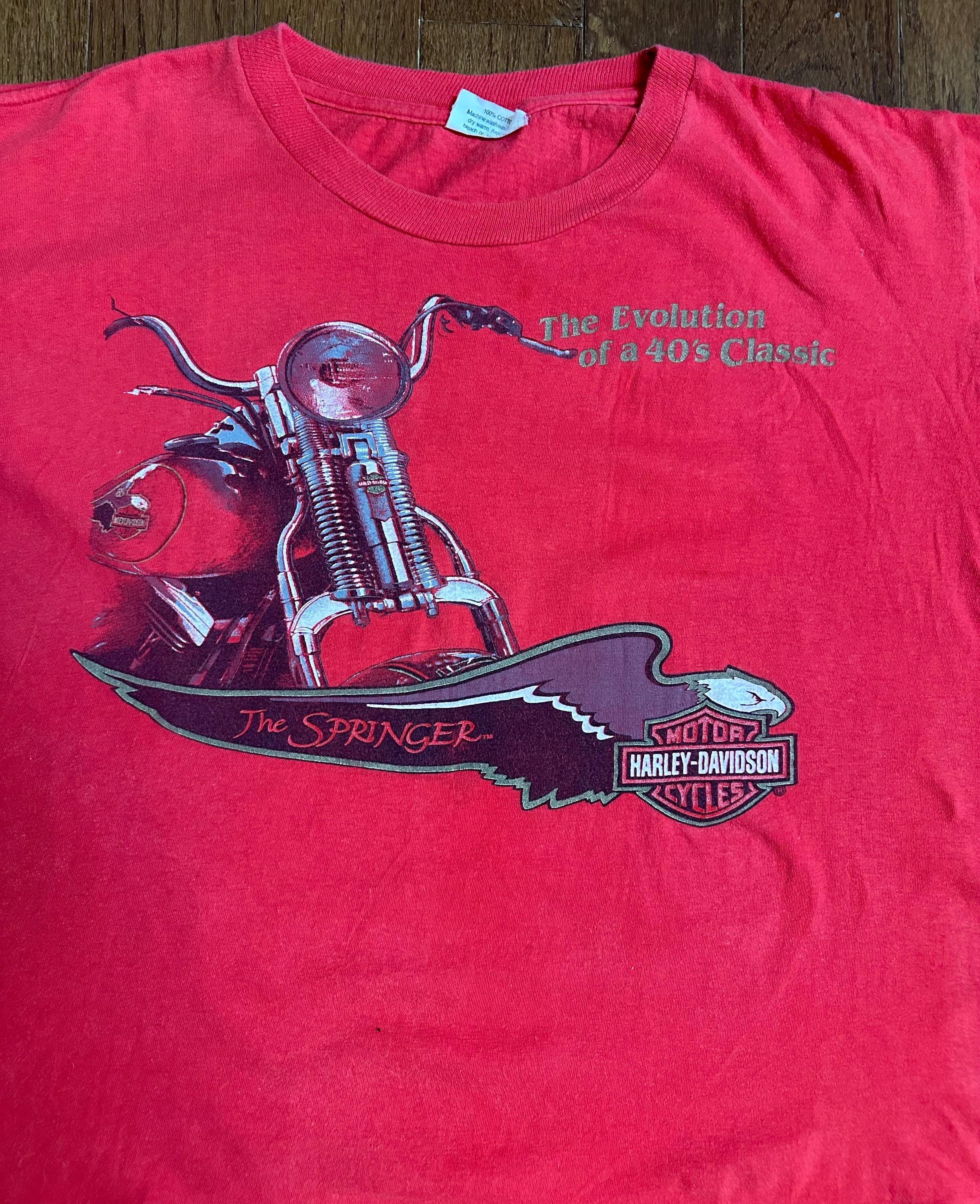 1980s Harley-Davidson Springer Crop Tee – K-Brand, Single Stitch, Back Graphic
