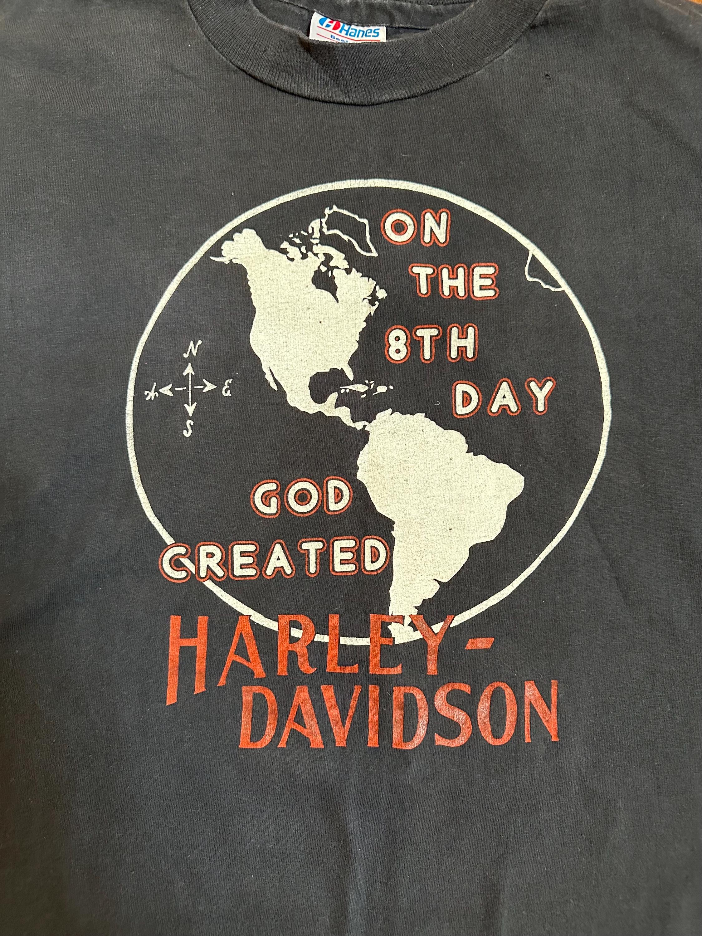 1980s “On the 8th Day God Created Harley-Davidson” Tee – Flatirons Back, Hanes Beefy, Single Stitch