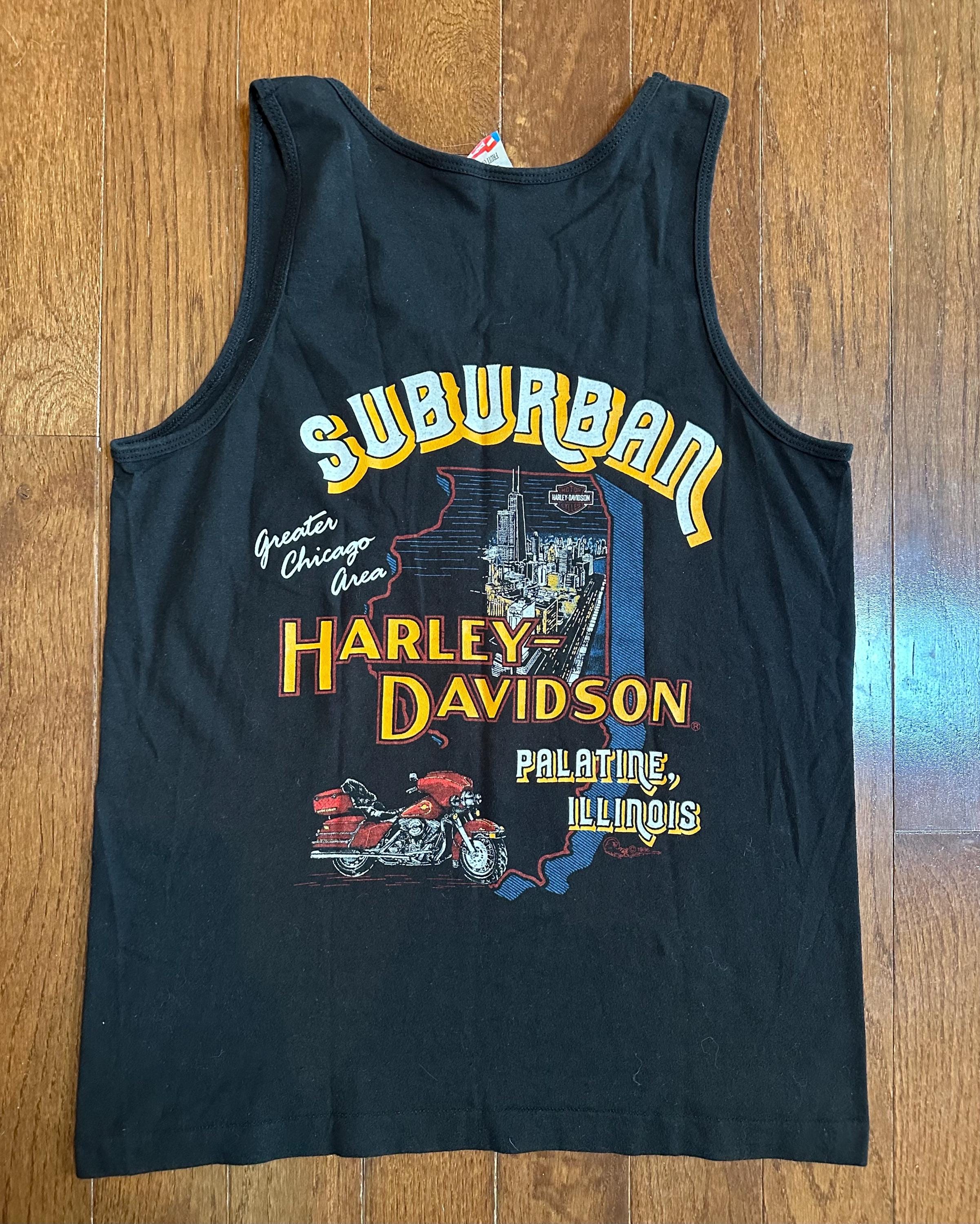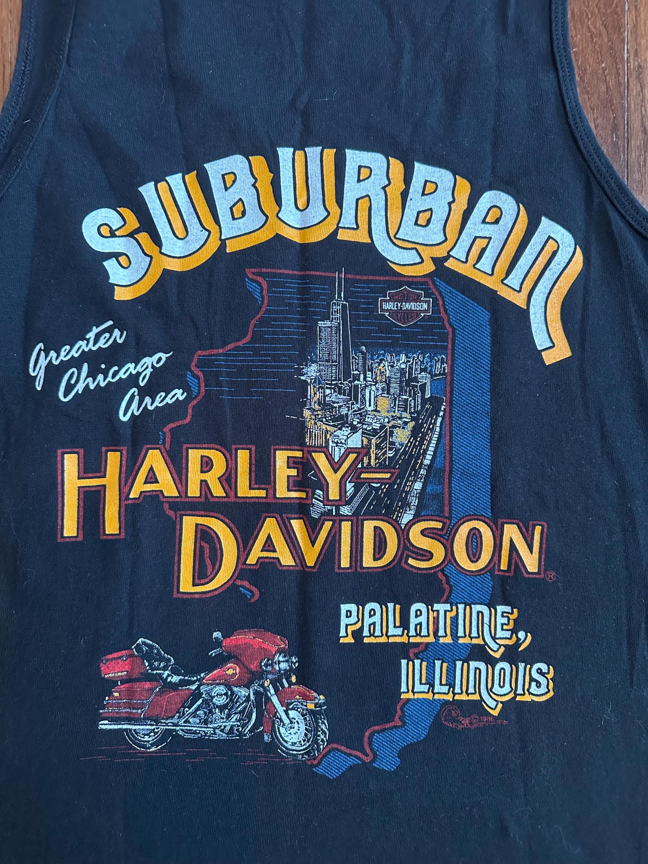 Back hit reppin’ Suburban Harley-Davidson, Palatine, Illinois — a classic greater Chicago shop with deep Harley roots.